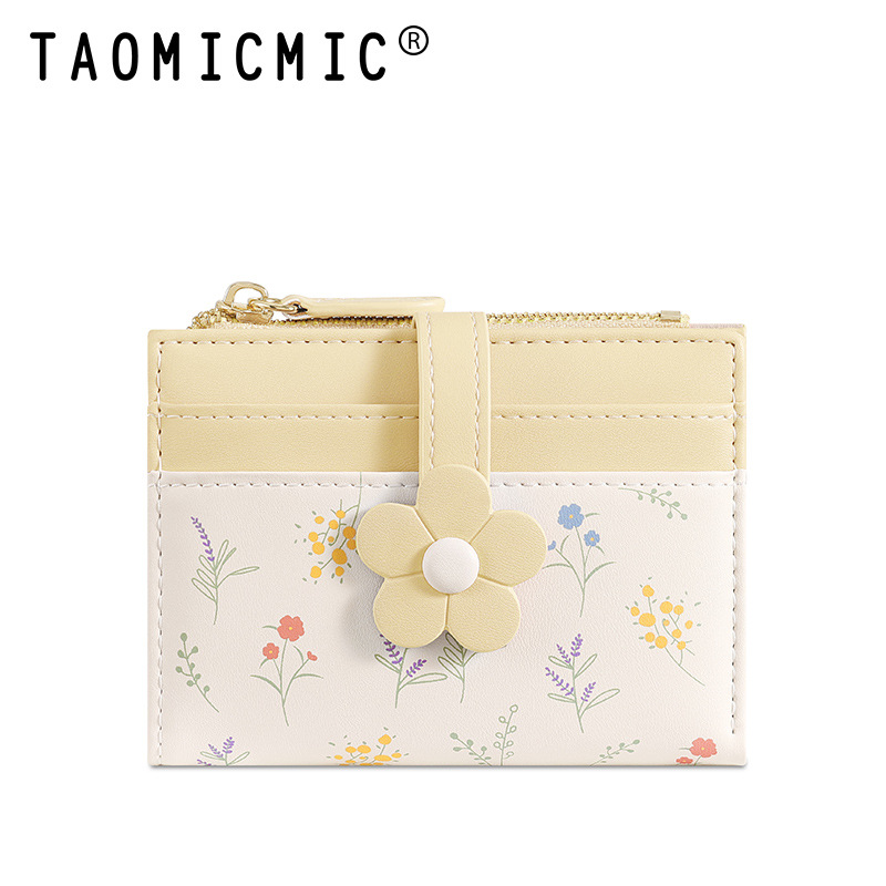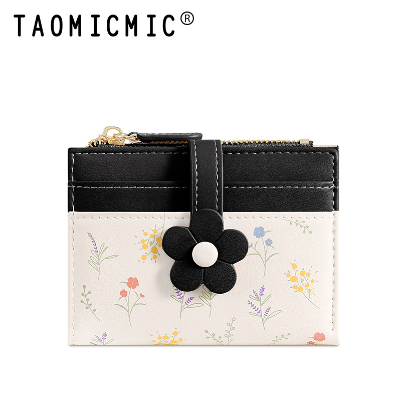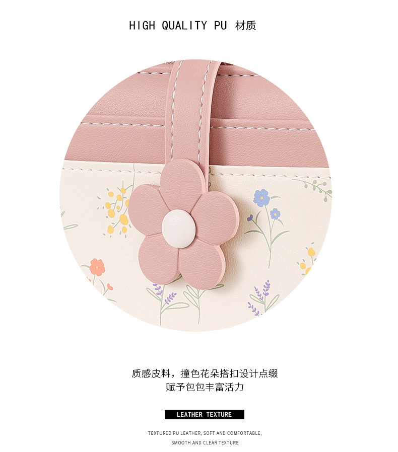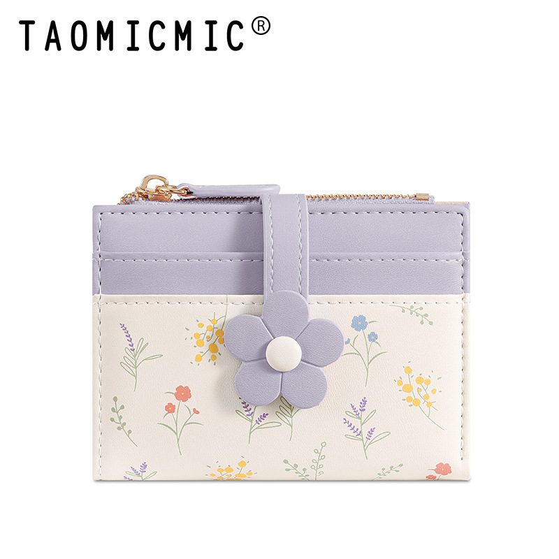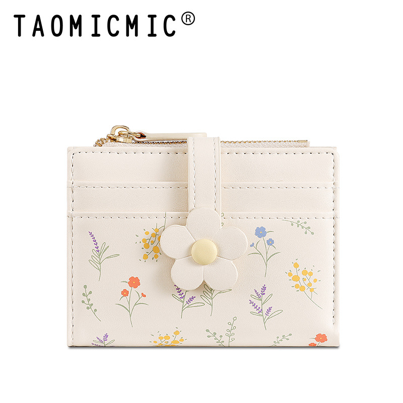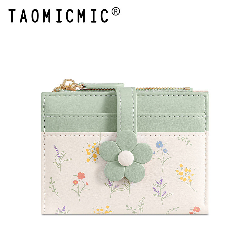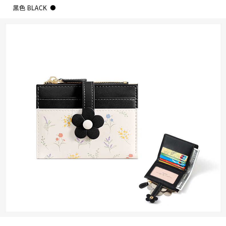 한국 스타일 작은 향기 스타일 ins 짧은 여성 지갑 학생 귀여운 꽃과 식물 PU 가죽 동전 카드 홀더 지갑 지갑