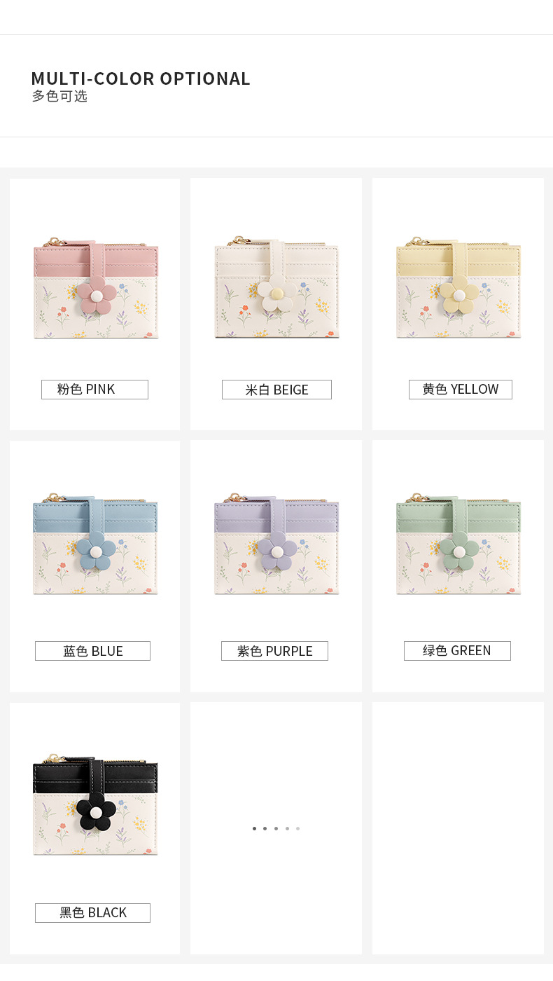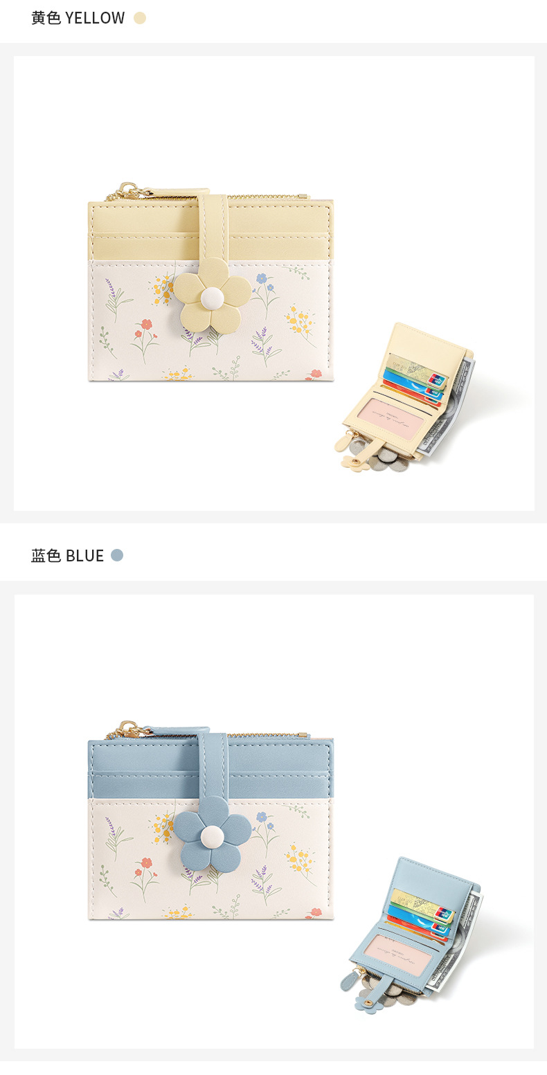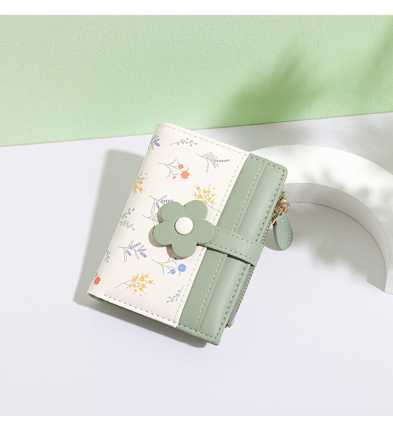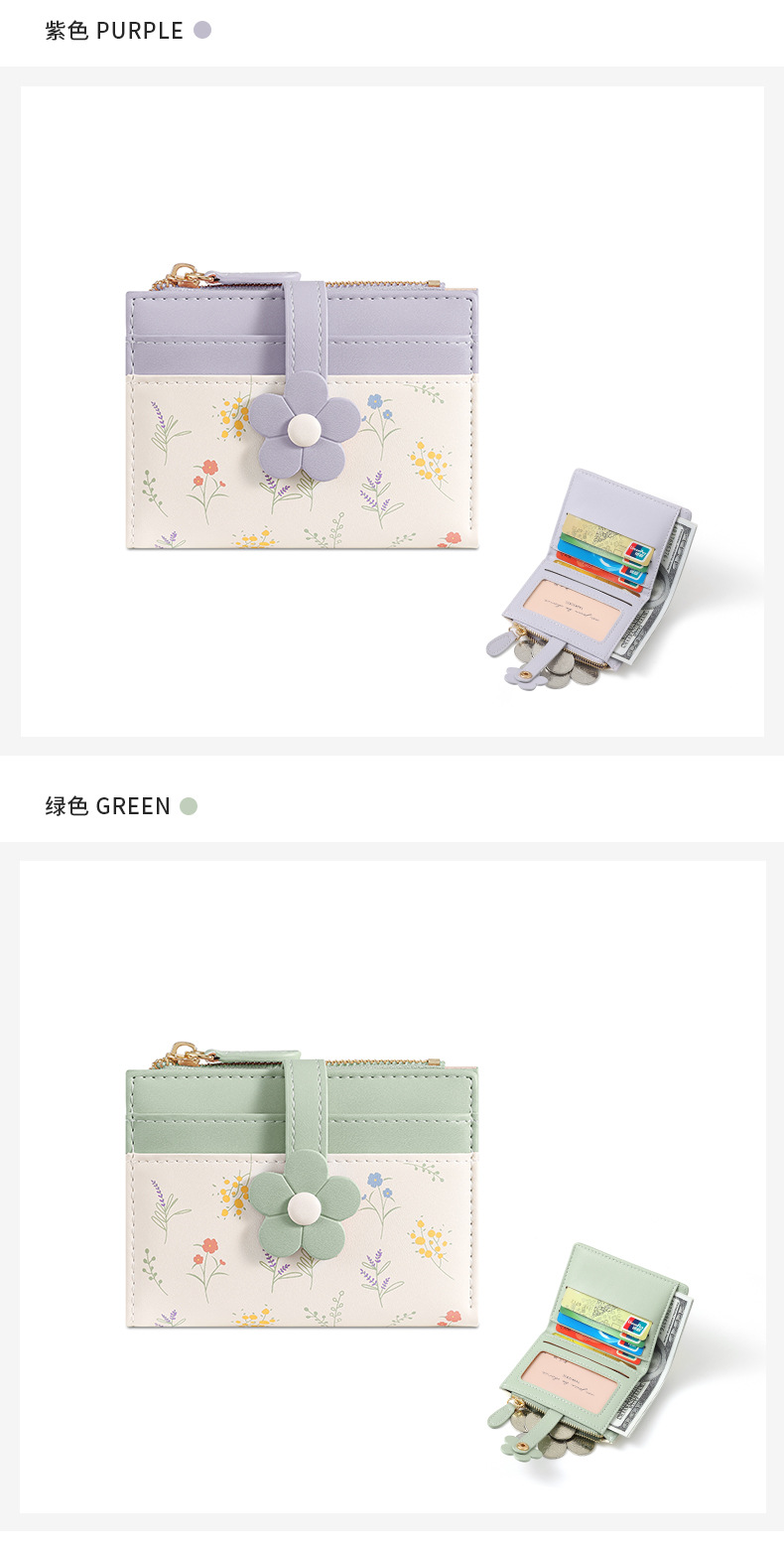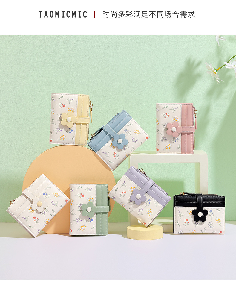 한국 스타일 작은 향기 스타일 ins 짧은 여성 지갑 학생 귀여운 꽃과 식물 PU 가죽 동전 카드 홀더 지갑 지갑스토어 가기