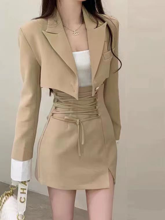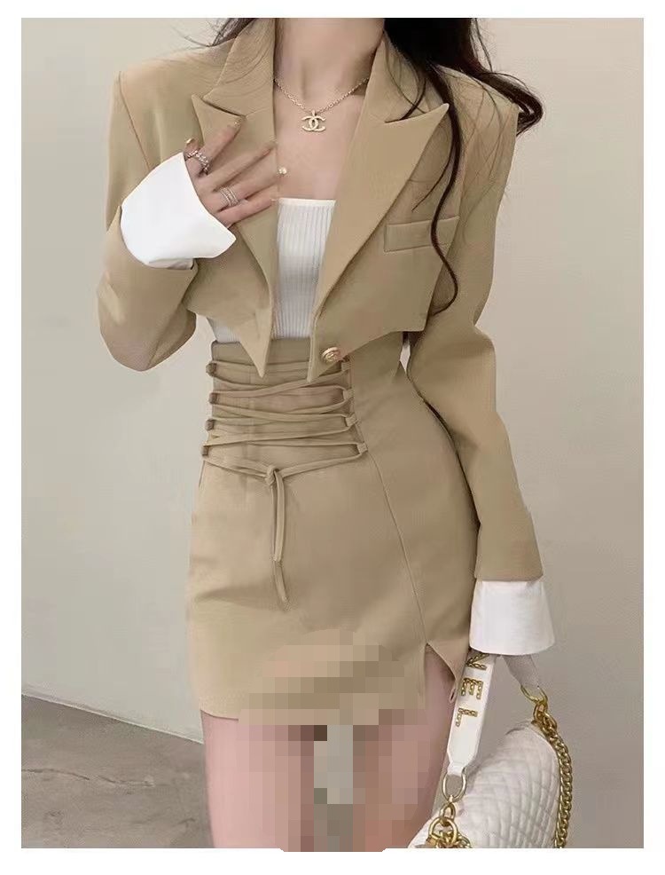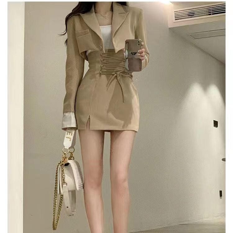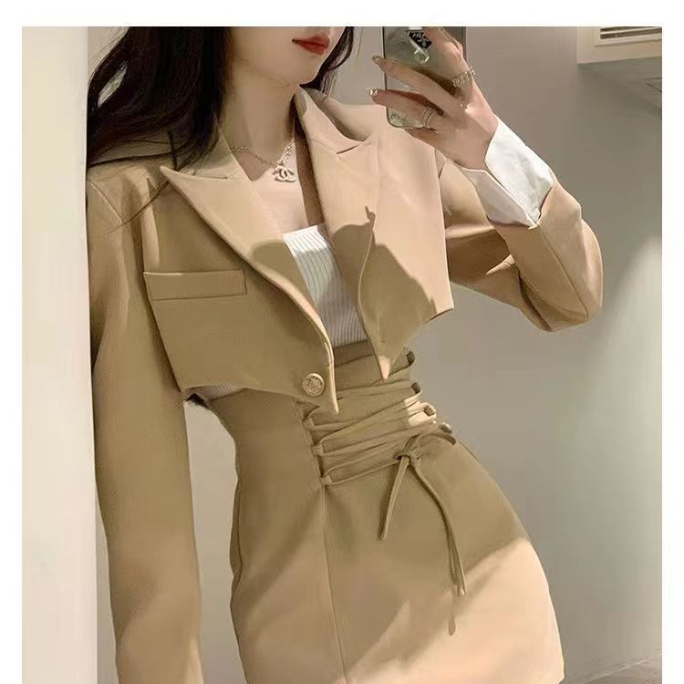 새로운 디자인 짧은 정장 재킷 여성 초가을 허리 핫 소녀 2025 정장 틈새 투피스 짧은 치마 유행스토어 가기
