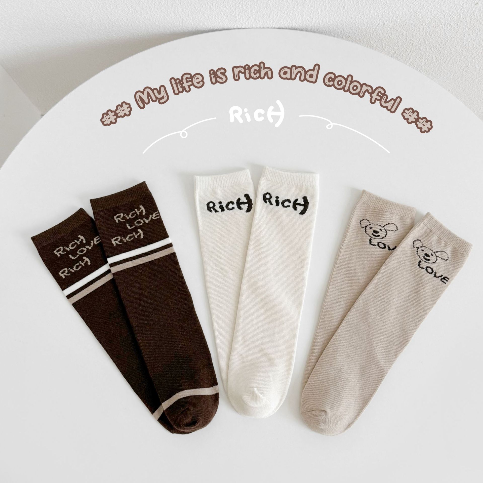 包装:3双一包,三色各一双,不支持选色,每双带有袜卡可挂。