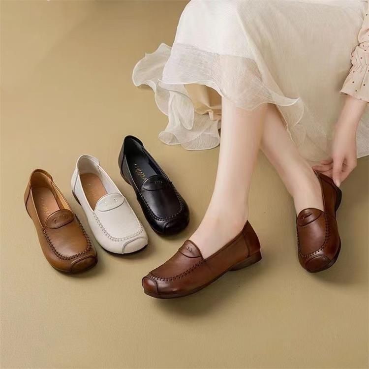 부드러운 가죽과 부드러운 밑창의 신발, 노인 어머니를 위한 새로운 스타일의 신발, 복고풍, 가볍고 편안하며 미끄럼 방지, 힘줄 밑창, 여성용 봄, 가을 신발