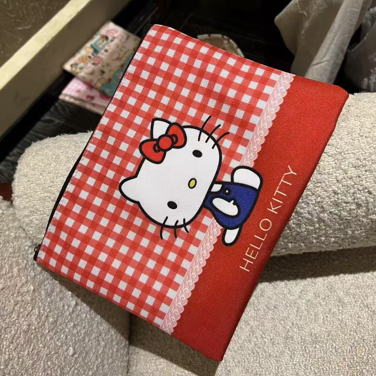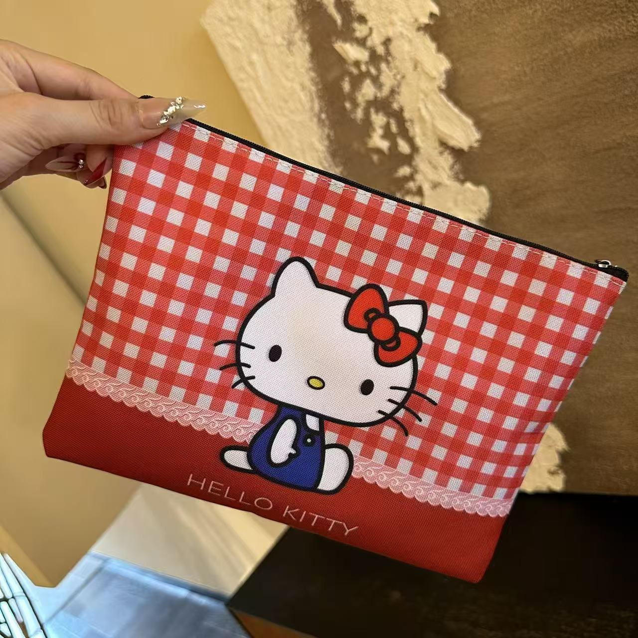 • 红色格子kt化妆包