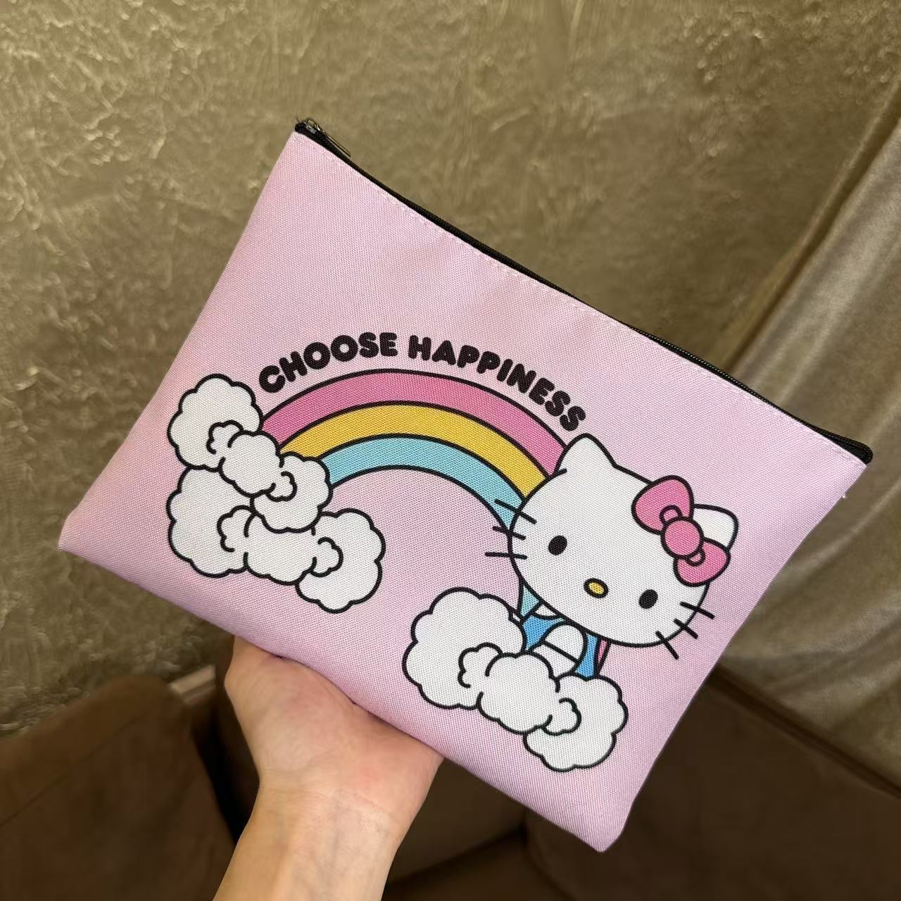 • 핑크 레인보우 헬로키티 클러치 [지퍼 스타일]