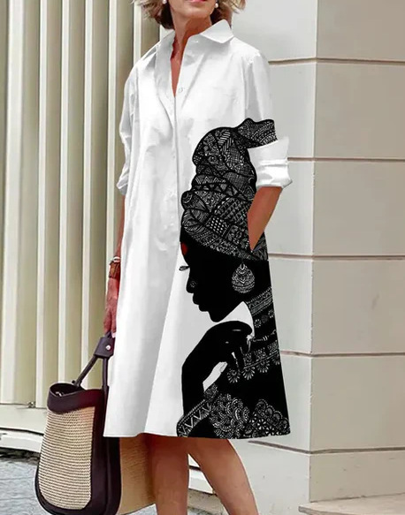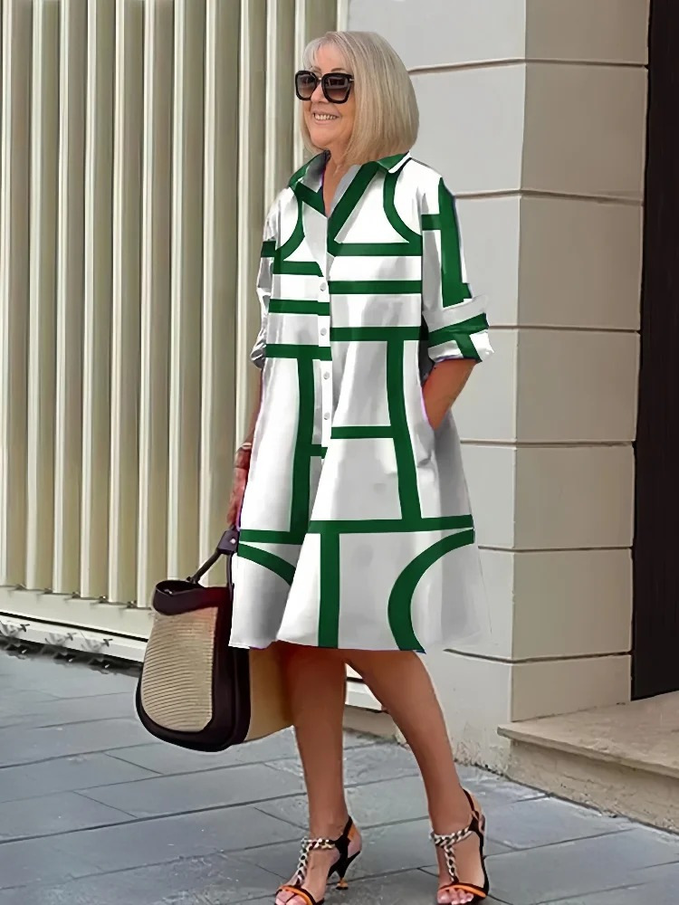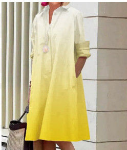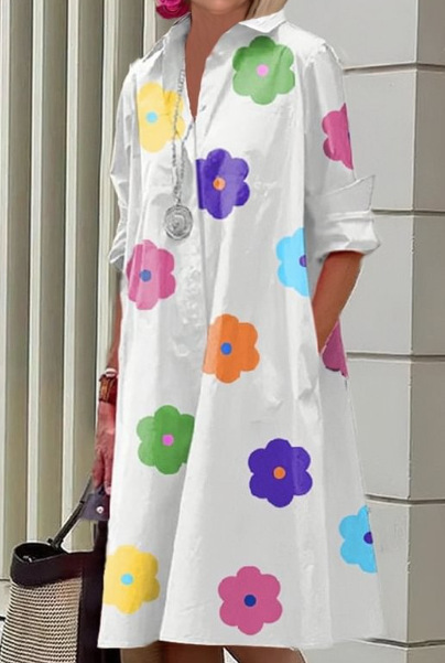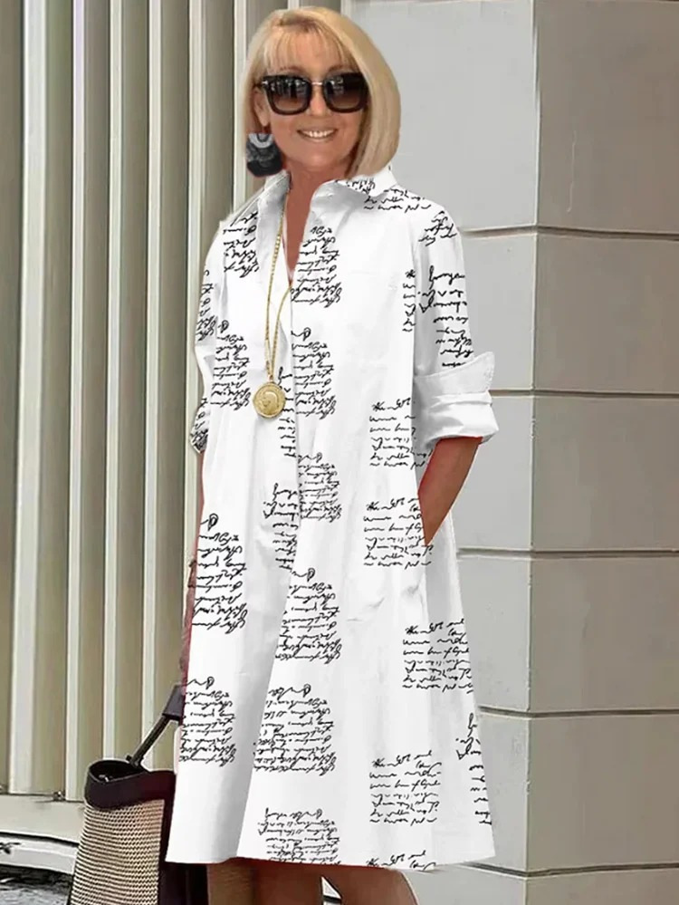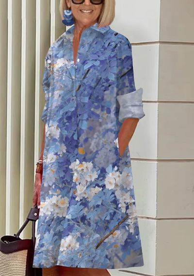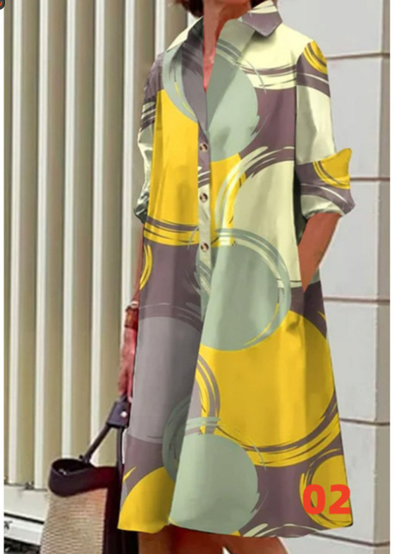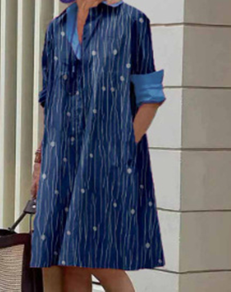 2022 Amazon 가을 신상품 패셔너블한 폴카 도트 프린트 셔츠 칼라 긴팔 미디 드레스스토어 가기