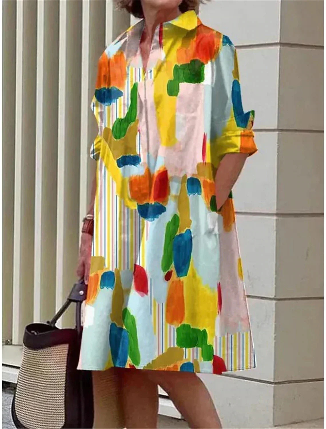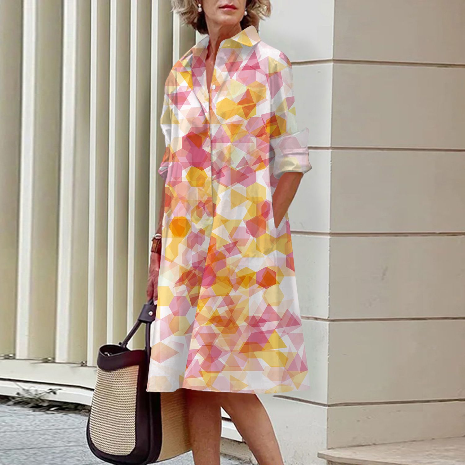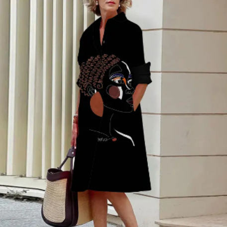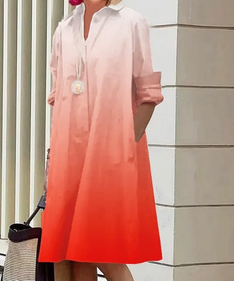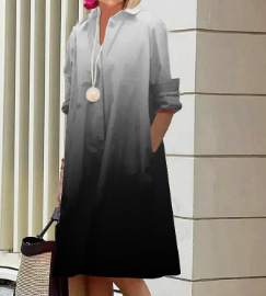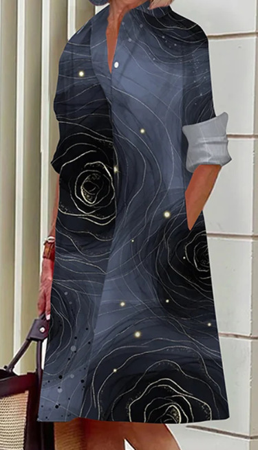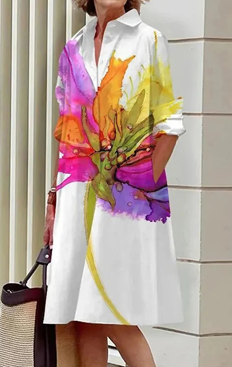 2022 Amazon 가을 신상품 패셔너블한 폴카 도트 프린트 셔츠 칼라 긴팔 미디 드레스스토어 가기