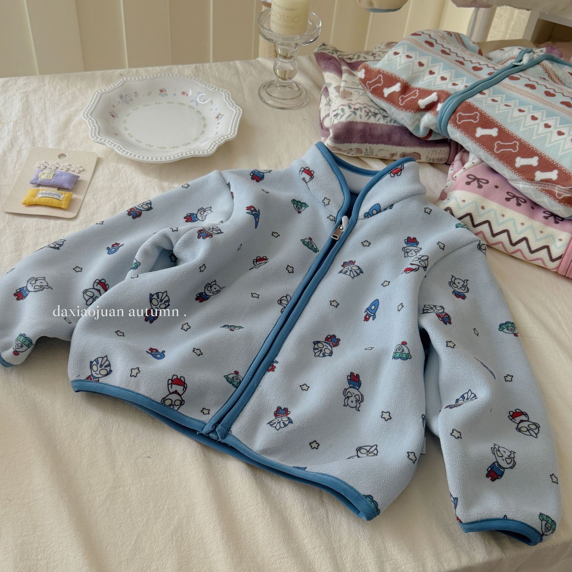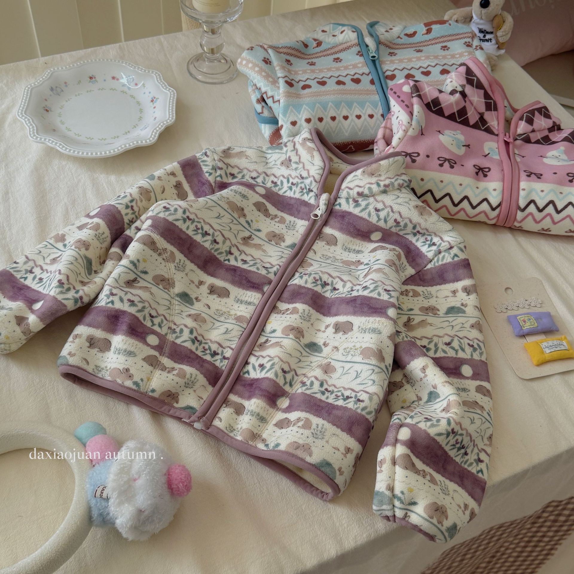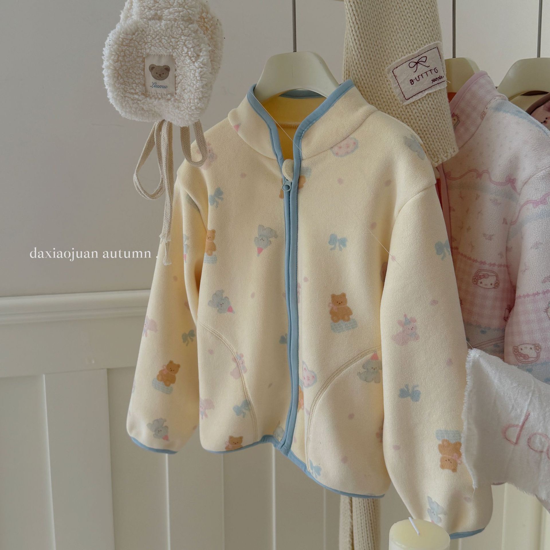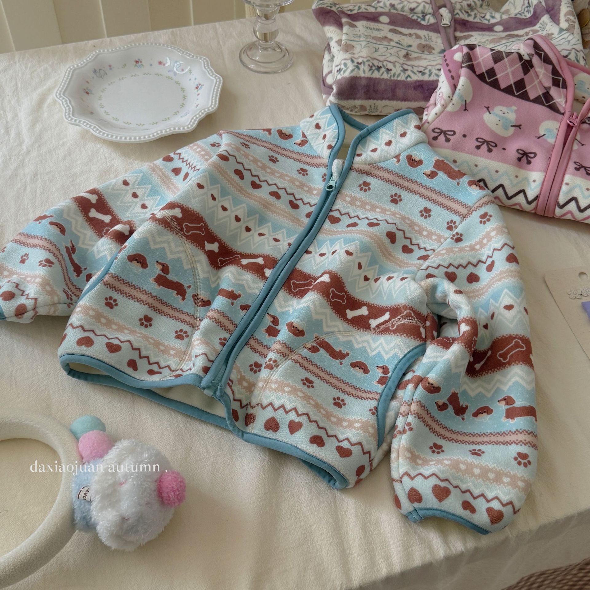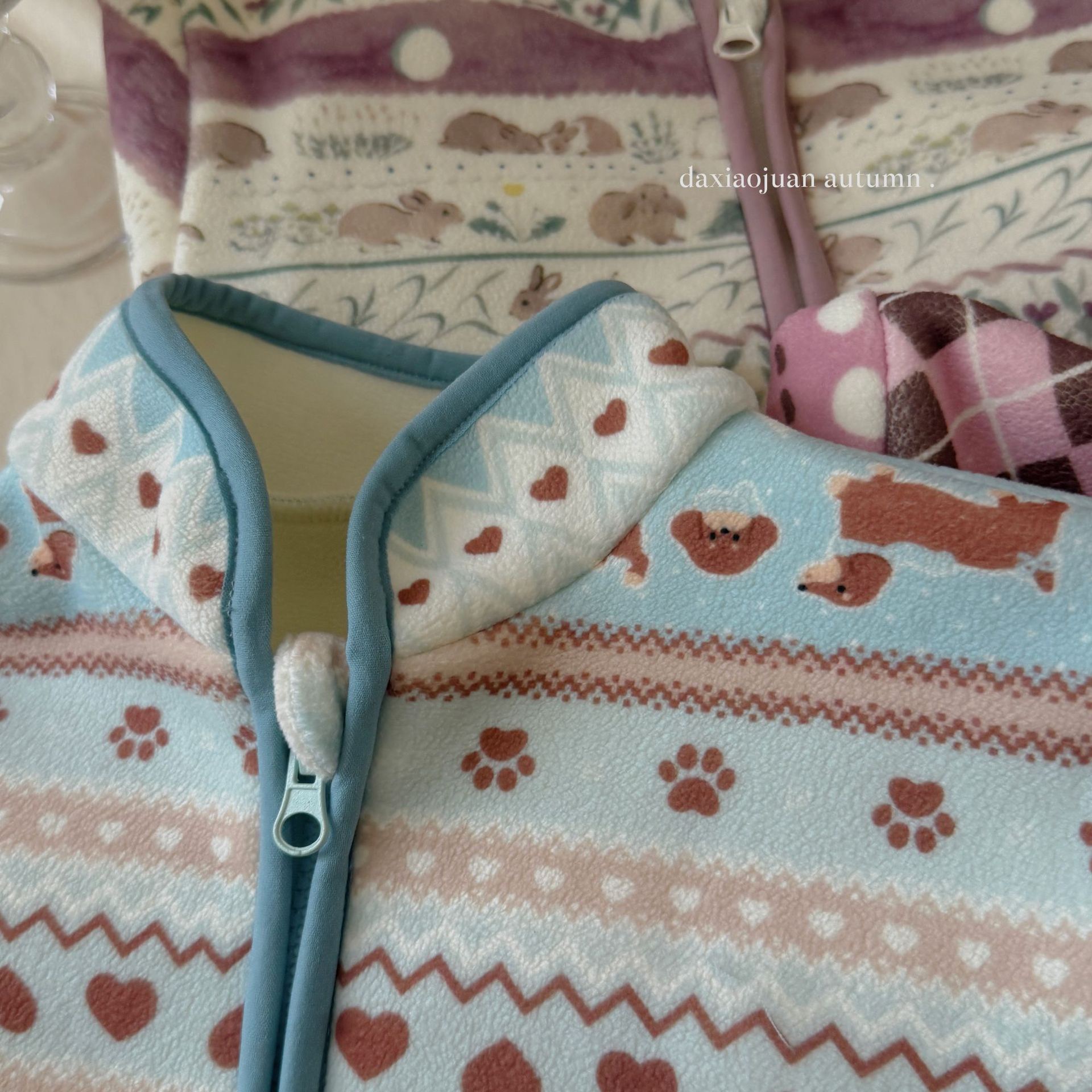 크고 작은 아동복 25 가을 어린이 전체 인쇄 만화 오리 벨벳 재킷 소년과 소녀 지퍼 스탠드 칼라 카디건 따뜻함