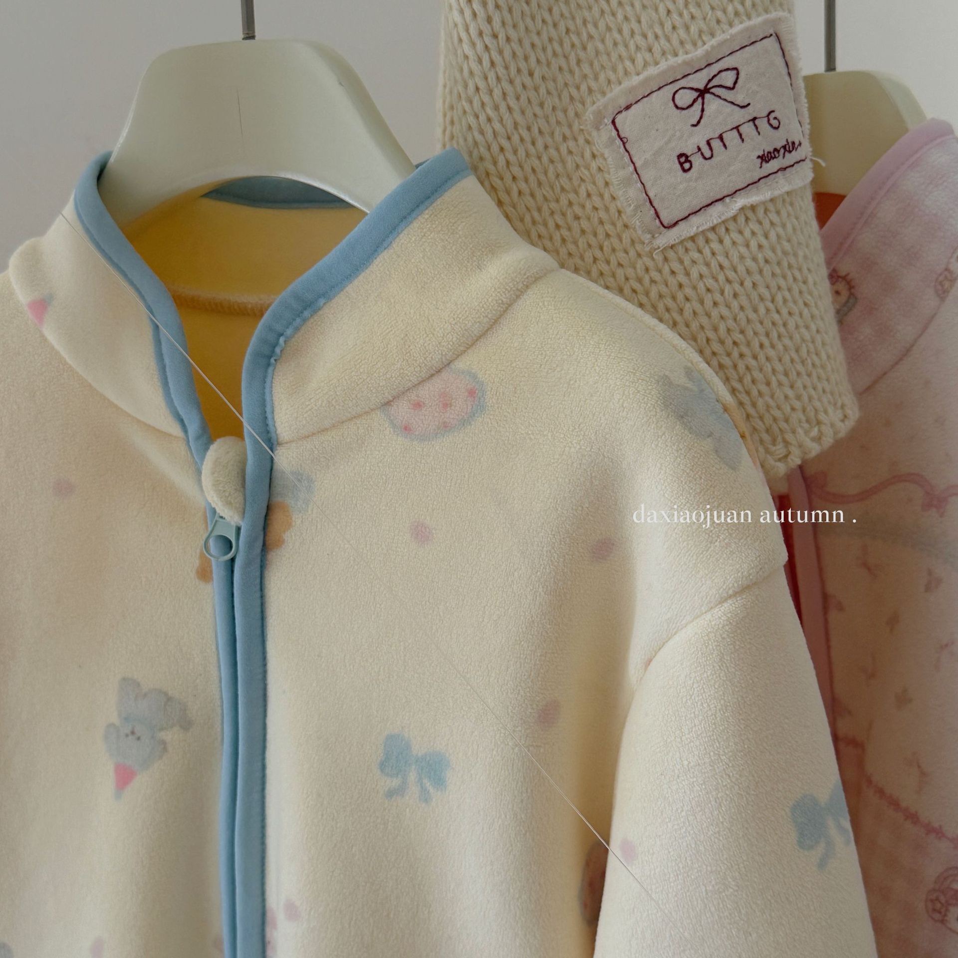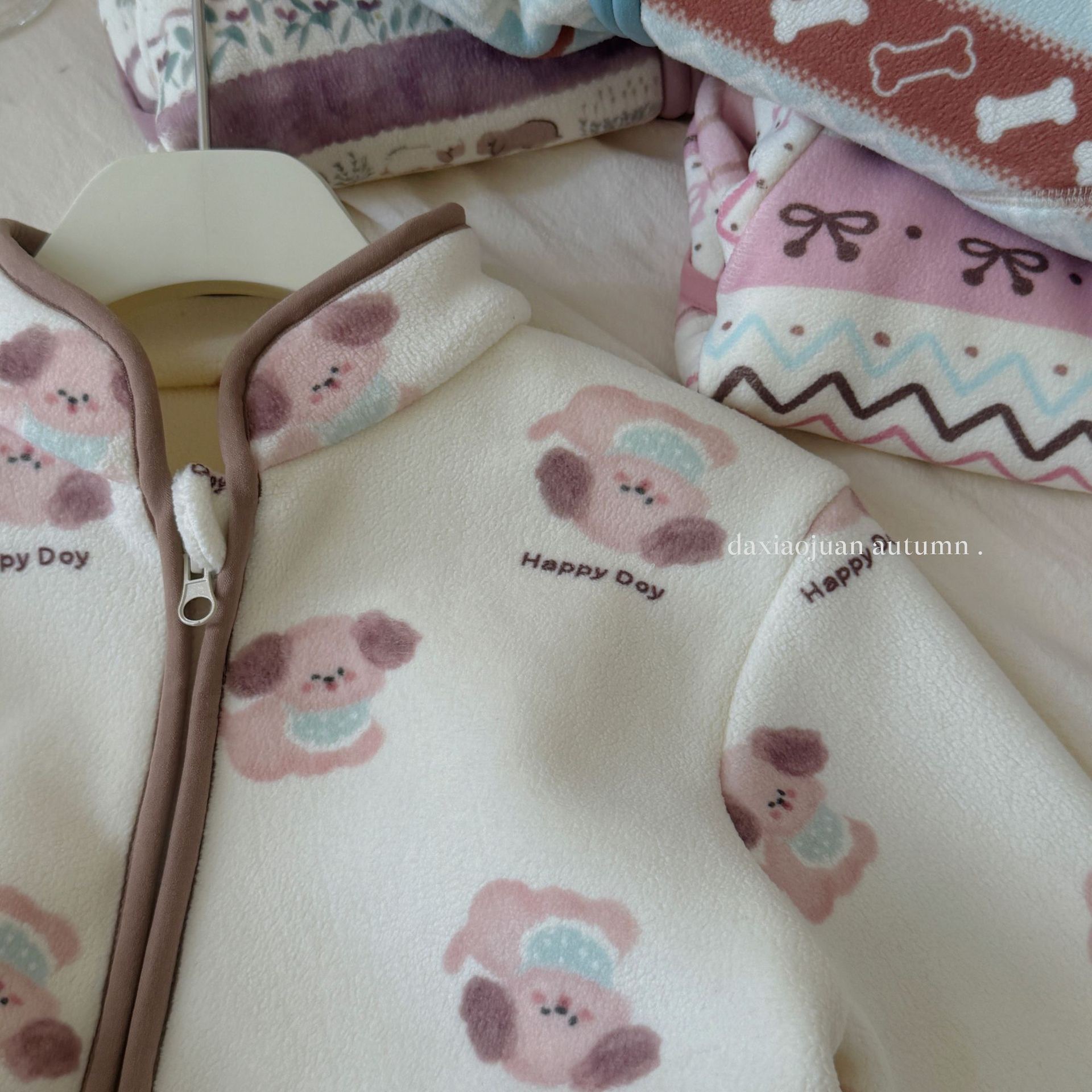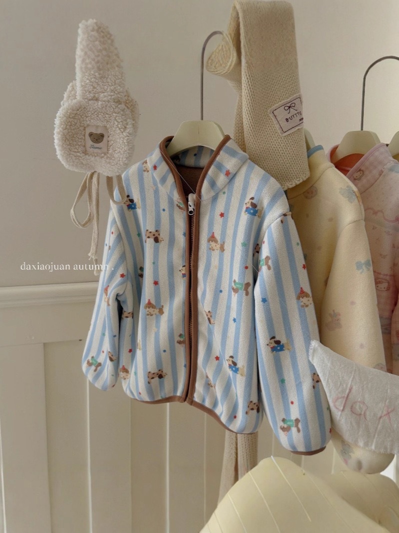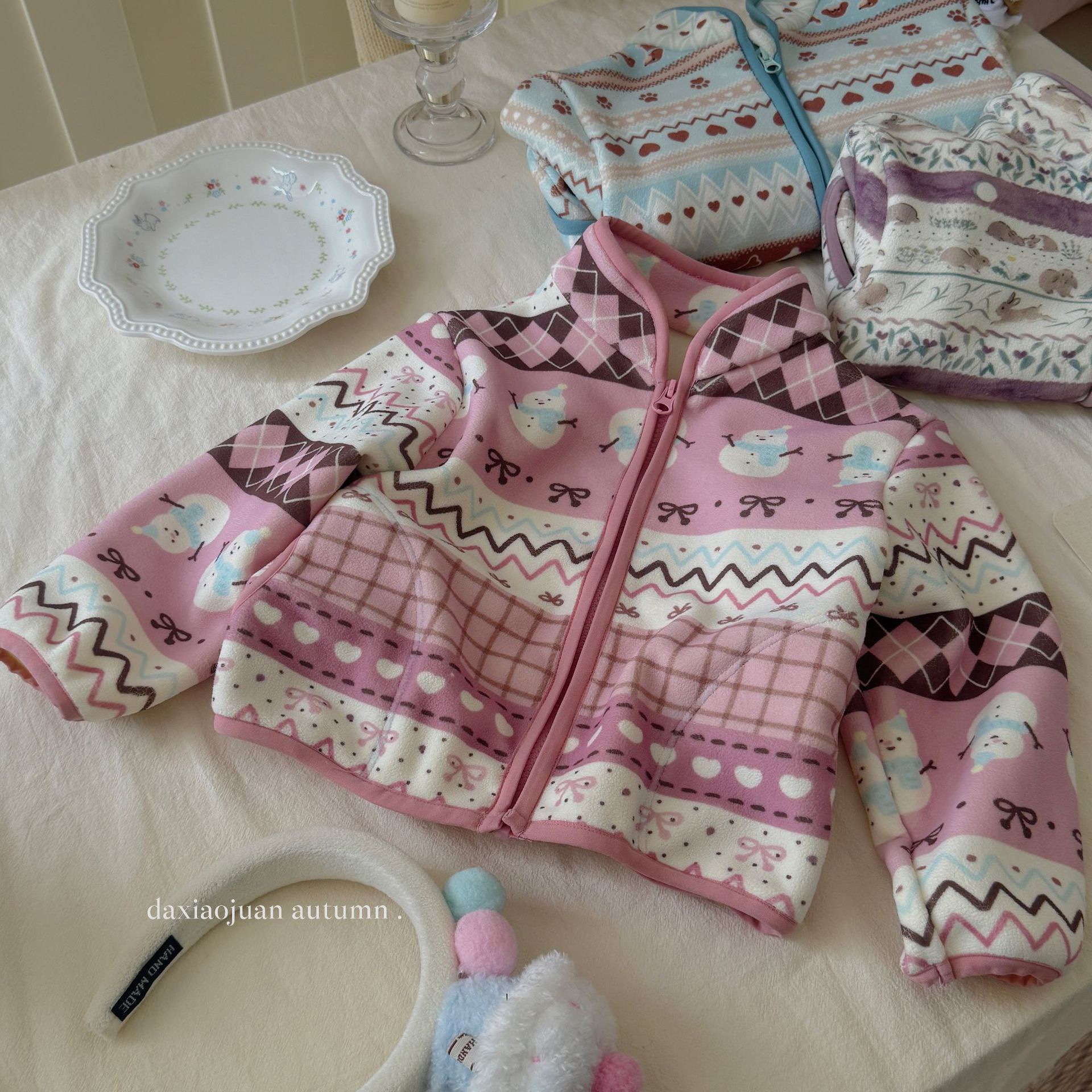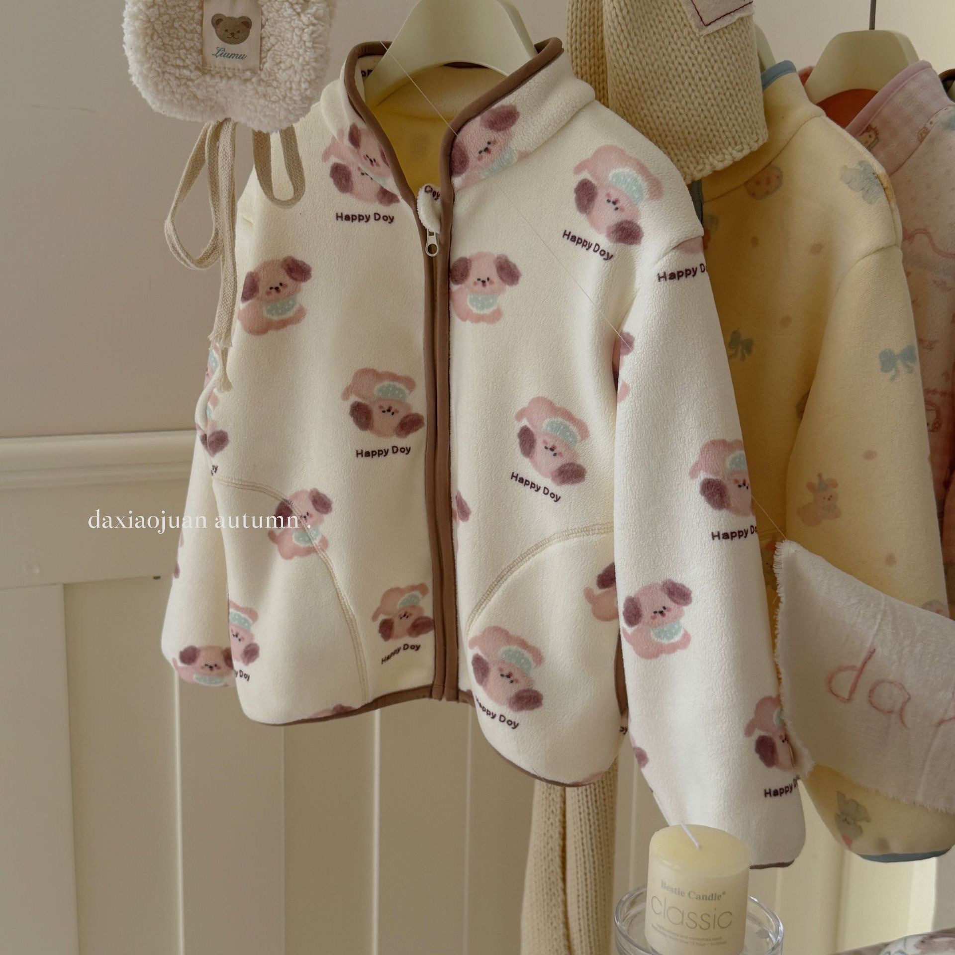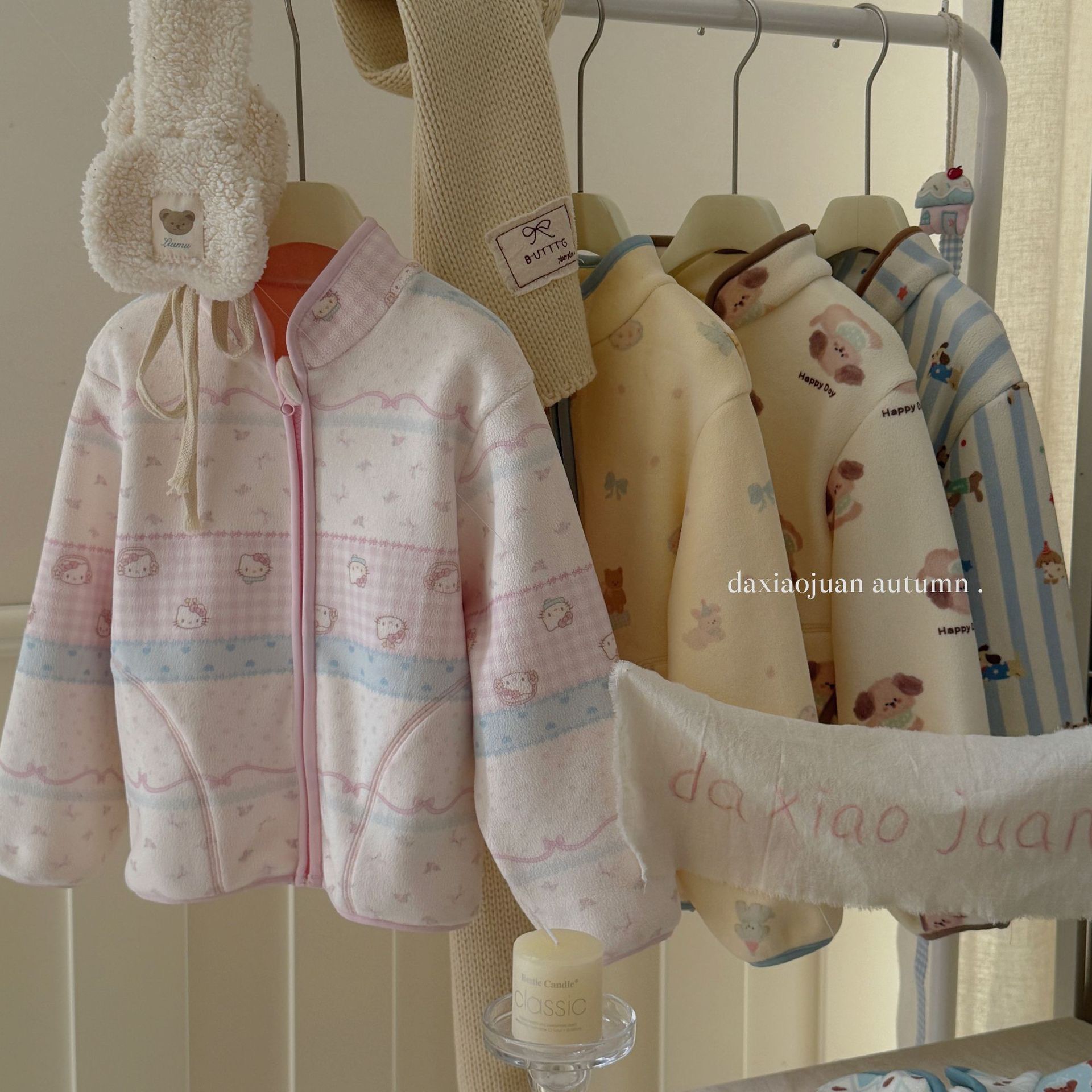 크고 작은 아동복 25 가을 어린이 전체 인쇄 만화 오리 벨벳 재킷 소년과 소녀 지퍼 스탠드 칼라 카디건 따뜻함