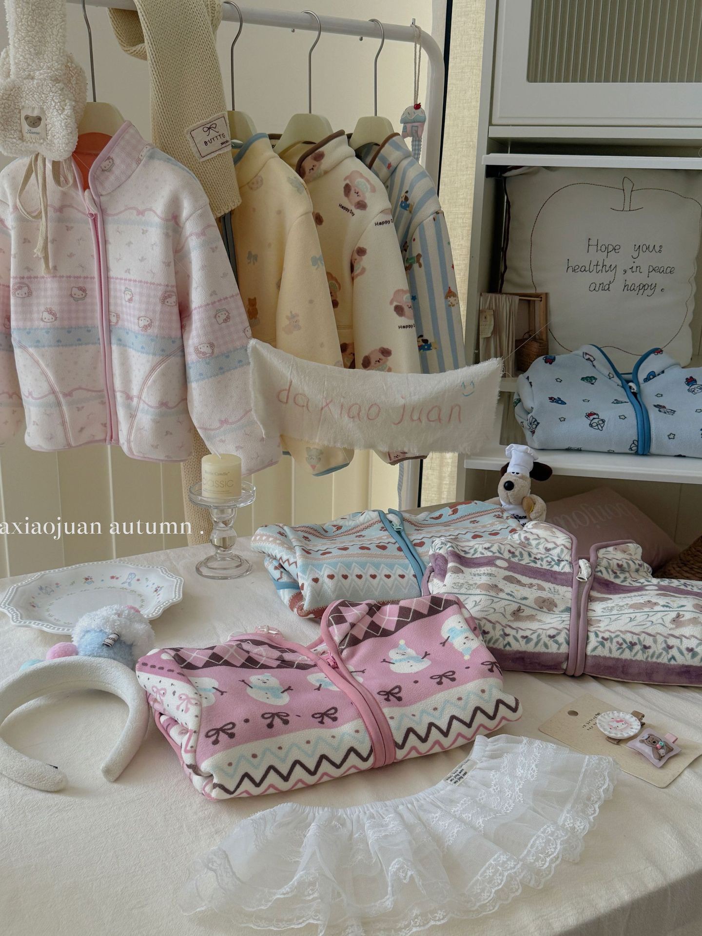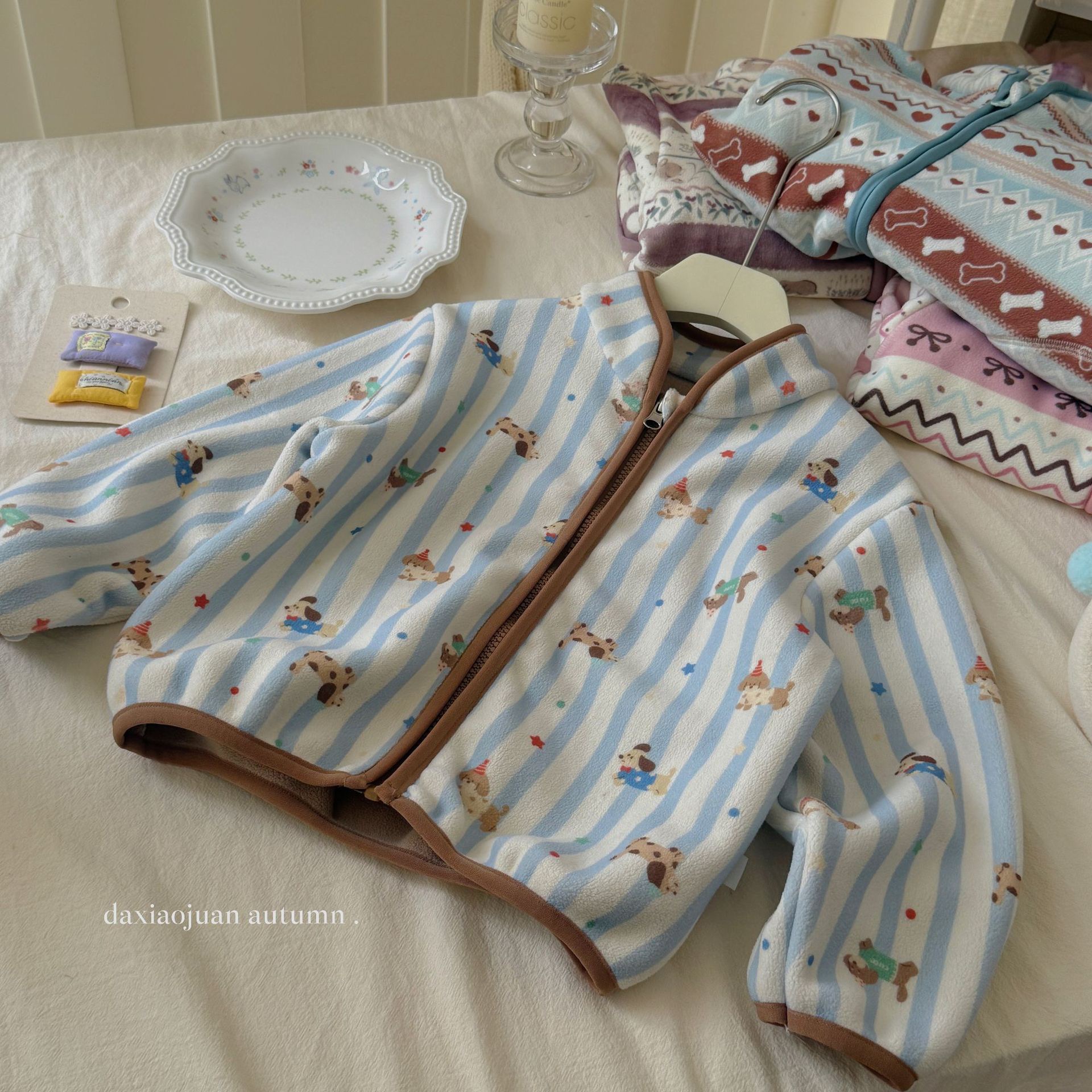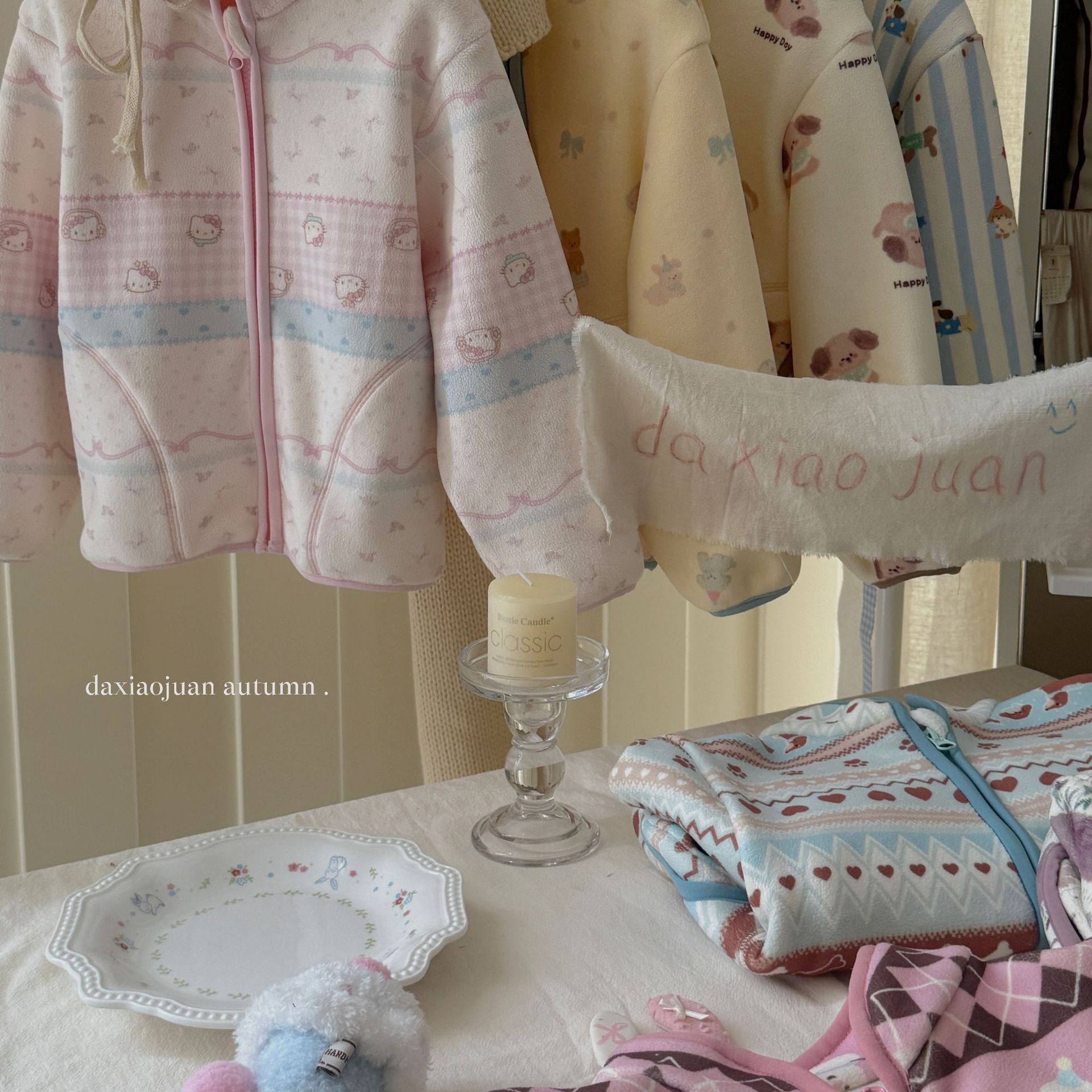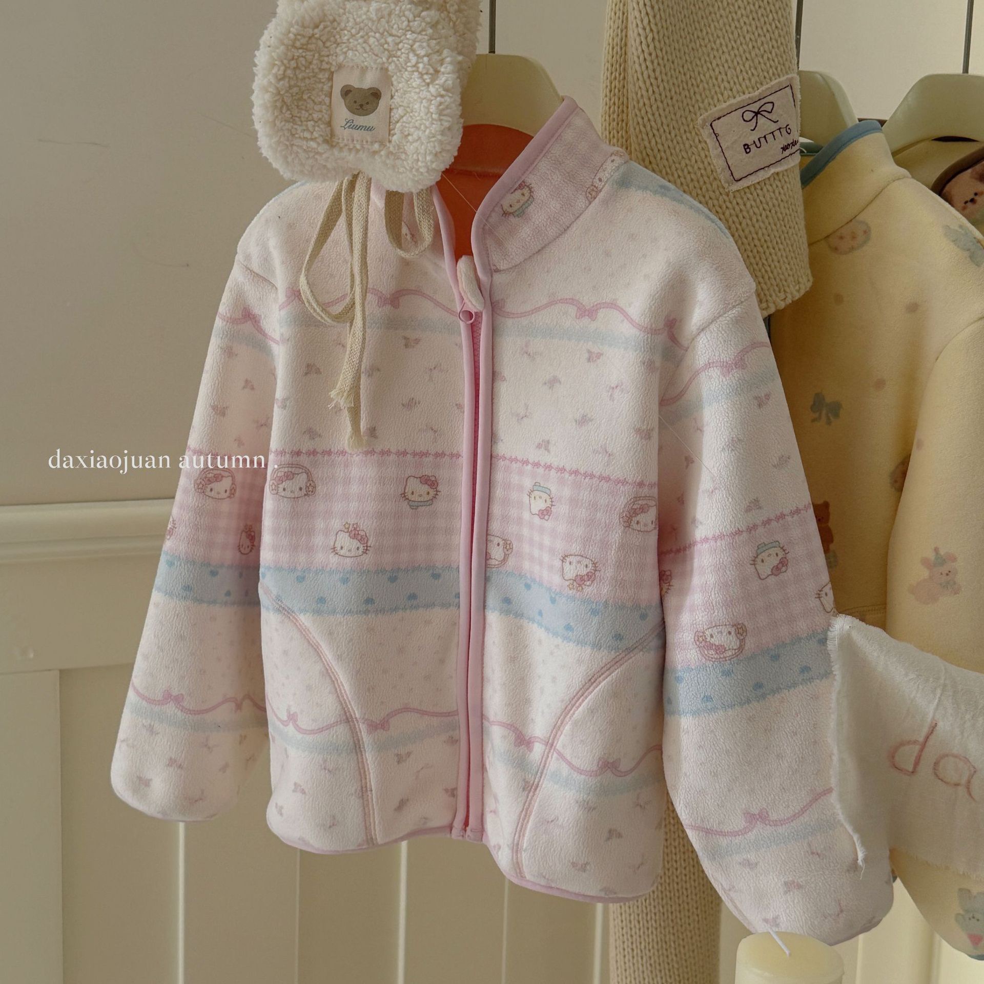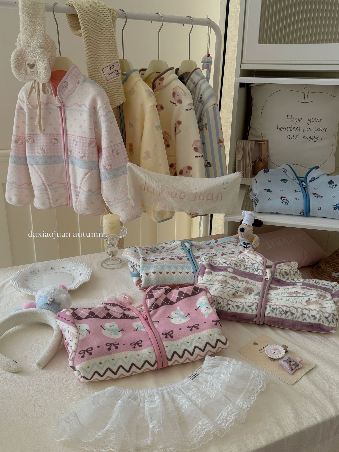 크고 작은 아동복 25 가을 어린이 전체 인쇄 만화 오리 벨벳 재킷 소년과 소녀 지퍼 스탠드 칼라 카디건 따뜻함