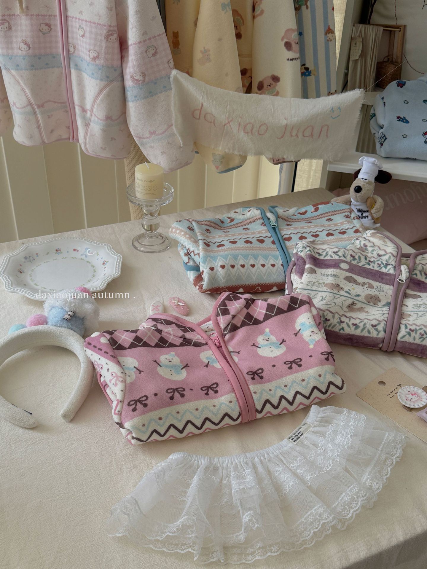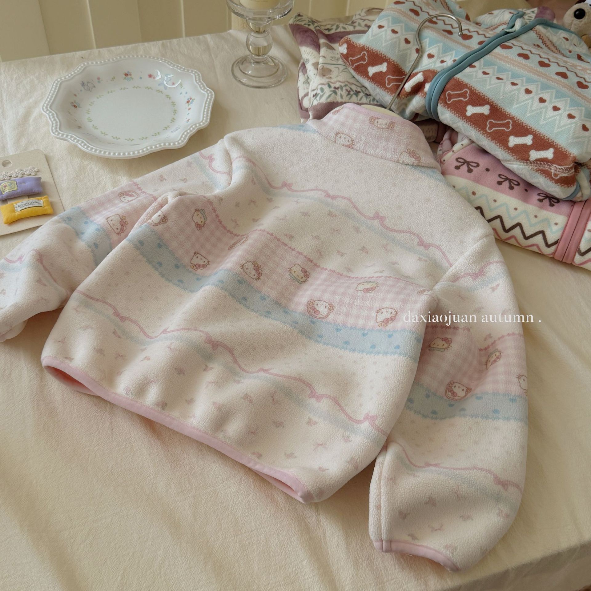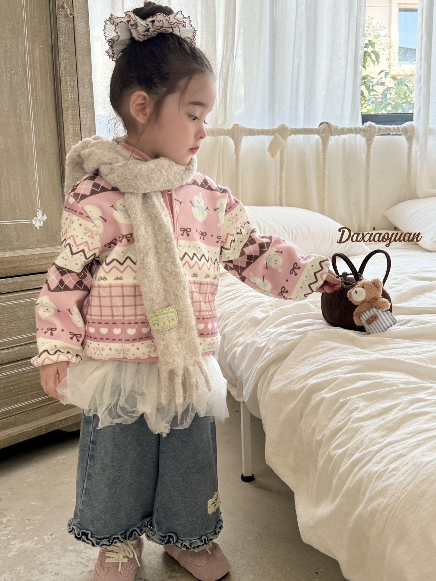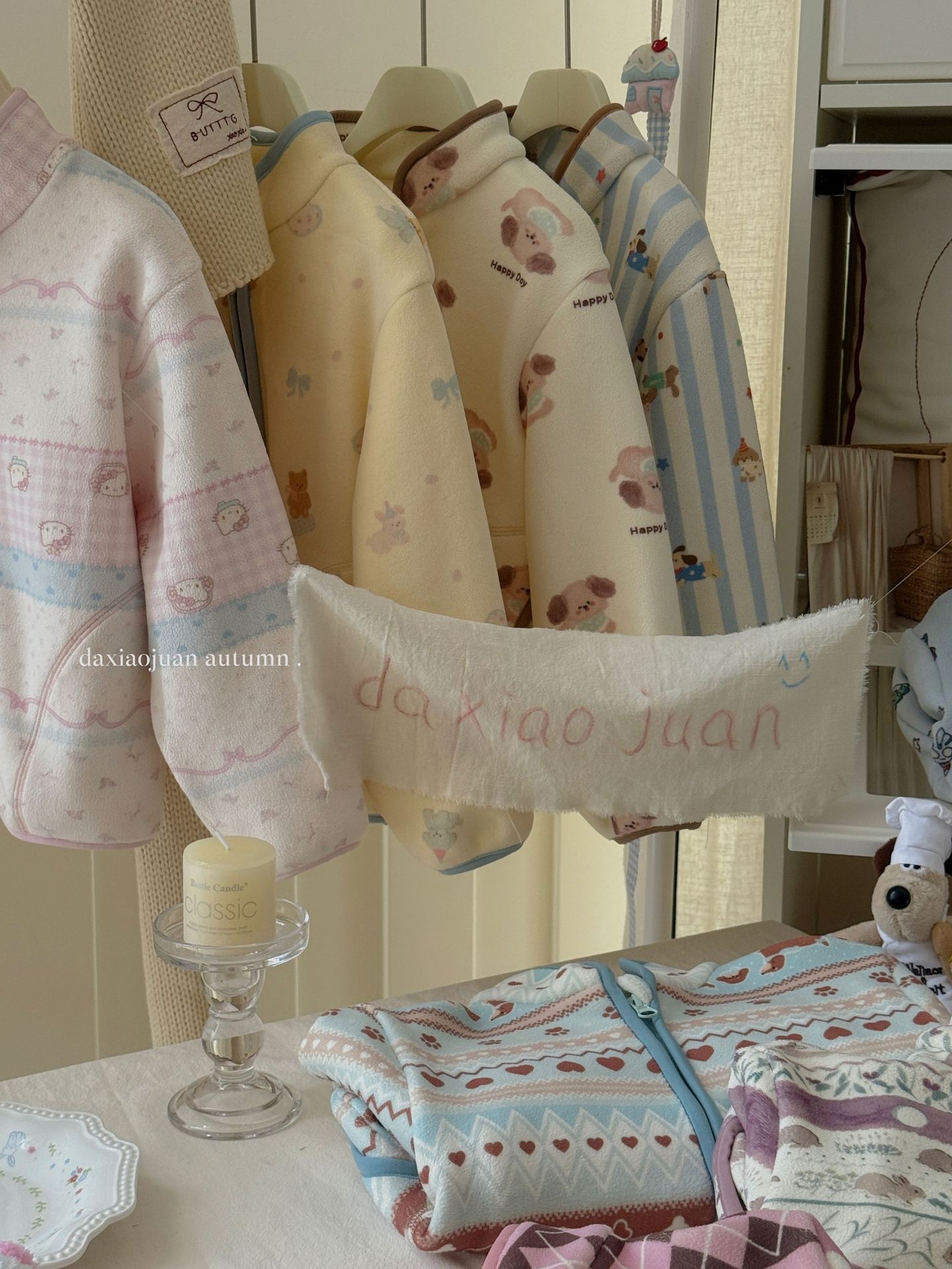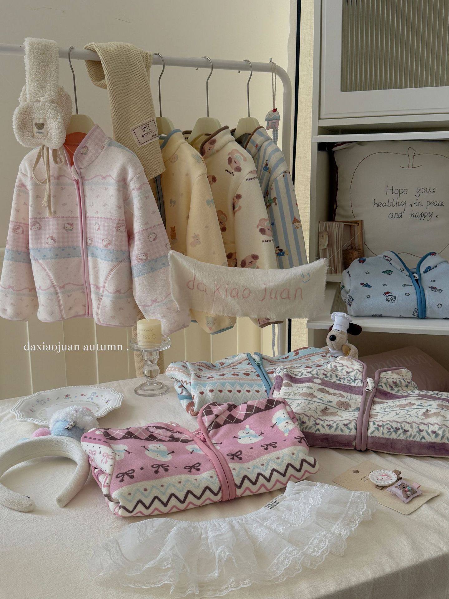 크고 작은 아동복 25 가을 어린이 전체 인쇄 만화 오리 벨벳 재킷 소년과 소녀 지퍼 스탠드 칼라 카디건 따뜻함
