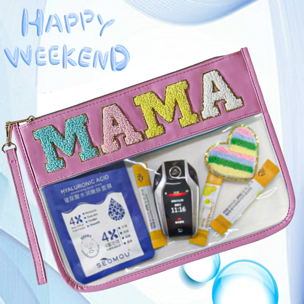 국경 간 투명 휴대용 화장품 가방 투명 수건 녹색 문자 스낵 가방 경기장 물품 편리한 보관 가방스토어 가기
