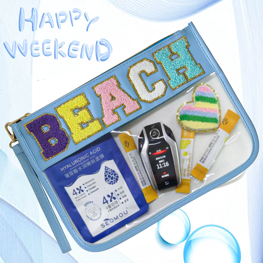 국경 간 투명 휴대용 화장품 가방 투명 수건 녹색 문자 스낵 가방 경기장 물품 편리한 보관 가방