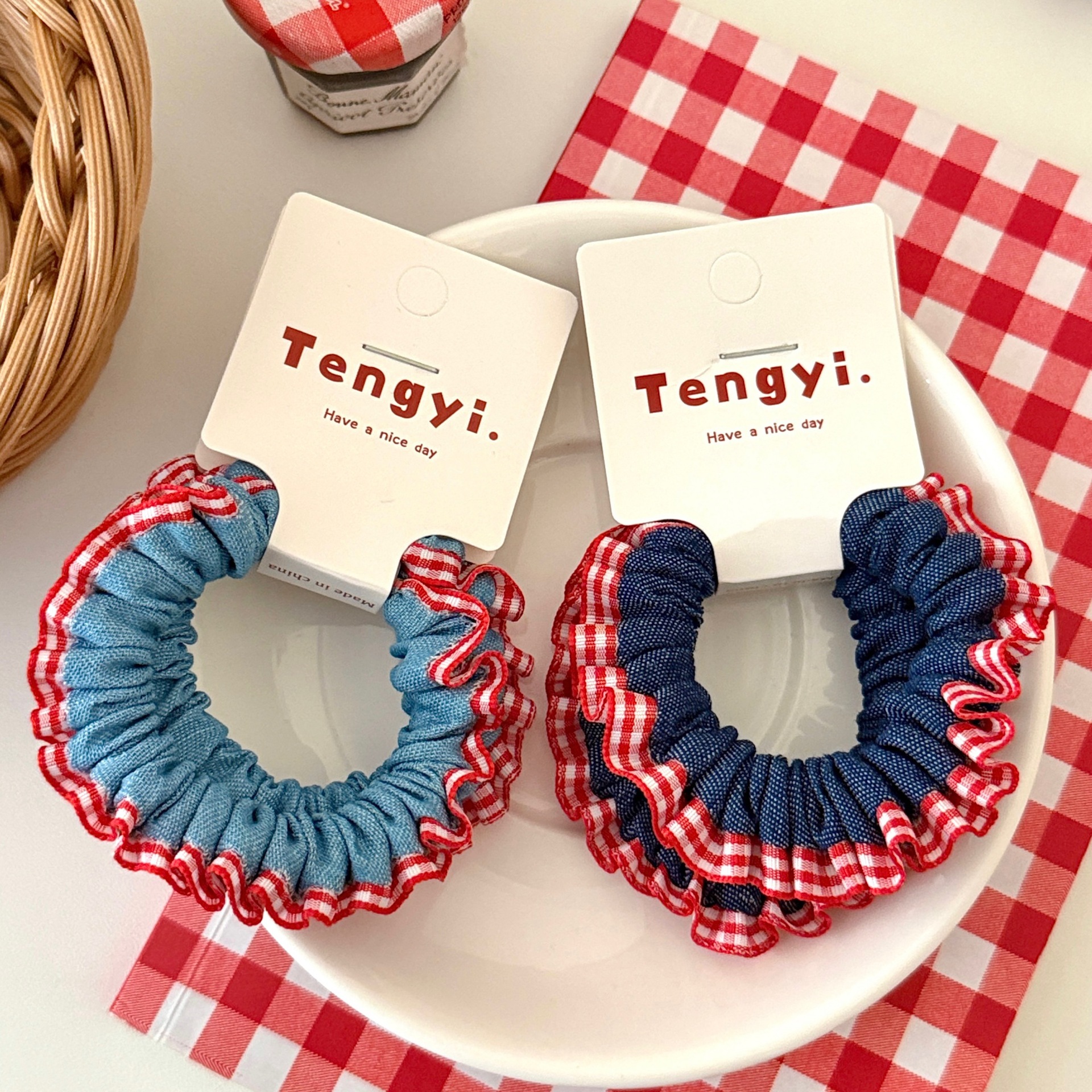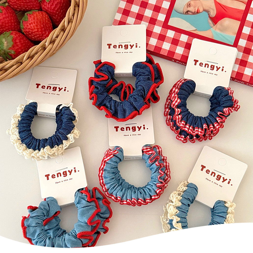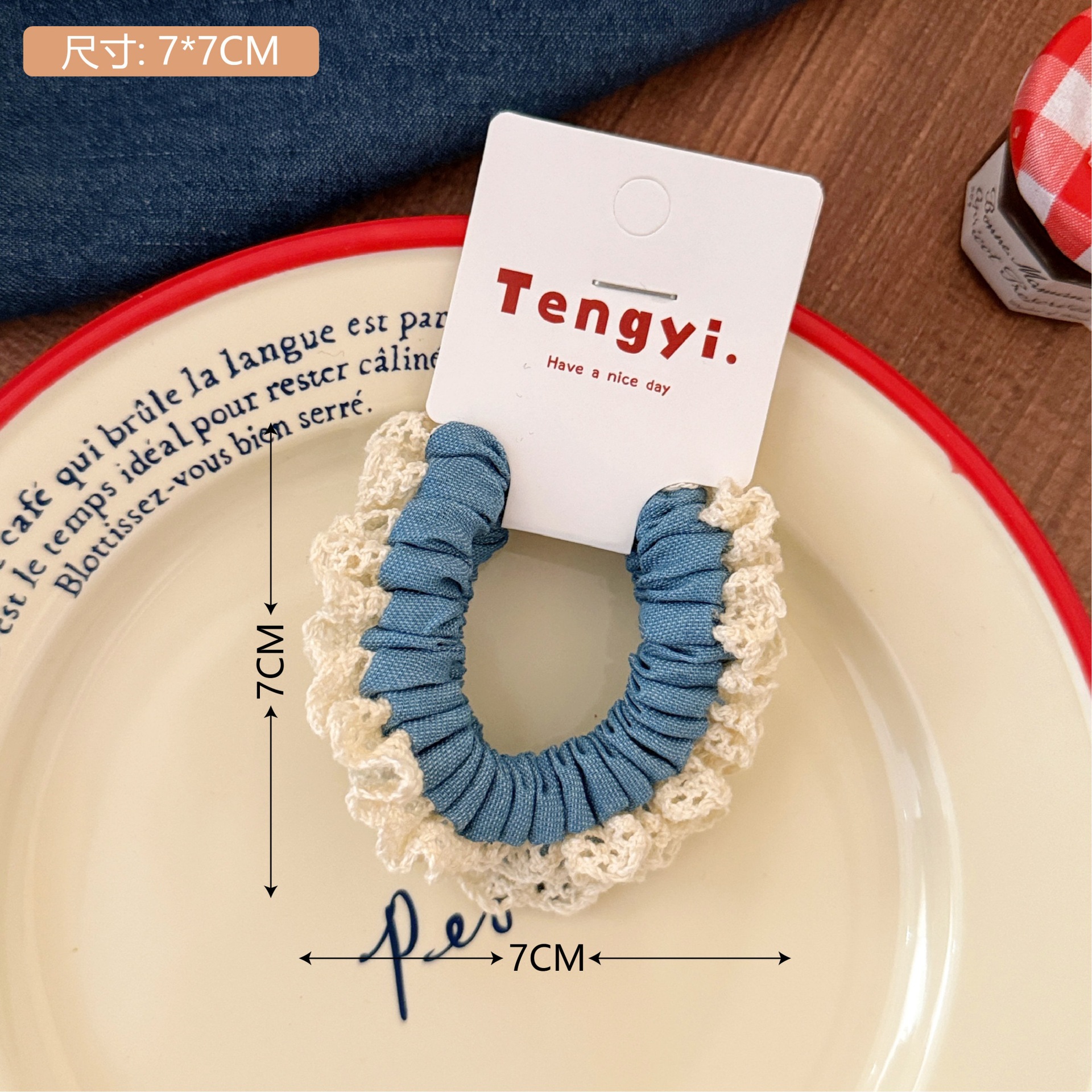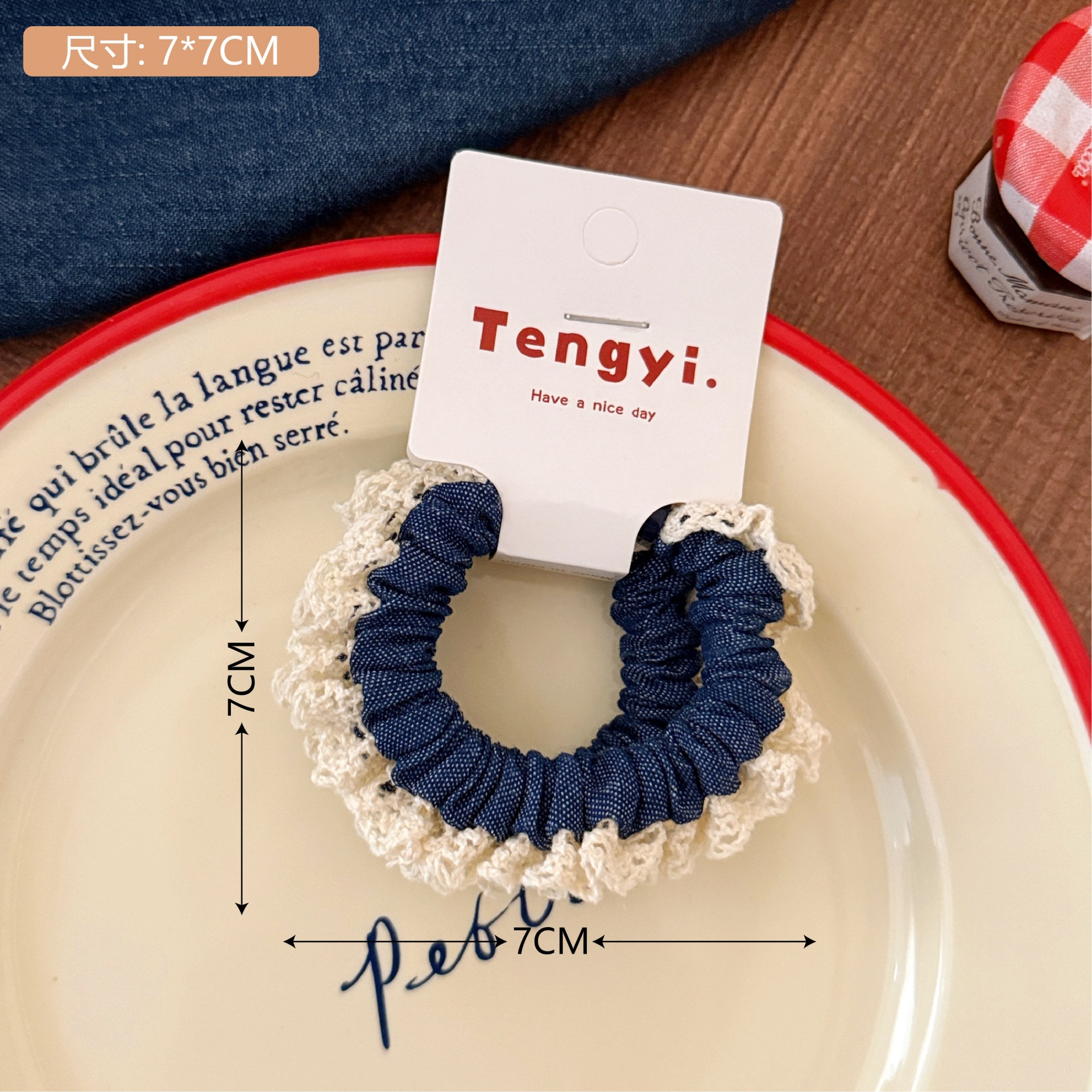 새로운 달콤한 레이스 레이스 데님 헤어 밴드, 패셔너블하고 다재다능한 소녀용 헤어 로프, 멋진 다용도 포니테일 헤어 액세서리 도매
