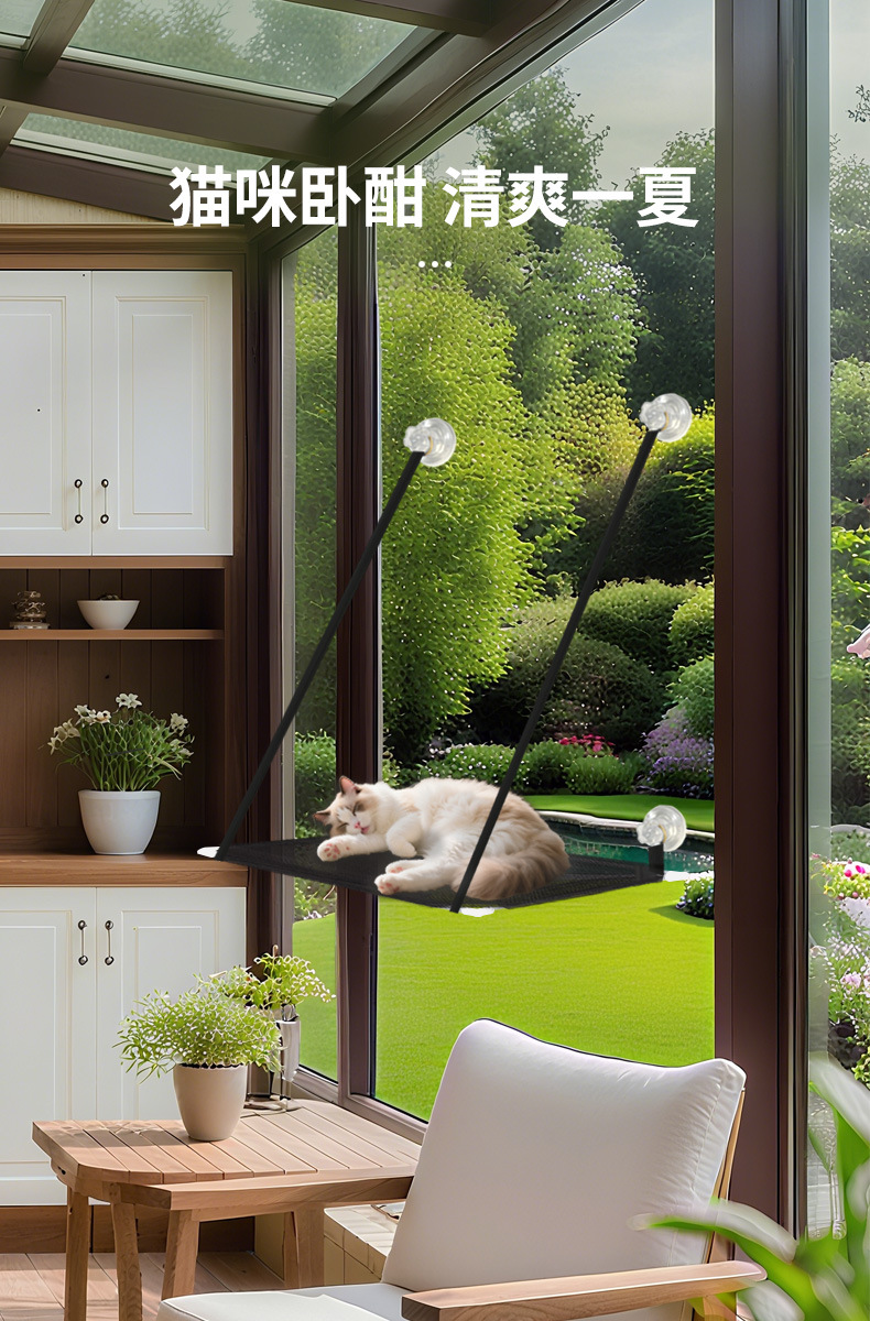 국경 간 고양이 해먹 흡입 컵 교수형 침대 통기성 고양이 둥지 매트 발코니 창 유리 고양이 용품 애완 동물 침대 도매스토어 가기