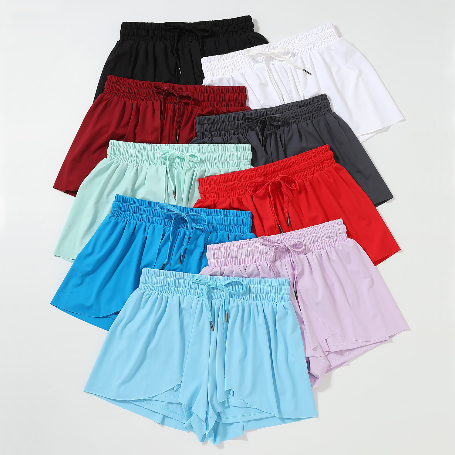 2025 스포츠 반바지 소녀 Drawstring 요가 반바지 높은 허리 통기성 빠른 건조 외부 착용 러닝 스포츠 2 1 반바지