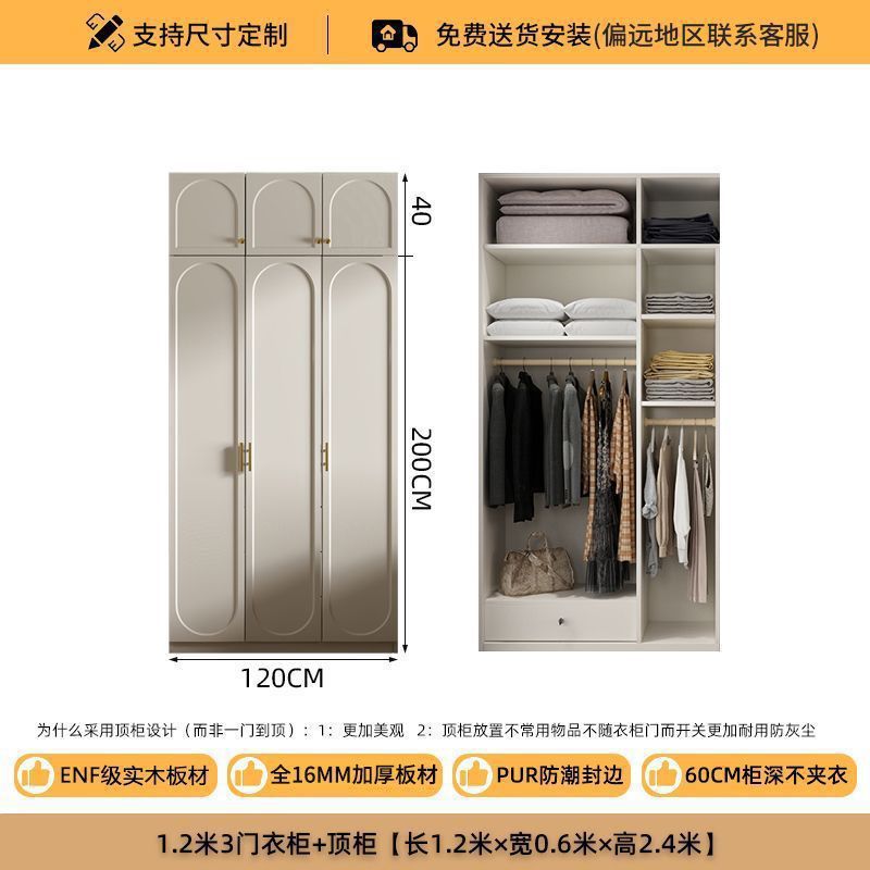 프렌치 크림 스타일의 원목 캐비닛, 가정용 침실 옷장, 소형 아파트, 모던 심플 캐비닛, 완제품 대형 옷장
