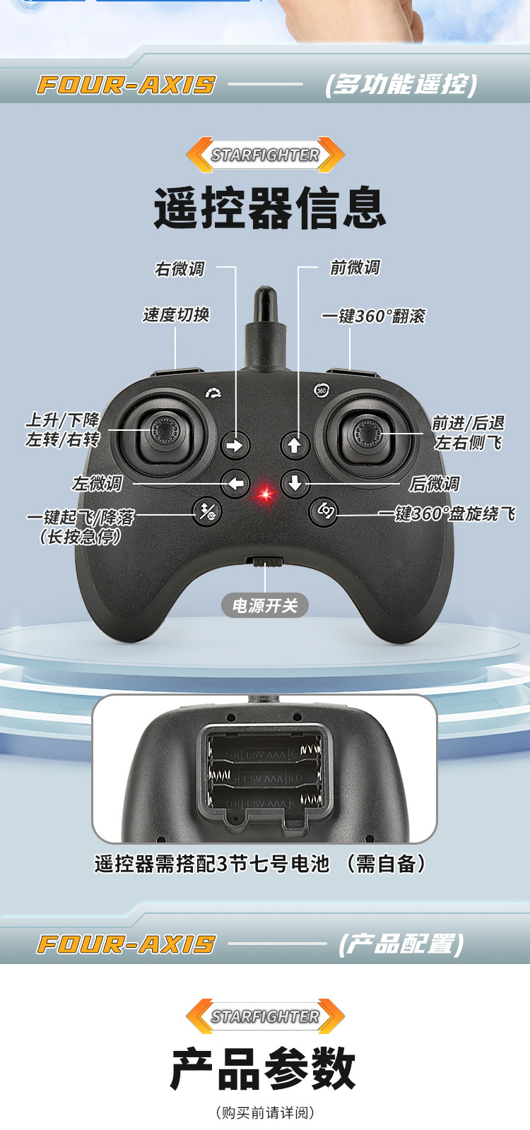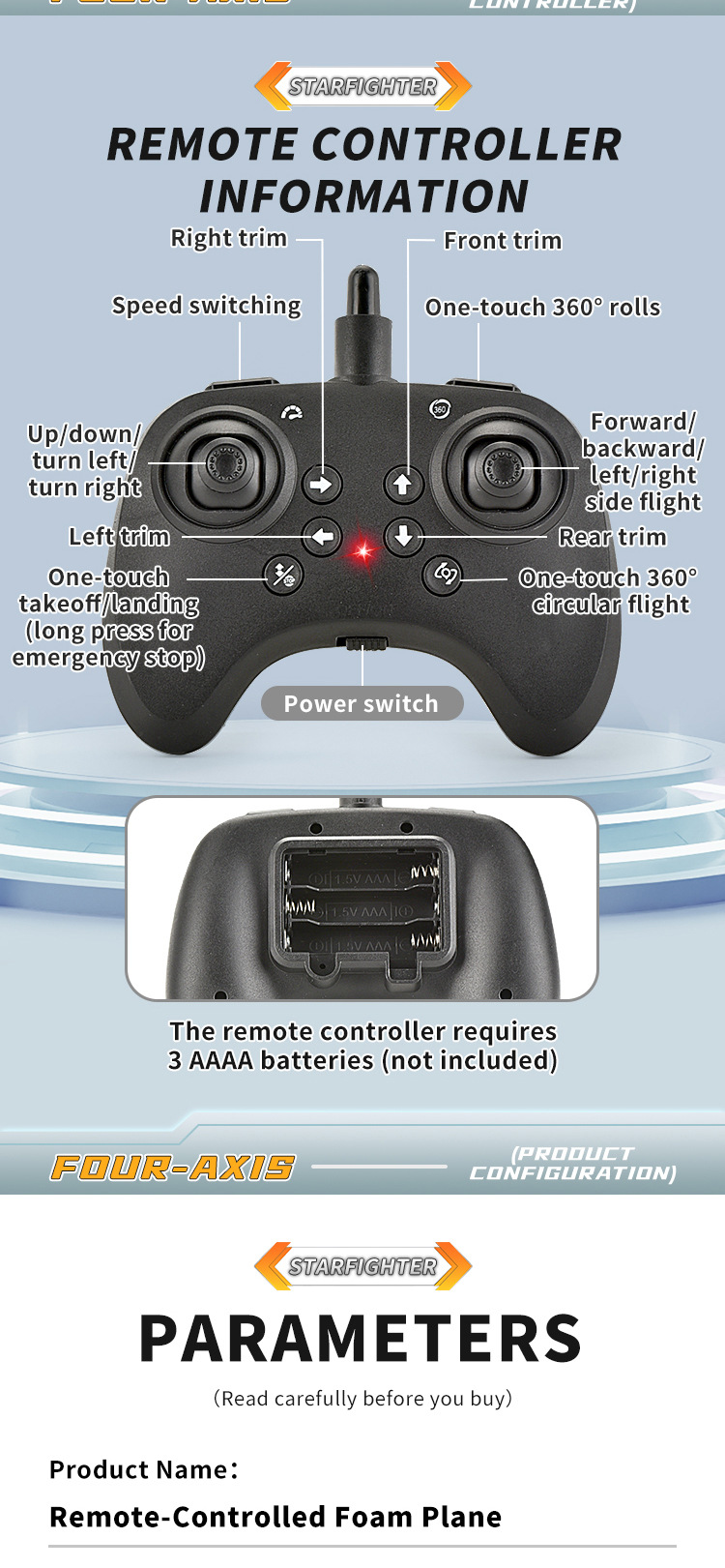 • 폼 4축 원격 제어 항공기-블루(손잡이)