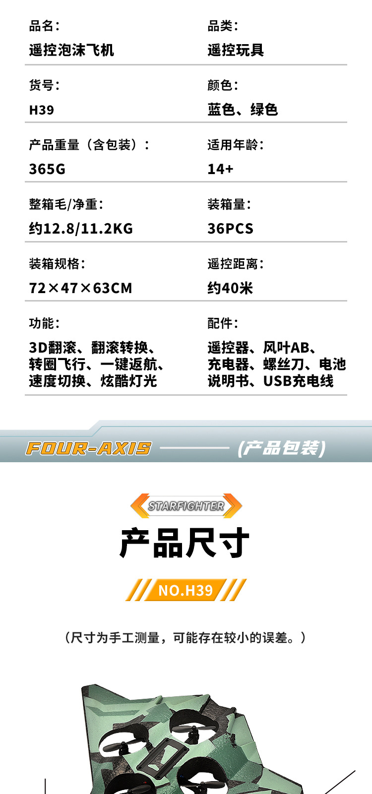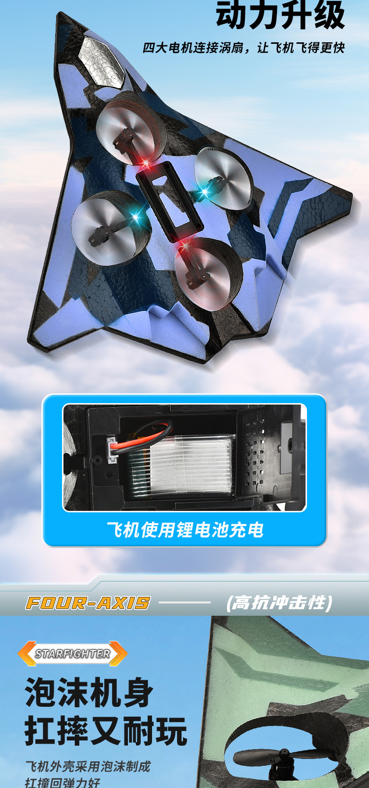 국경 간 어린이 원격 제어 전투기 드론 충전식 낙하 방지 폼 모델 항공기 소년을위한 4 축 글라이더 장난감스토어 가기