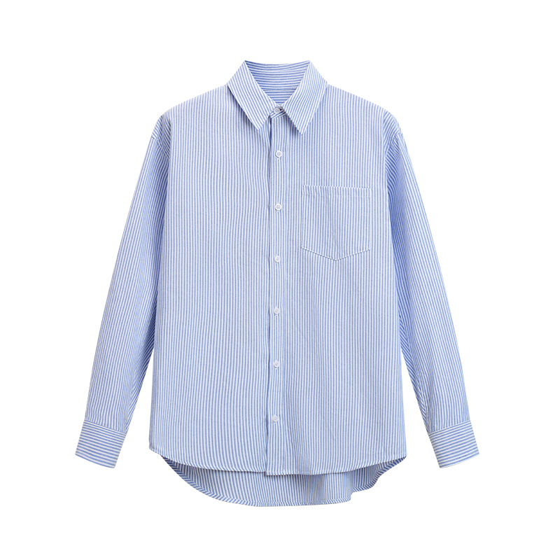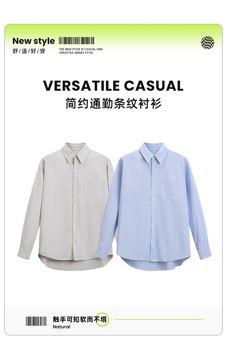 남성용 가을 신상 블루 스트라이프 라펠 셔츠, 남성용 및 여성용 통근용 다용도 캐주얼 카디건 탑, 긴팔 셔츠스토어 가기