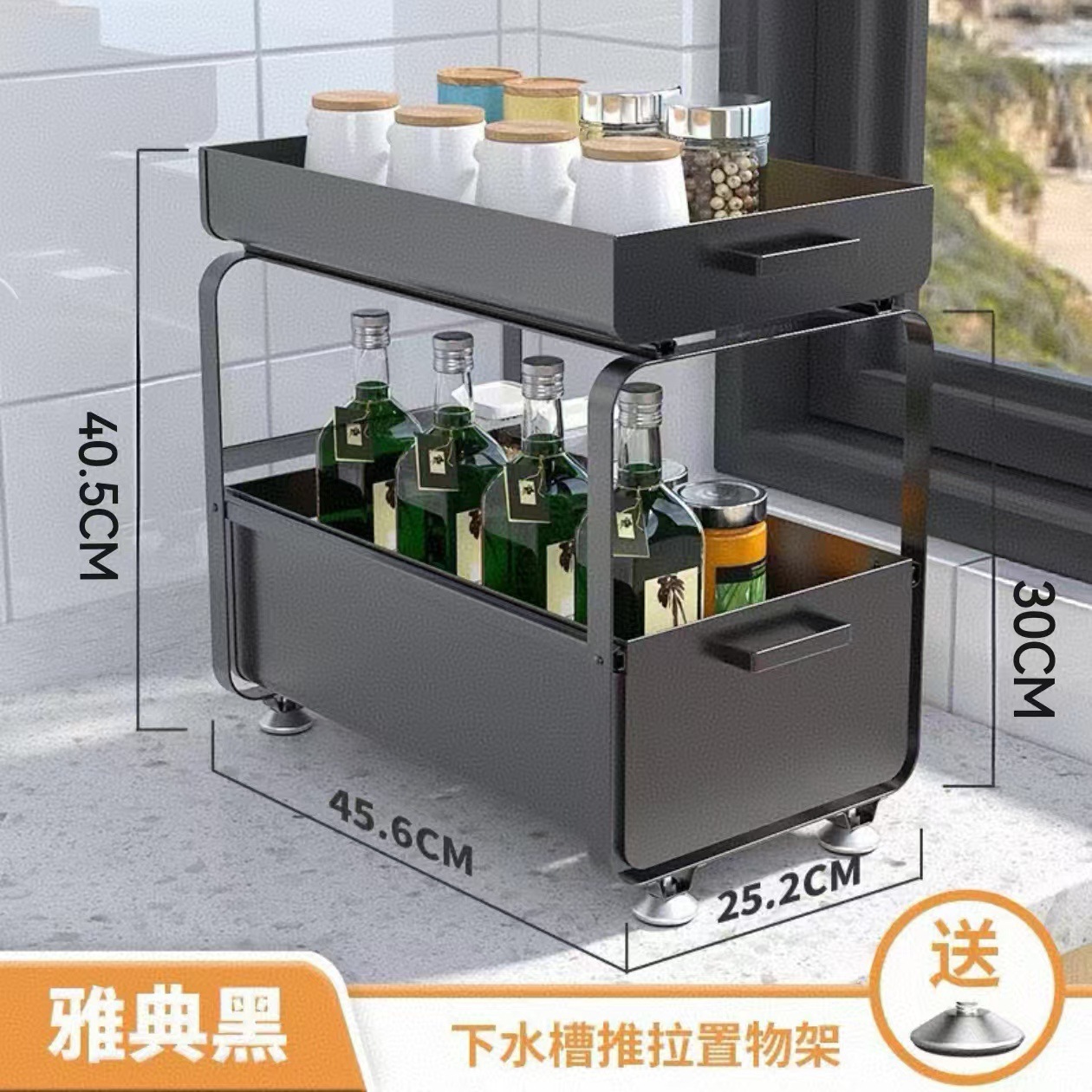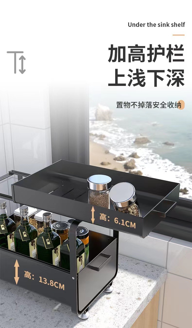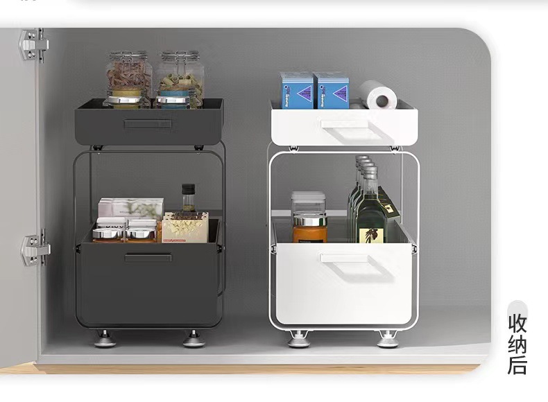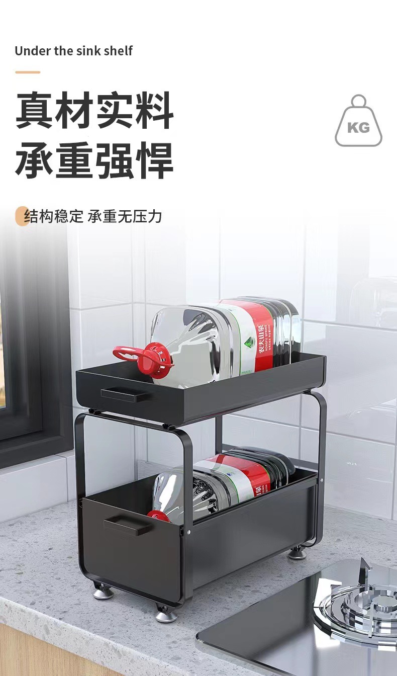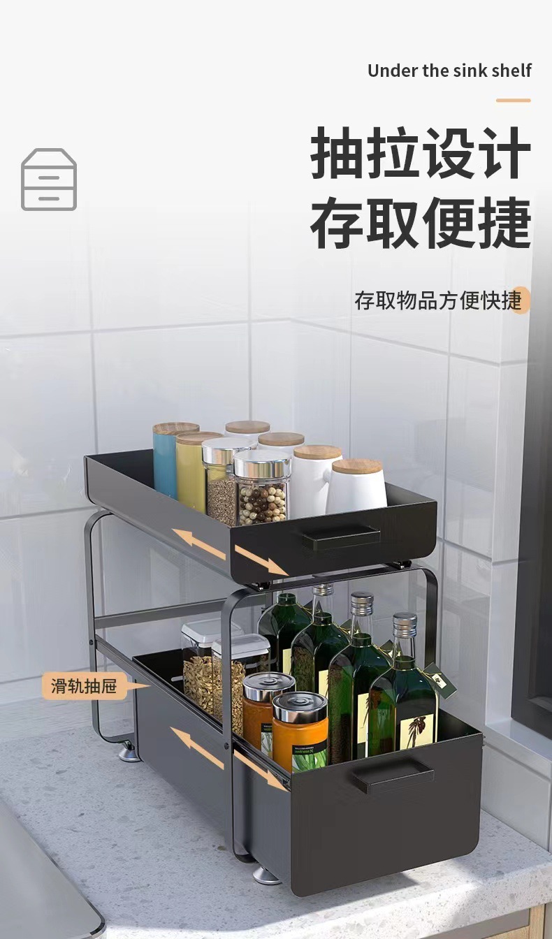 싱크대 아래 다기능 수납선반, 바닥형 푸시풀 확장형 서랍, 풀아웃 수납선반, 두꺼운 캐비닛 수납선반