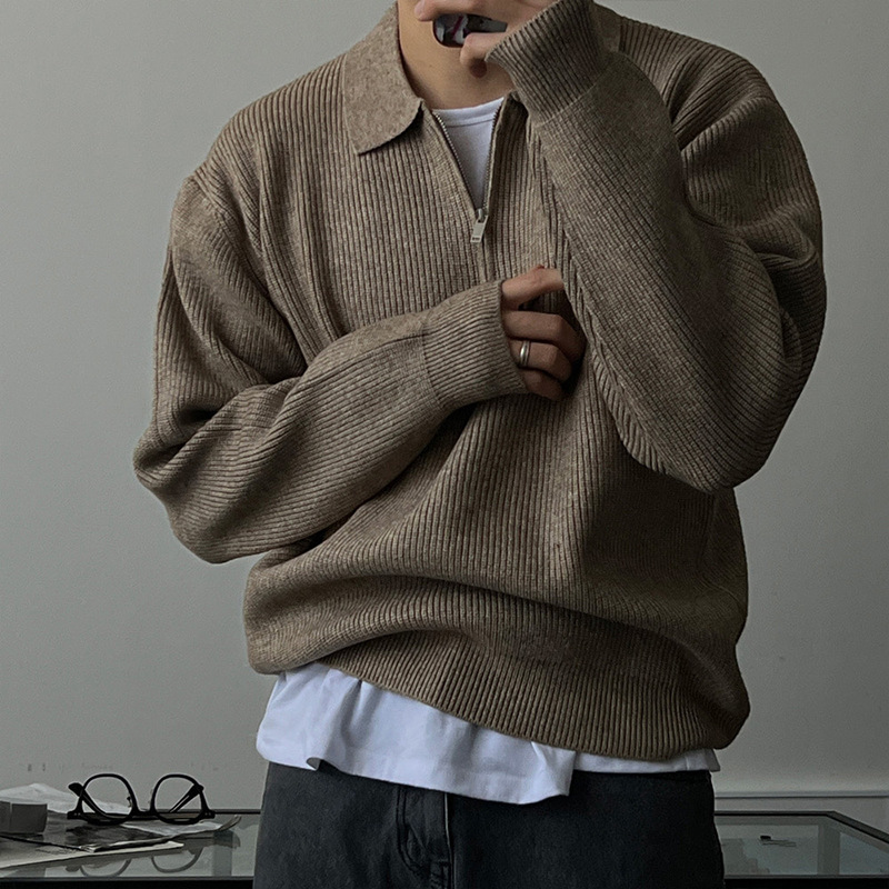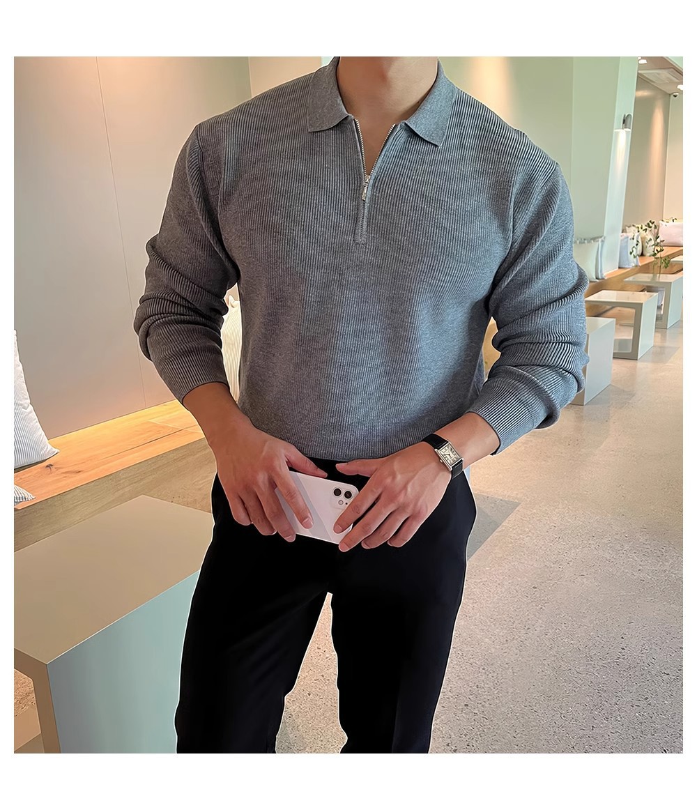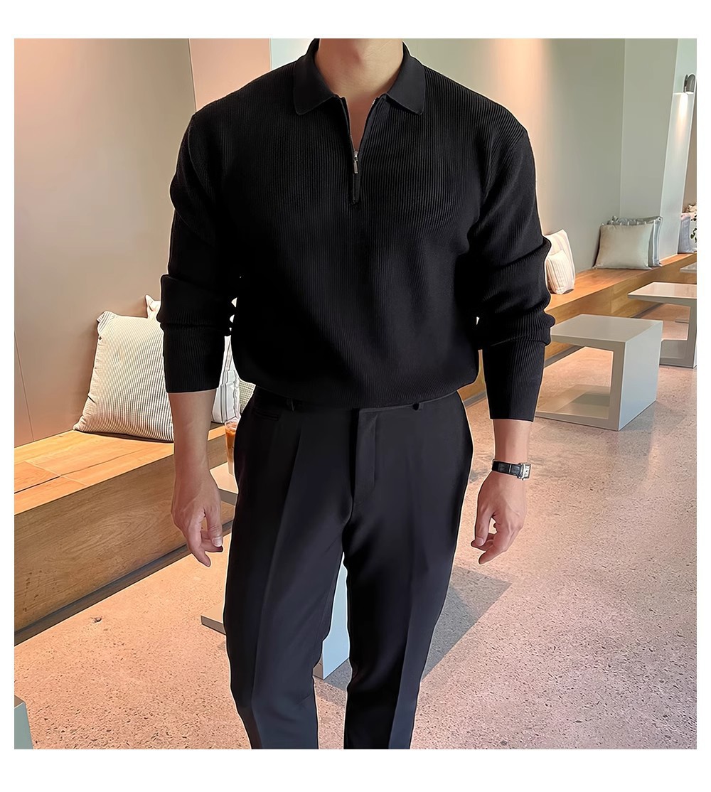 韩版潮流拉链毛衣男士翻领韩版潮流休闲长袖纯色针织衫上衣外套潮스토어 가기