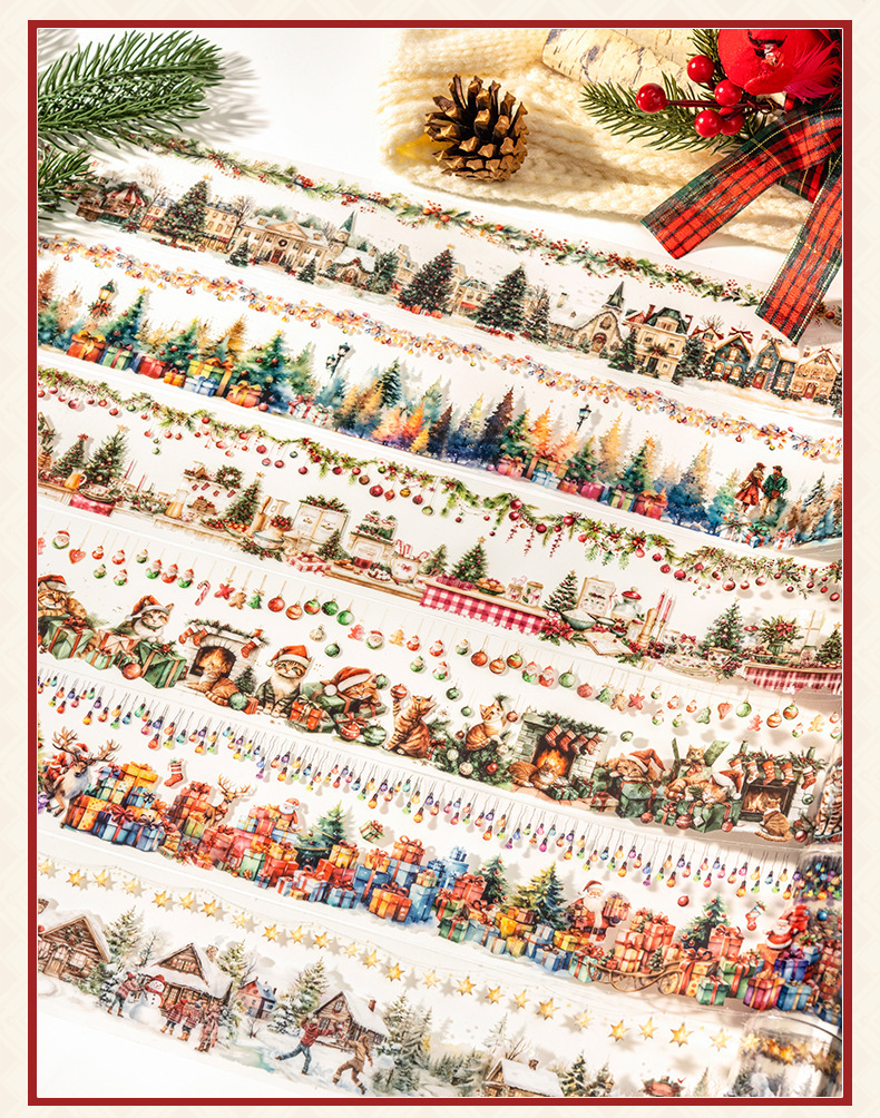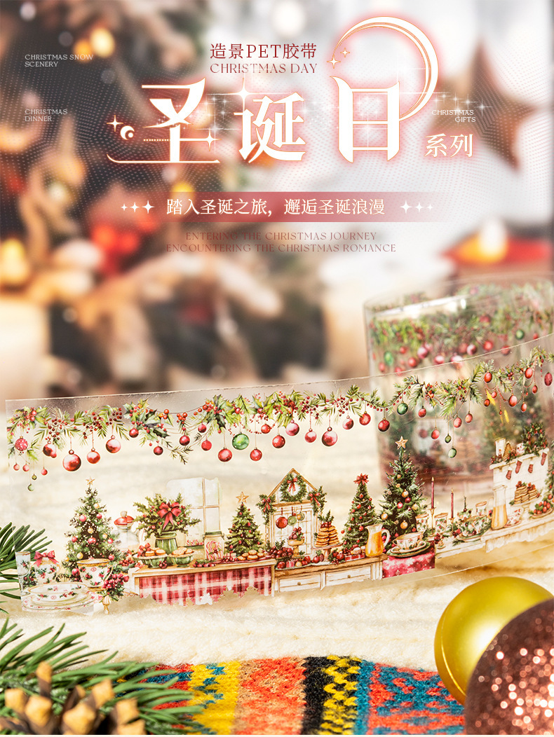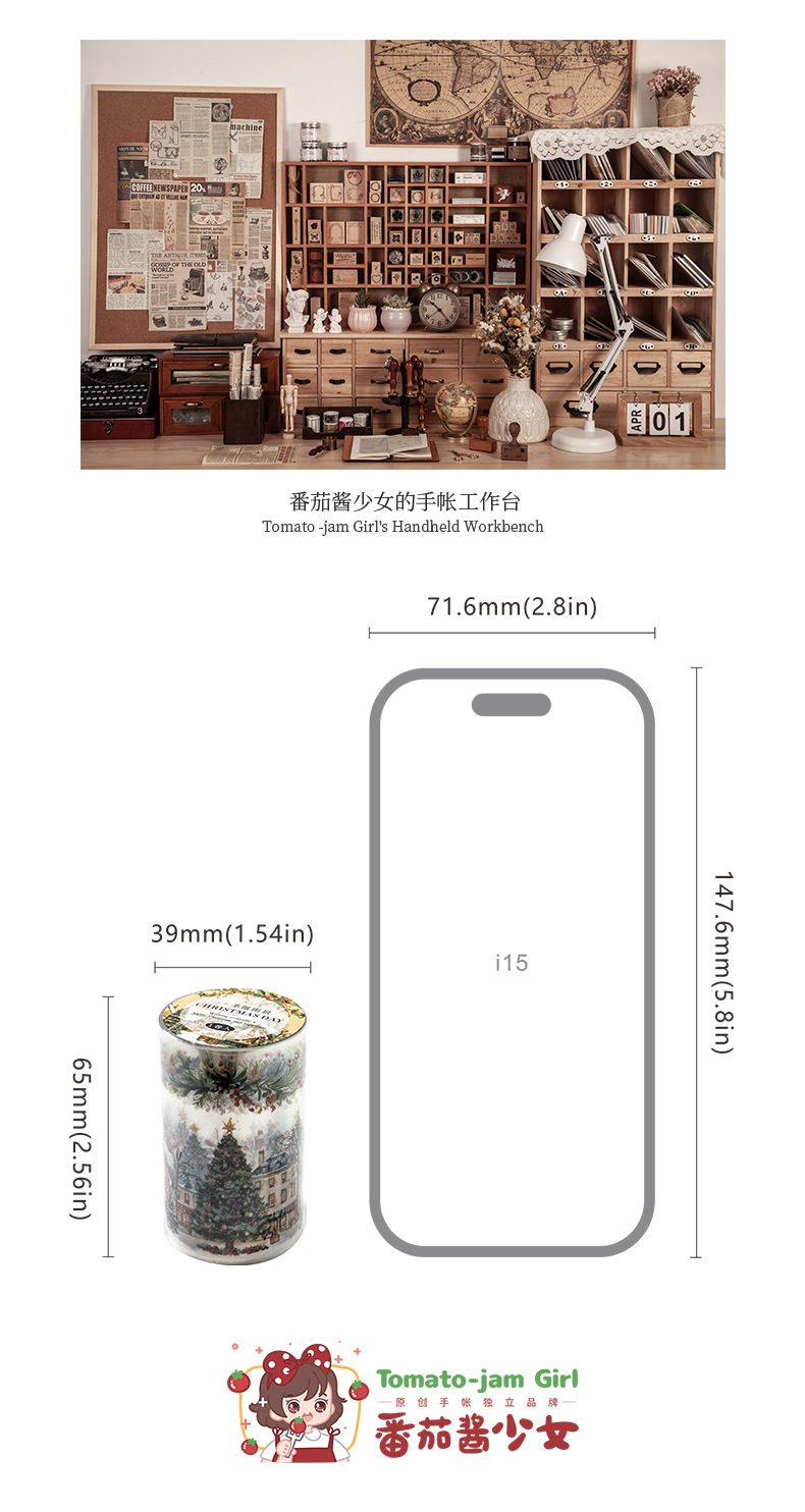 토마토 소스 조경 PET 테이프 크리스마스 시리즈 복고풍 방수 핸드북 diy 휴대 전화 케이스 장식 콜라주