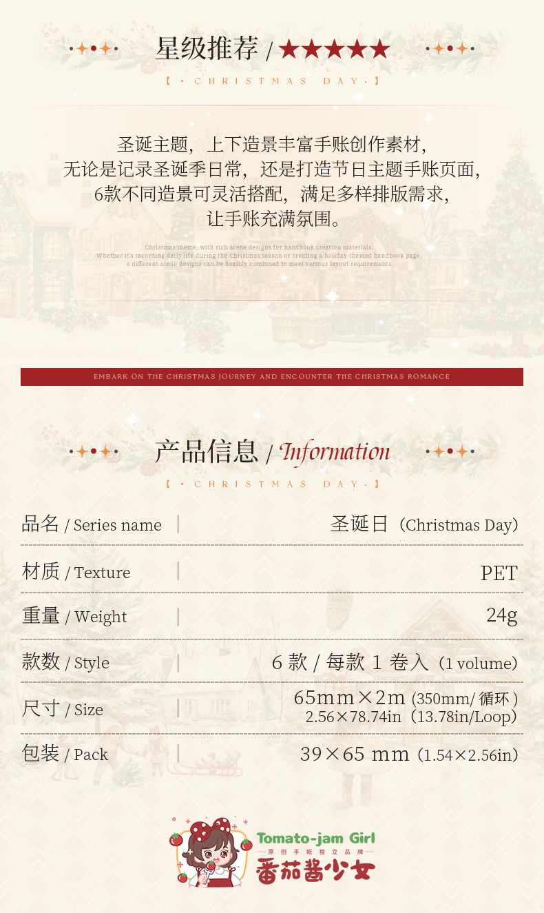 토마토 소스 조경 PET 테이프 크리스마스 시리즈 복고풍 방수 핸드북 diy 휴대 전화 케이스 장식 콜라주스토어 가기