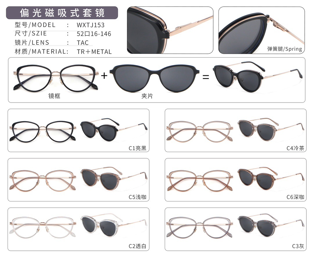 WXTJ153 편광 자석 흡입 안경 세트, 원안경, 패셔너블한 캣아이, 정사각형 및 둥근 얼굴, 얼굴 슬리밍 유물, 직모용 선글라스