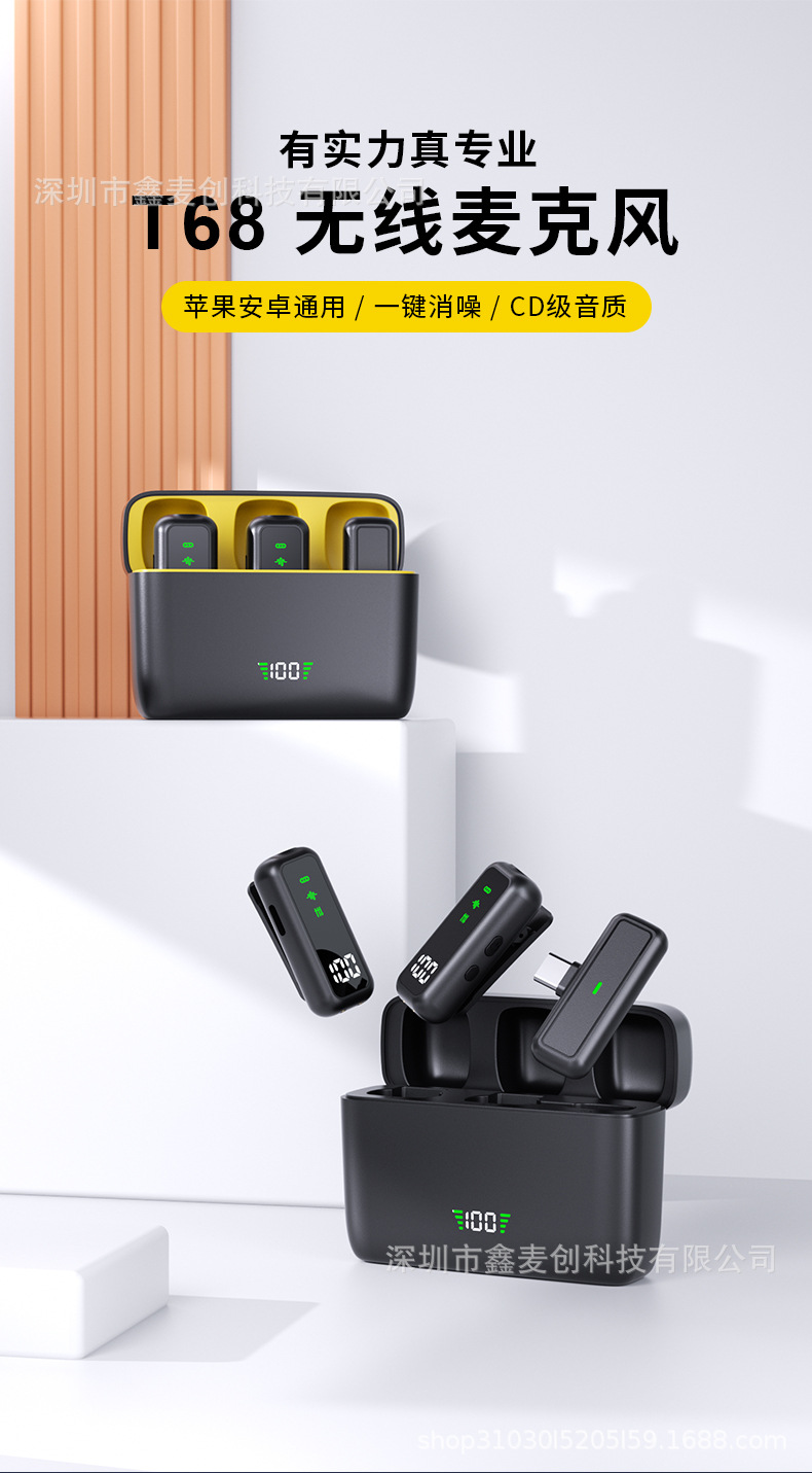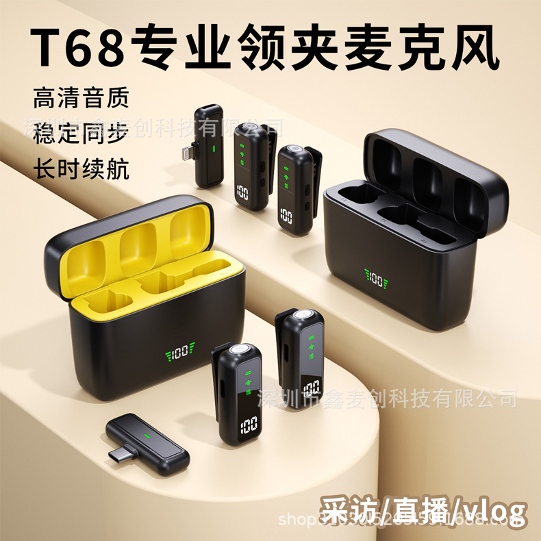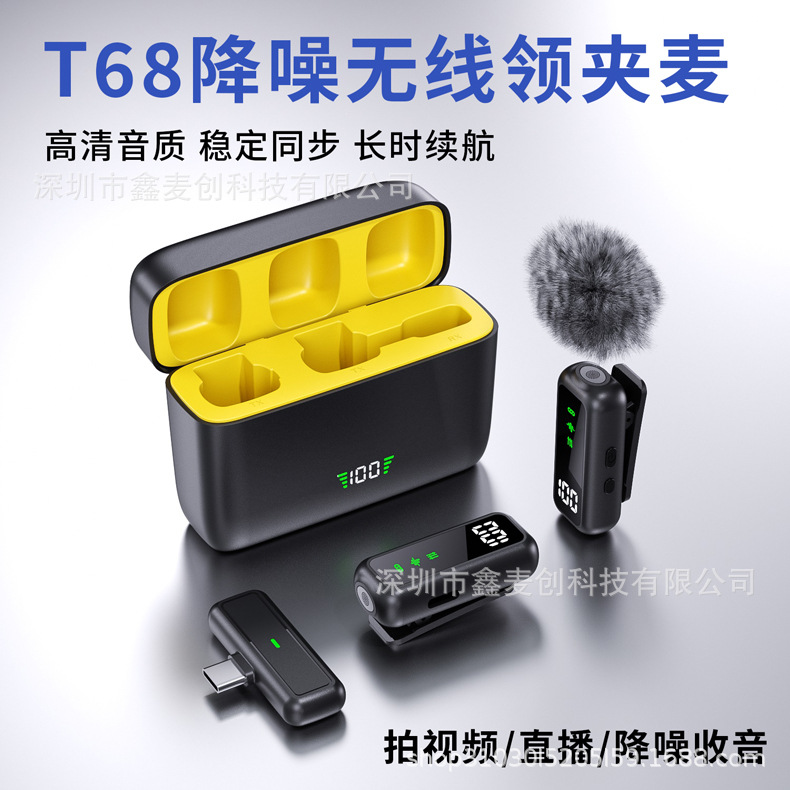T68AI 소음 감소 무선 라발리에 마이크 1대2 충전 챔버 휴대폰 네트워크 라이브 방송 개인 모델스토어 가기