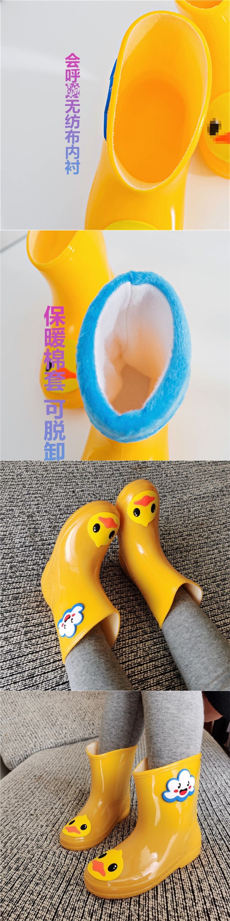 봄 여름 어린이 장화, 남아용 아기 장화, 여아용 경량 미끄럼 방지 따뜻한 어린이 워터 슈즈, 고무 신발 및 덧신