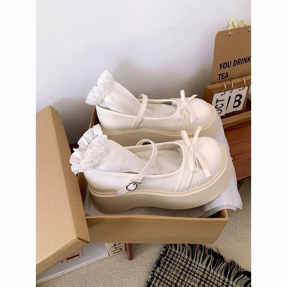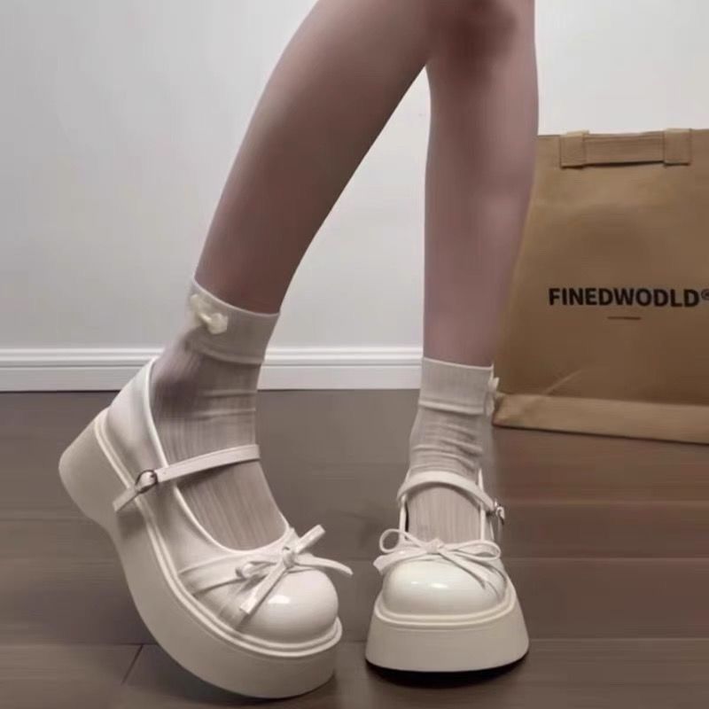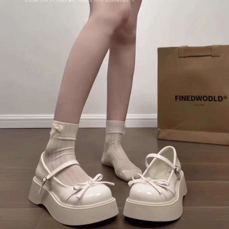 여성을 위한 세련된 리본 작은 가죽 신발 2025 새로운 가을 가볍고 다재다능한 두꺼운 밑창 높이 증가 영국 스타일 메리 제인 신발스토어 가기