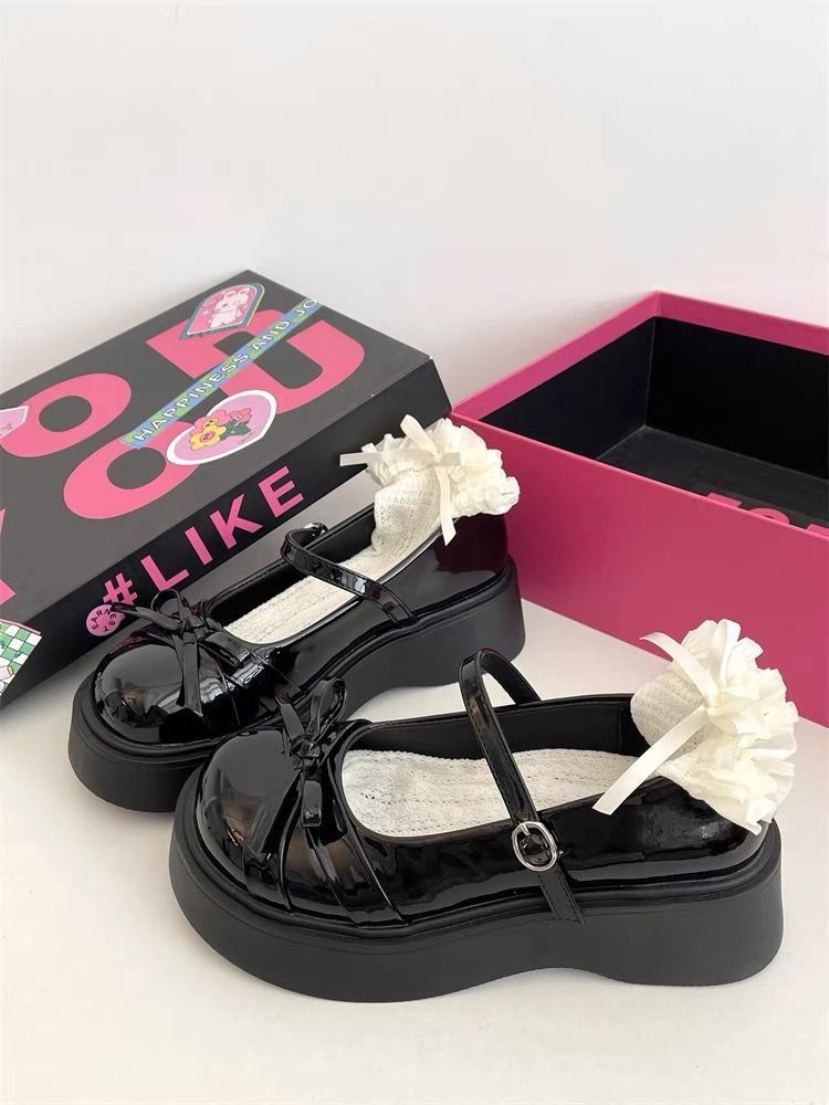 여성을 위한 세련된 리본 작은 가죽 신발 2025 새로운 가을 가볍고 다재다능한 두꺼운 밑창 높이 증가 영국 스타일 메리 제인 신발