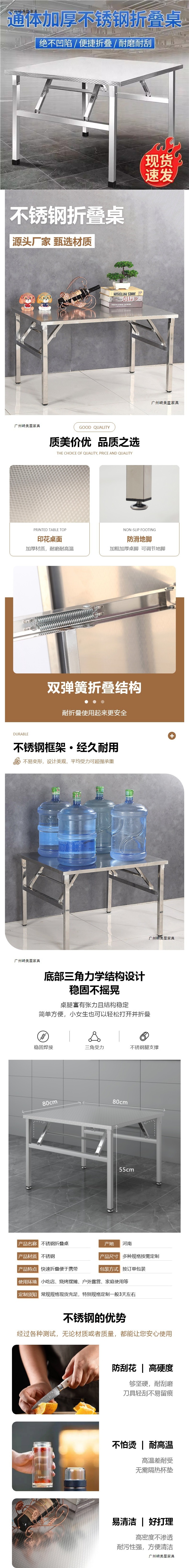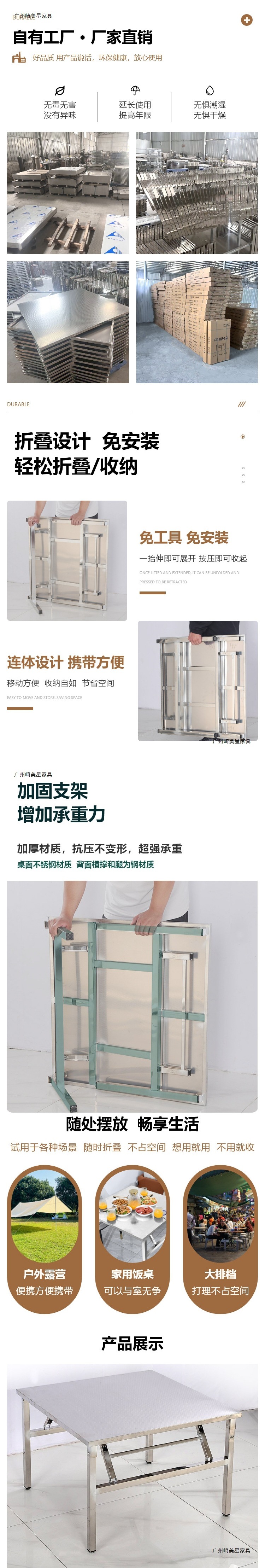 스테인레스 스틸 접이식 테이블 식탁 홈 바베큐 야외 테이블 식사 야시장 스톨 휴대용 테이블 사각형 직사각형스토어 가기