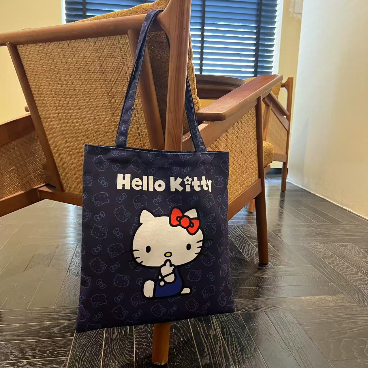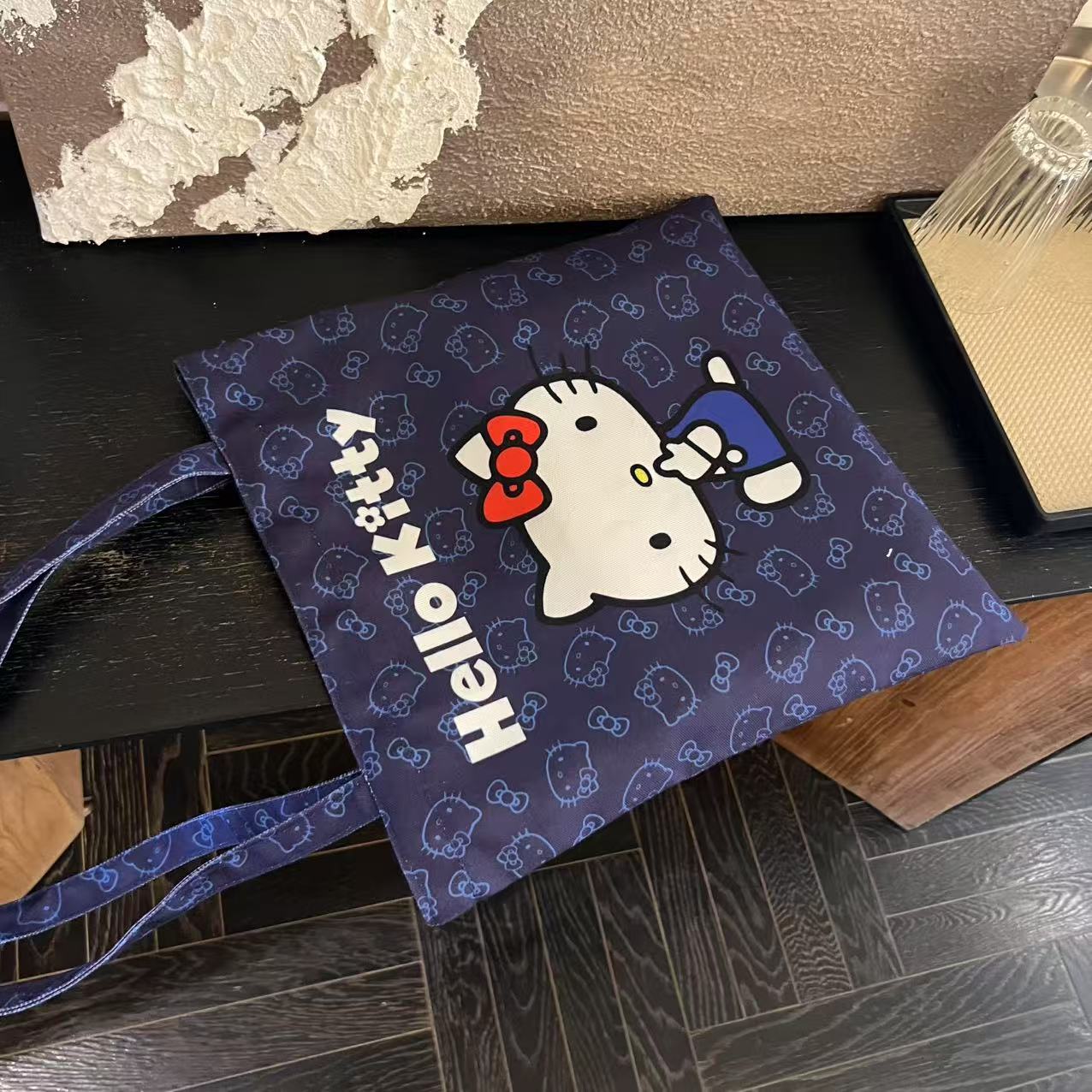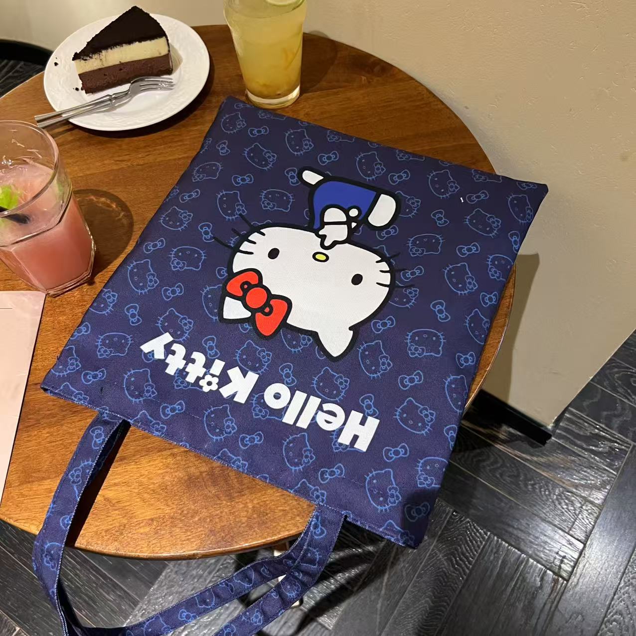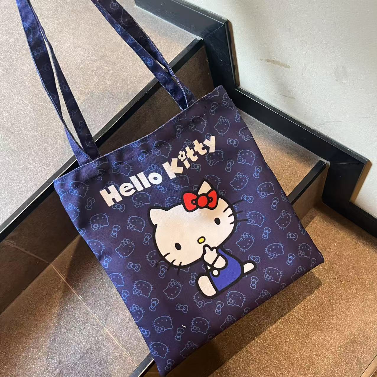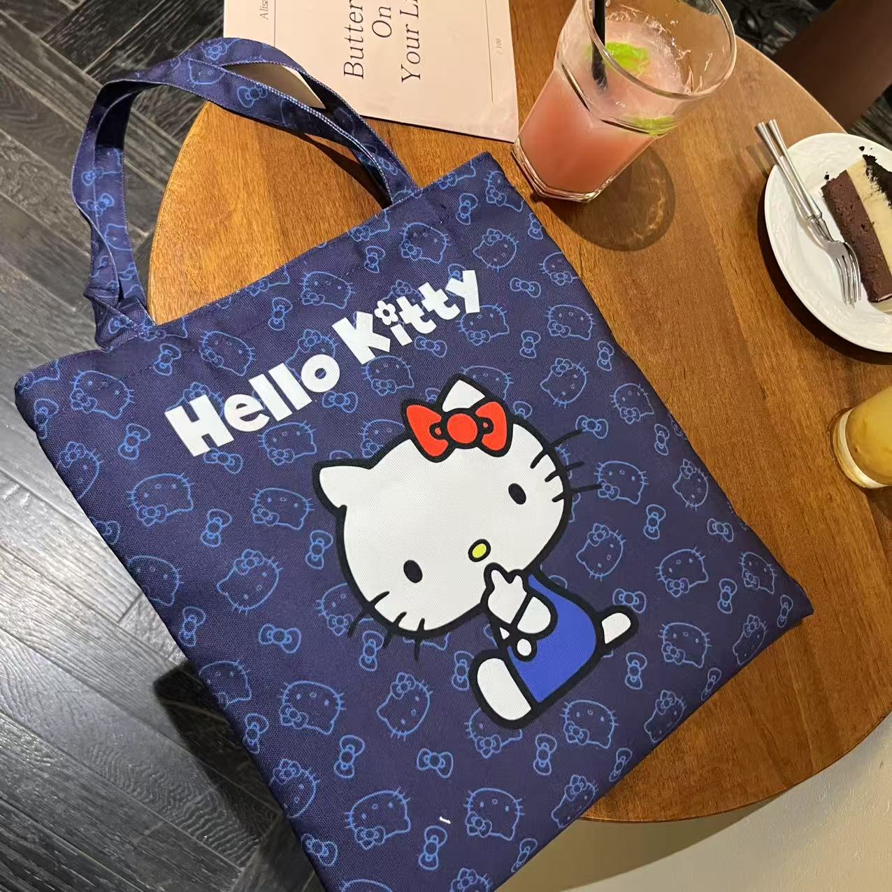 새로운 보라색 키티 핸드백 대용량 다용도 토트 나들이 ins 만화 캔버스 대용량 숄더백스토어 가기
