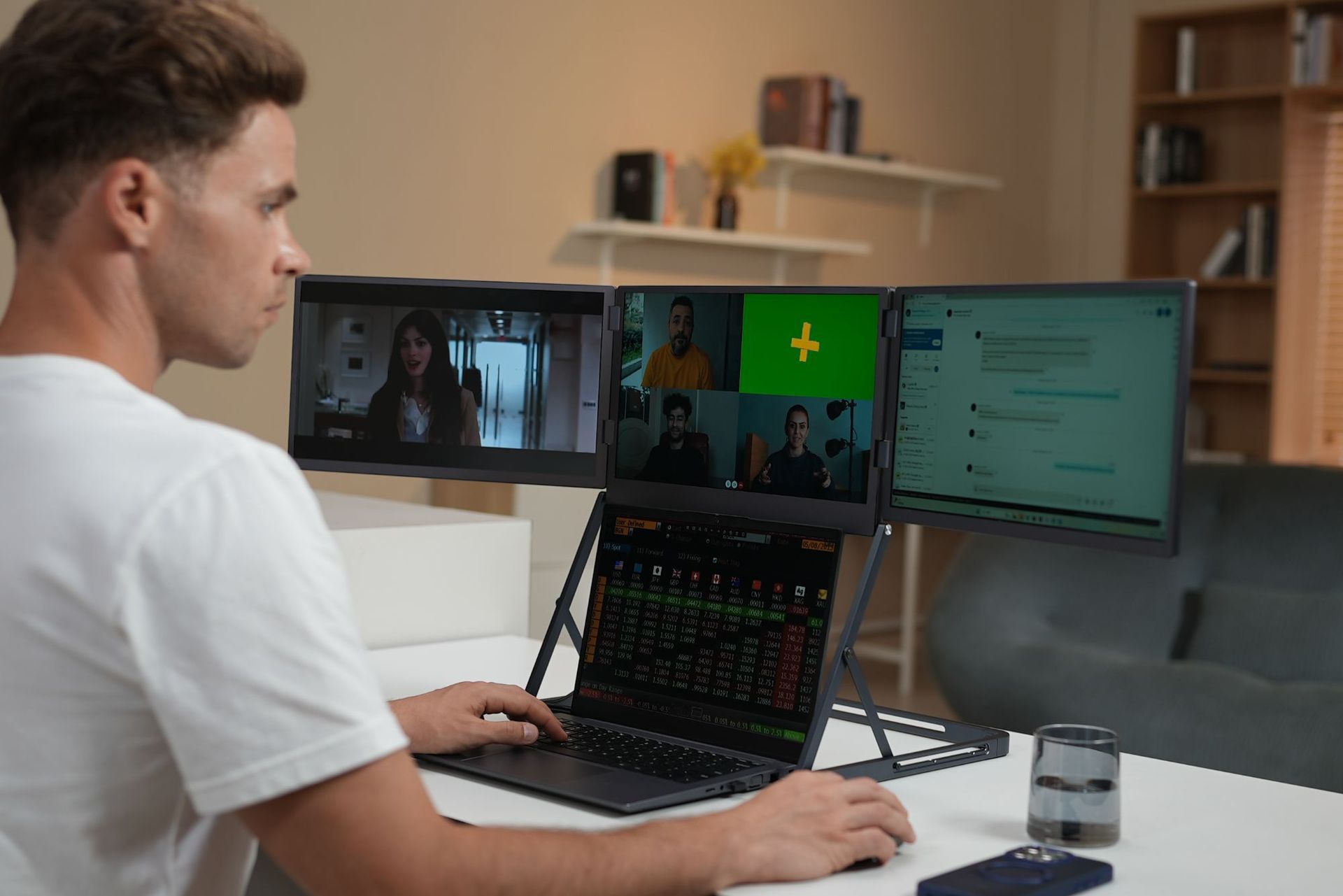 3개의 화면을 연결하는 3개의 화면 휴대용 모니터