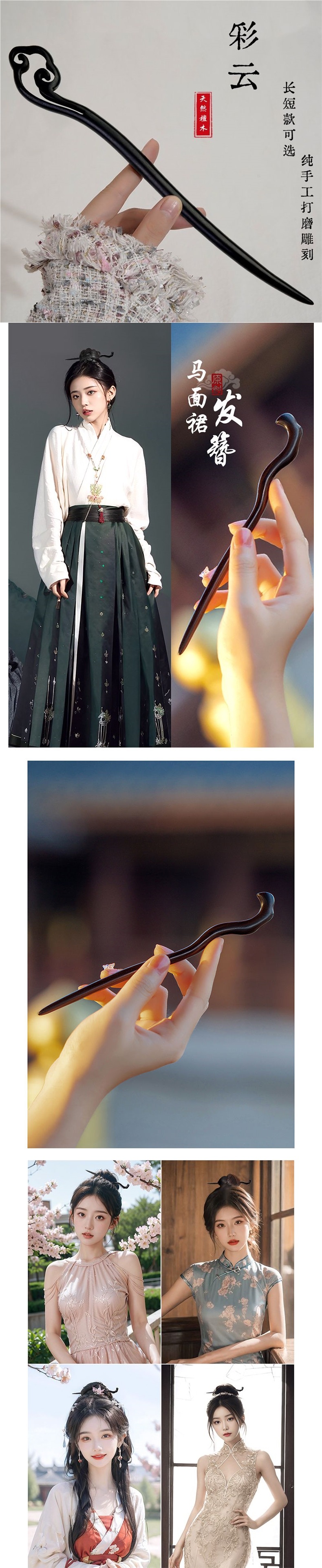 여성용 긴 흑단 머리핀, 고대 스타일 머리핀, 말머리 스커트, 한복 치파오, 새로운 중국 스타일의 인기 머리핀스토어 가기