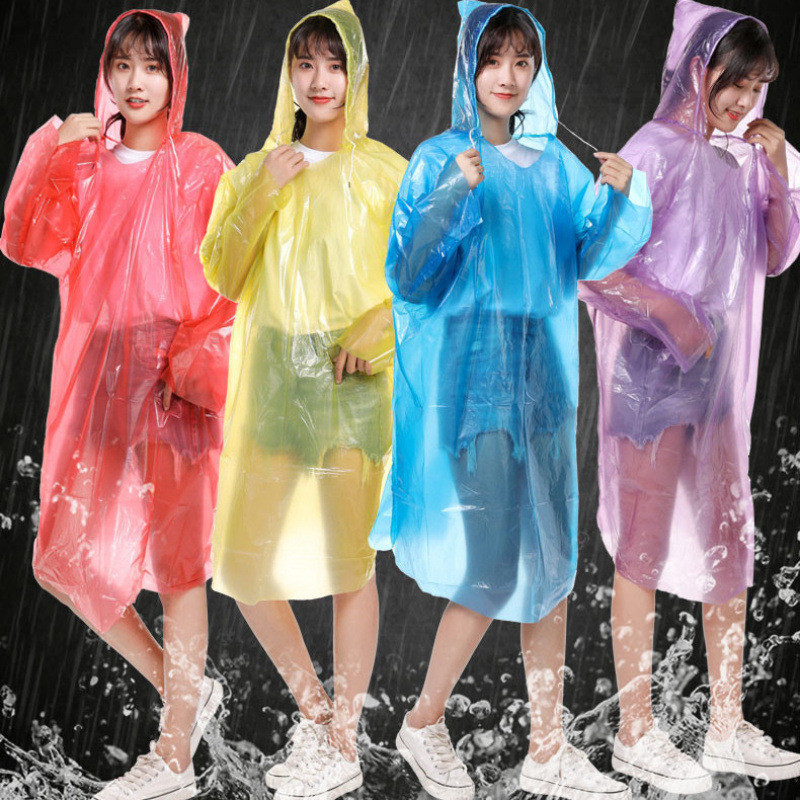 D5O 일회용 판초 비옷 남녀공용 성인용 두꺼운 휴대용 어린이 야외 하이킹