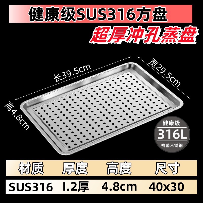• 316L 산모 및 유아용 등급: 매우 두꺼운 항균 [평생 사용 가능] - 깊은 찜 트레이: 40x30x4.8 [펀칭 트레이]