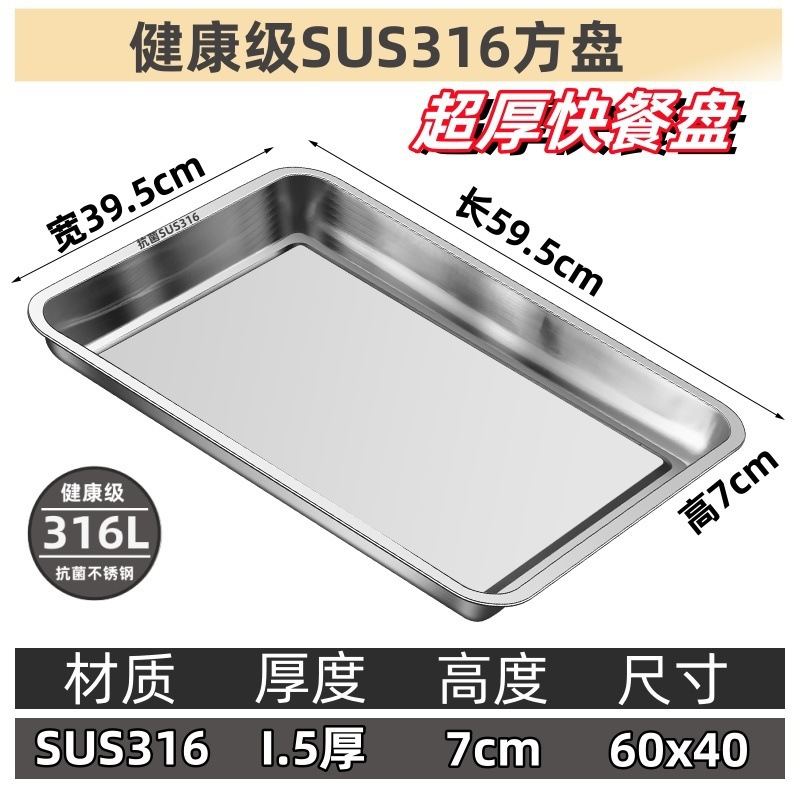 • 316L 산모 및 유아용 등급: 매우 두꺼운 항균 [평생 사용 가능] - 매우 두껍고 깊음: 60X40X7 매우 높고 깊은 다이닝 카 트레이