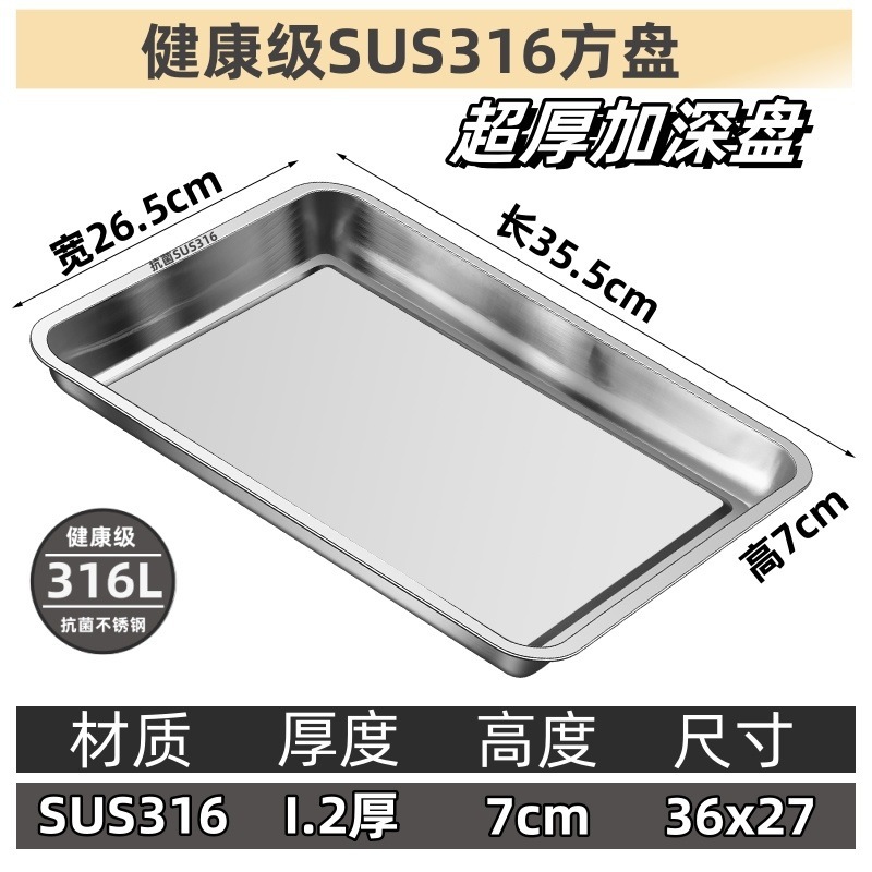 • 316L 산모 및 유아용 등급: 매우 두꺼운 항균 [평생 사용 가능] - 깊은 접시: 36x27x4.8 20년 동안 내구성