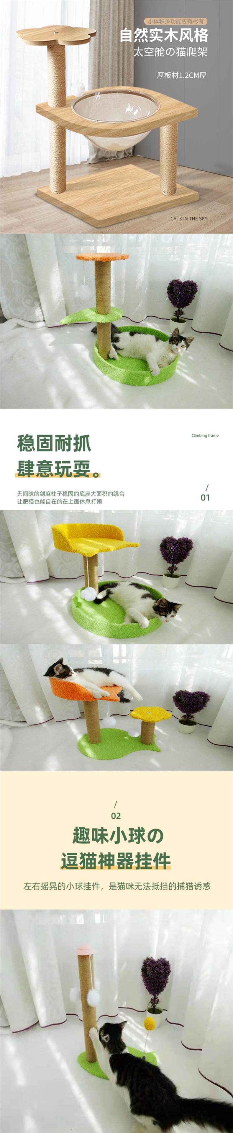 고양이 둥지, 클라이밍 프레임, 스크래치 포스트, 나무, 삼나무 로프, 소형 스크래치 보드, 재미있는 장난감, 고양이 용품, 사계절스토어 가기