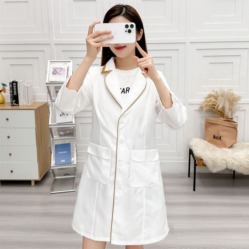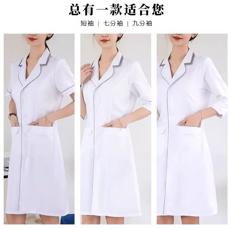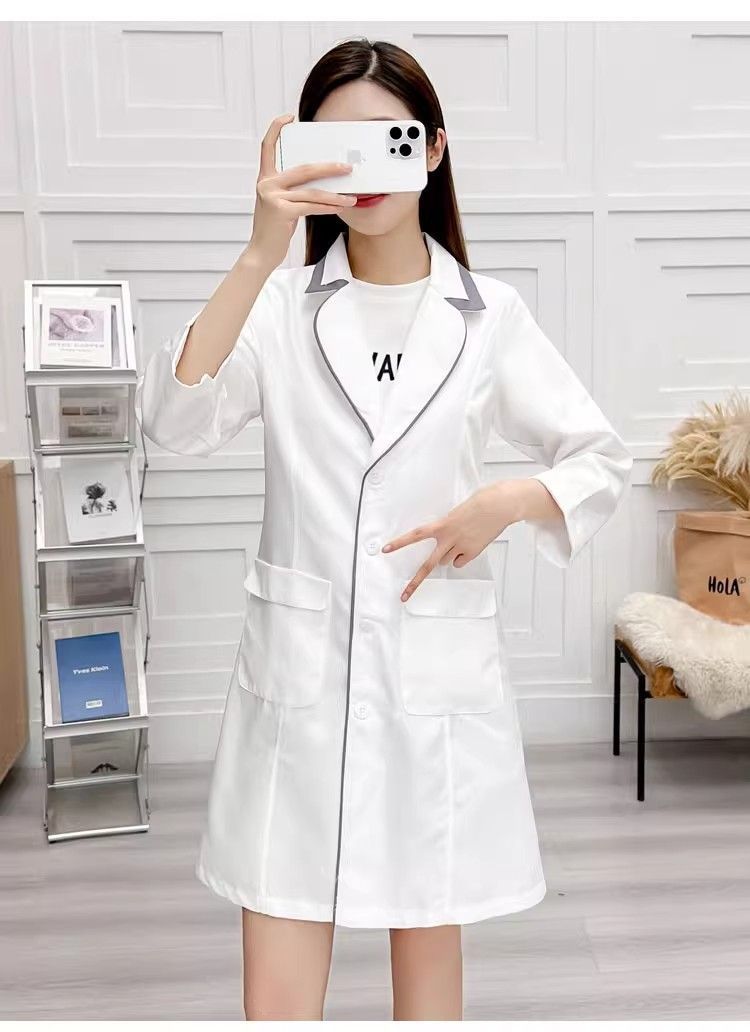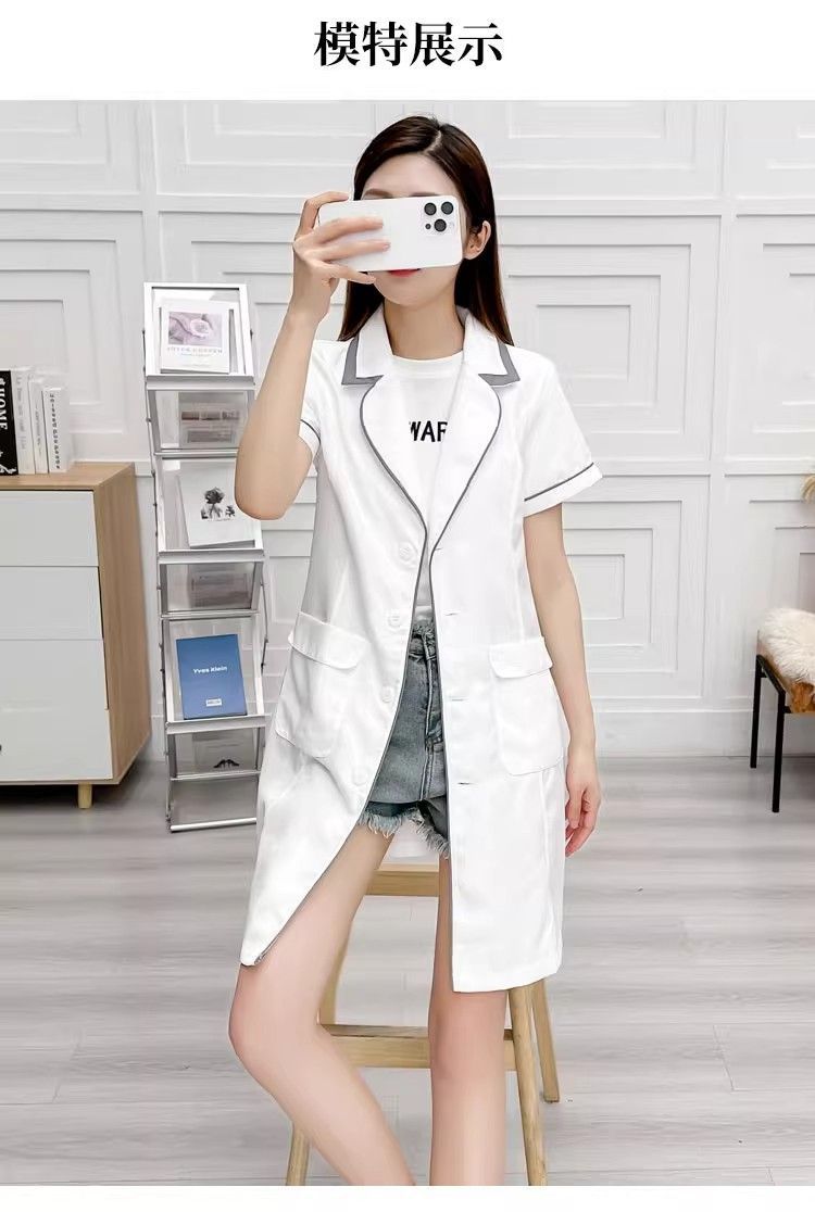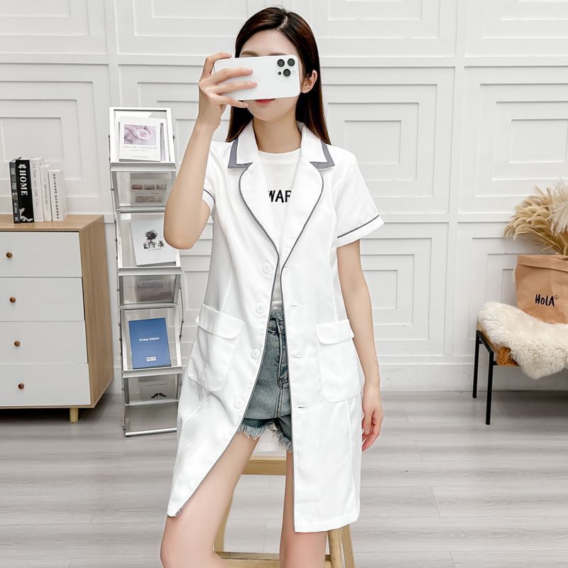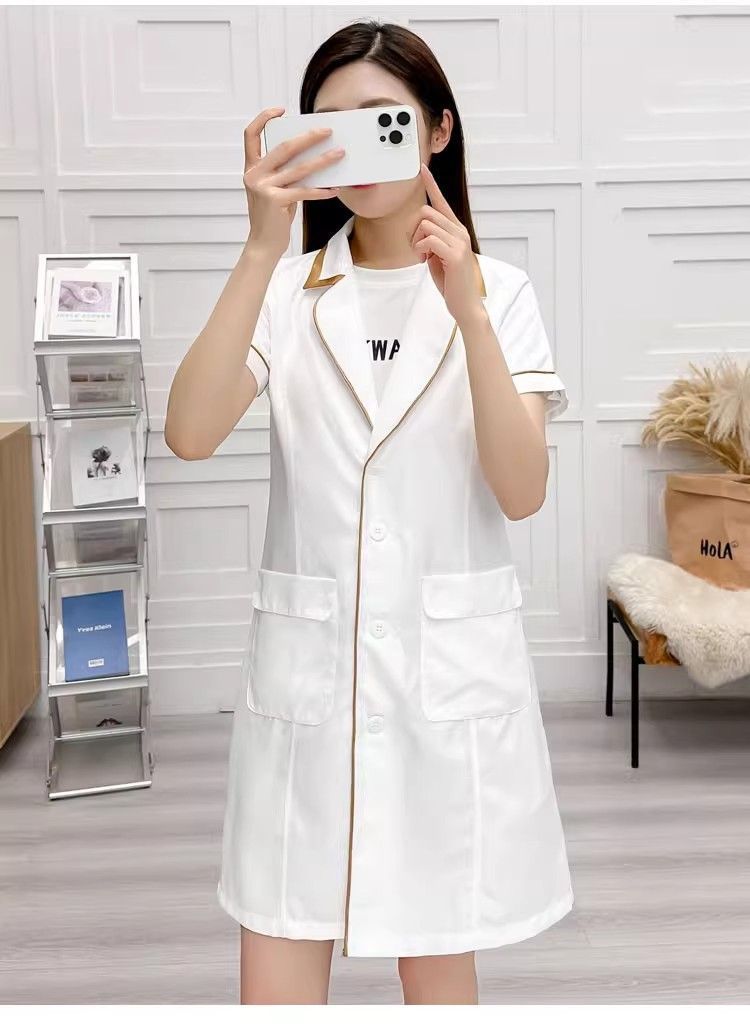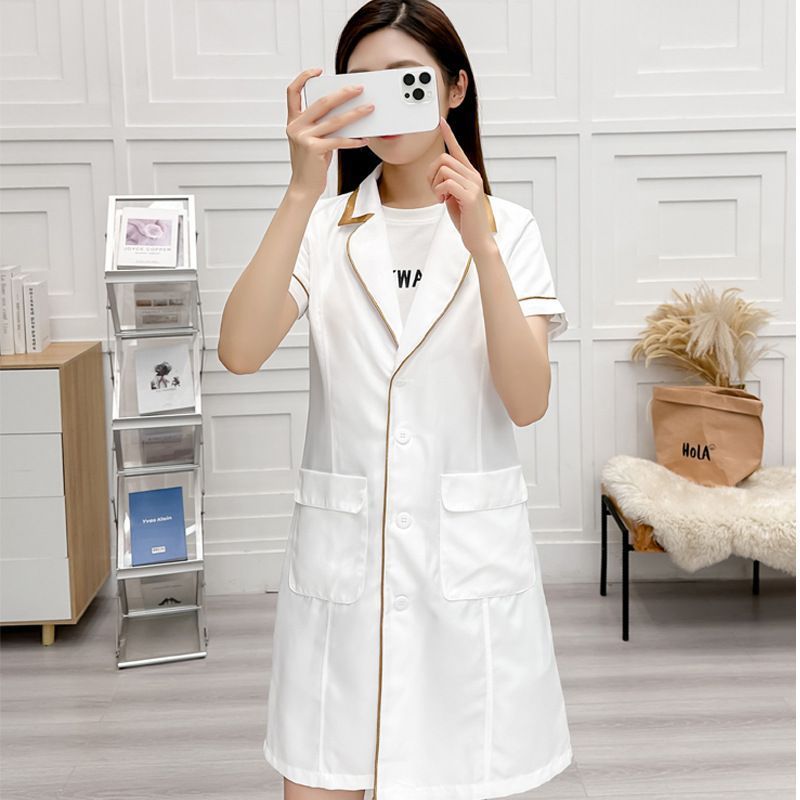미용실 작업복 여성 의사 미용사 중간 및 짧은 소매 여름 피부 관리 얇은 네일 아트 문신 자수