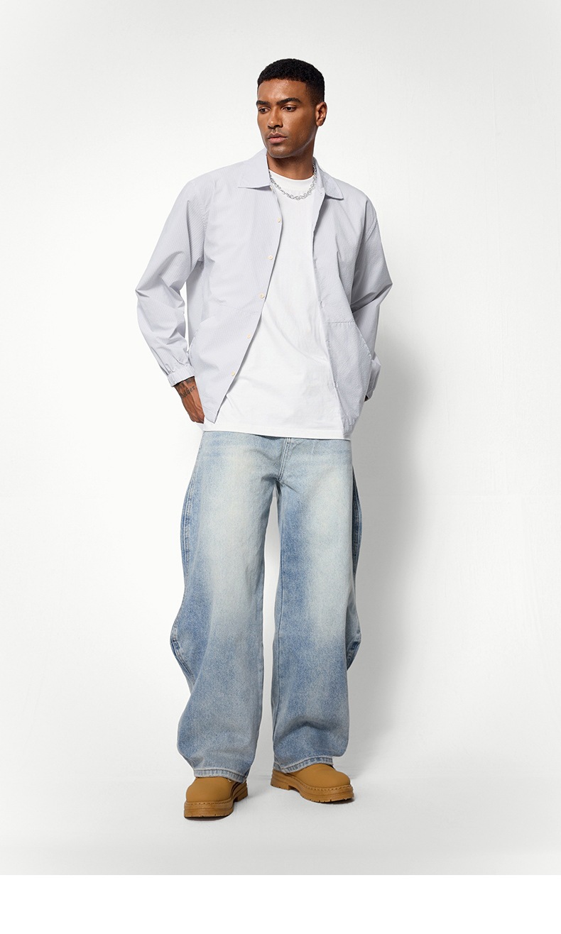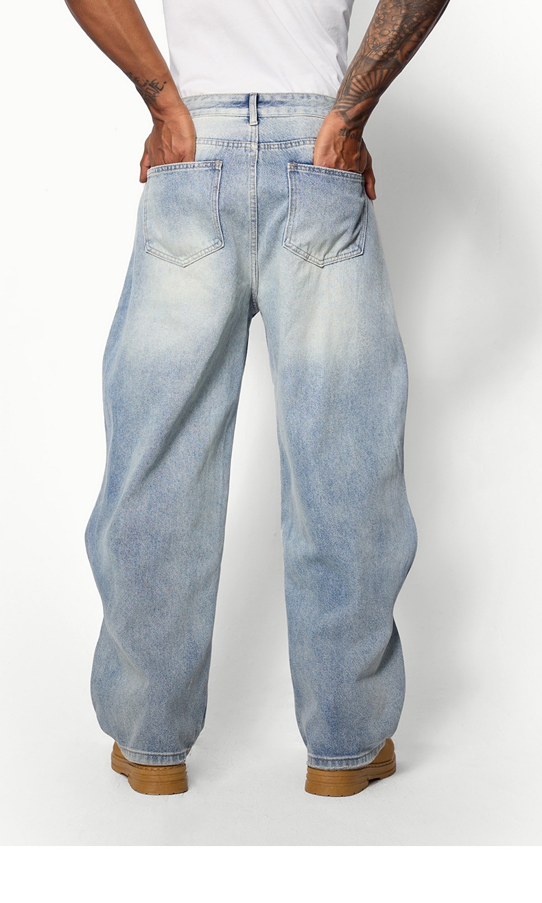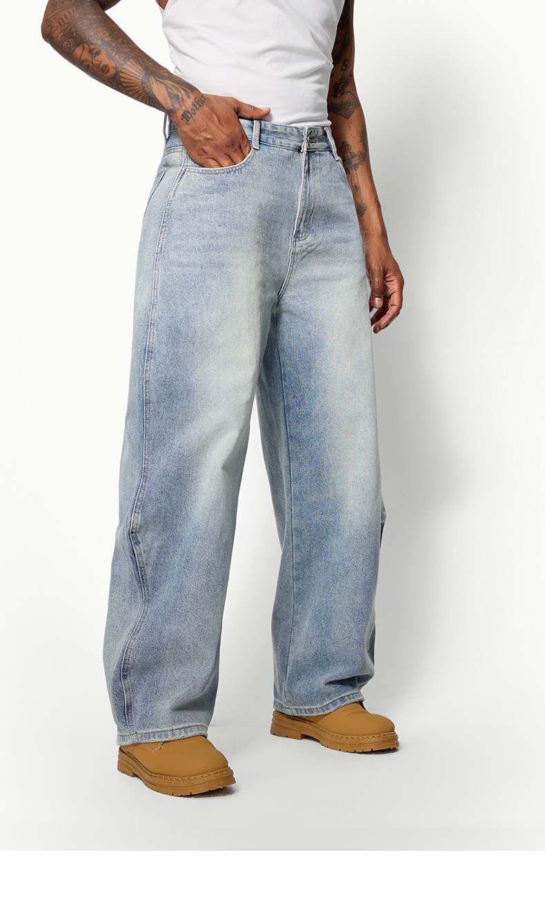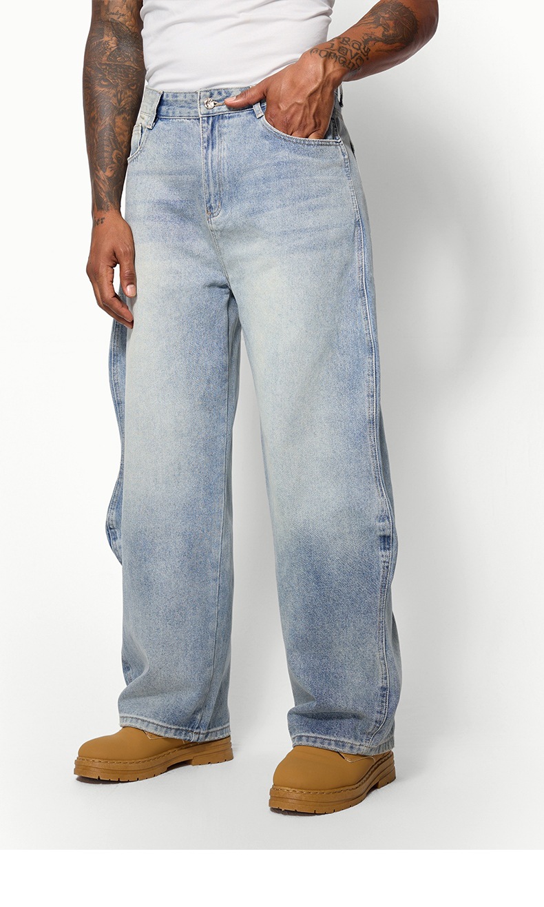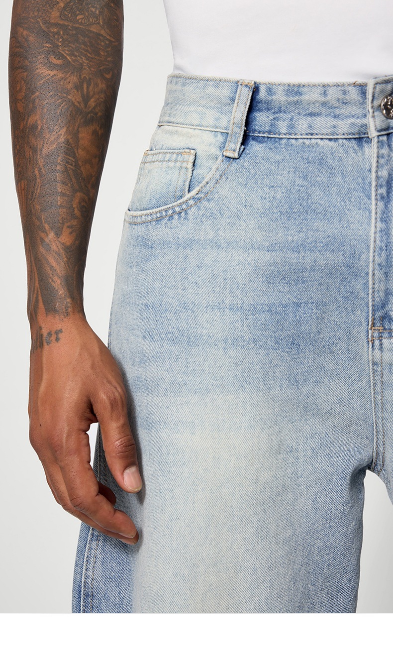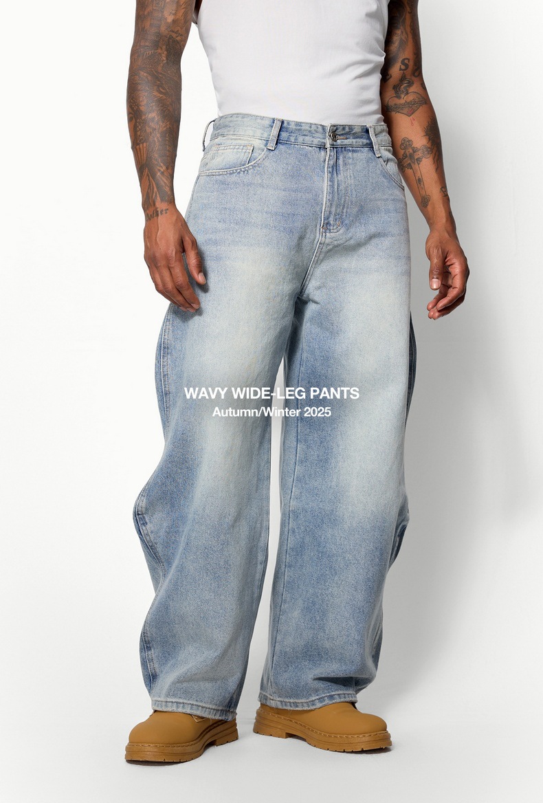 지에잔 남성복 | 웨이브 워싱 바닥 길이 청바지 2026 봄/여름 신상 스트리트 워싱 빈티지 데님 팬츠