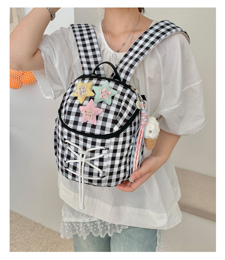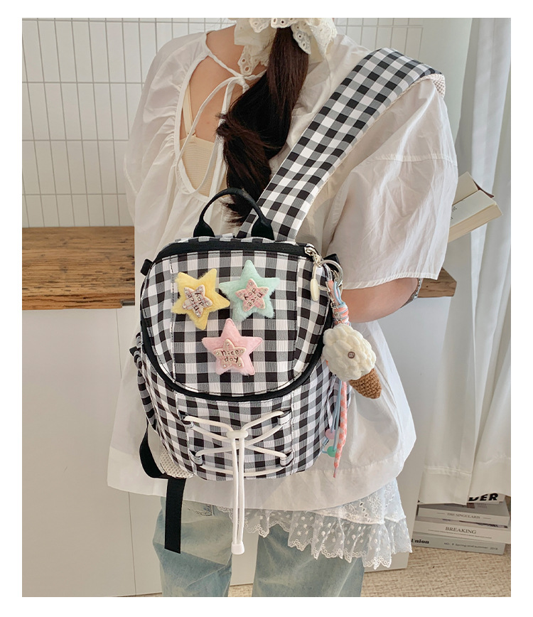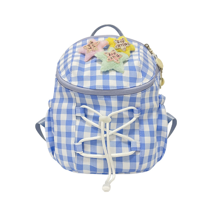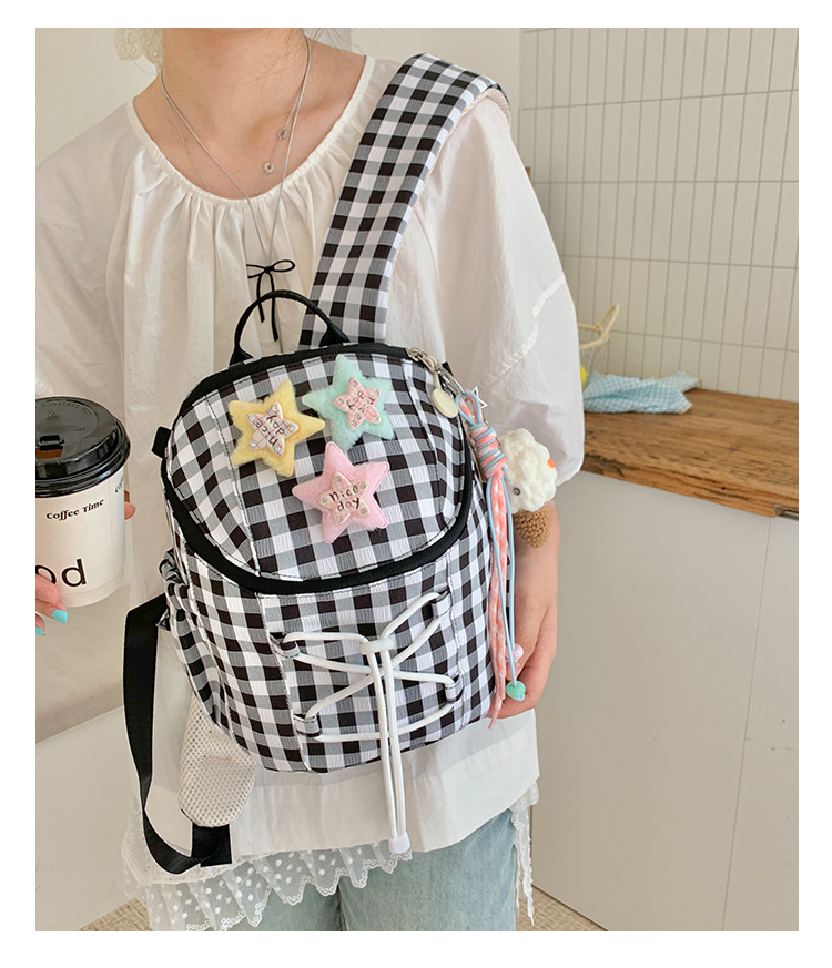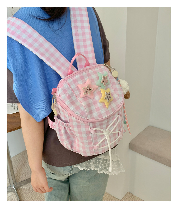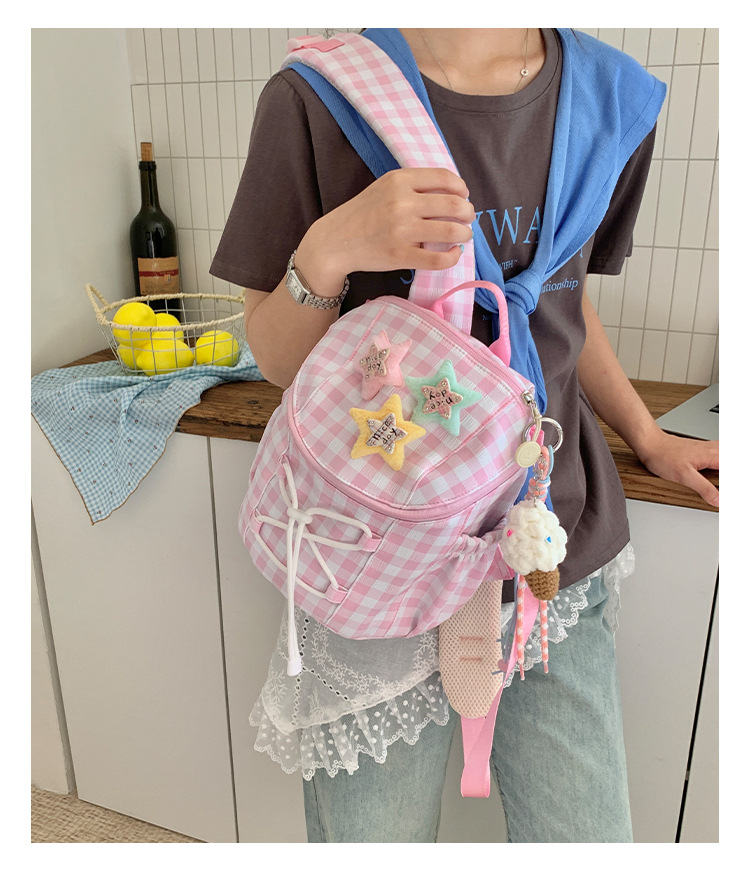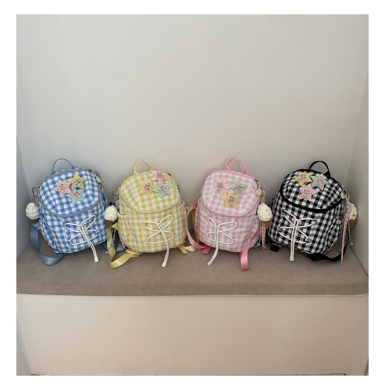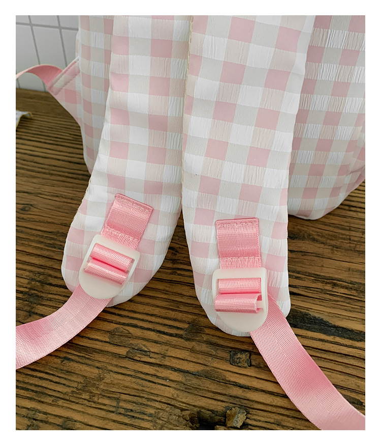 여자 중학생을 위한 새로운 스타일의 신선하고 달콤하고 귀여운 체크 무늬 미니 배낭, 가벼운 여행 배낭스토어 가기