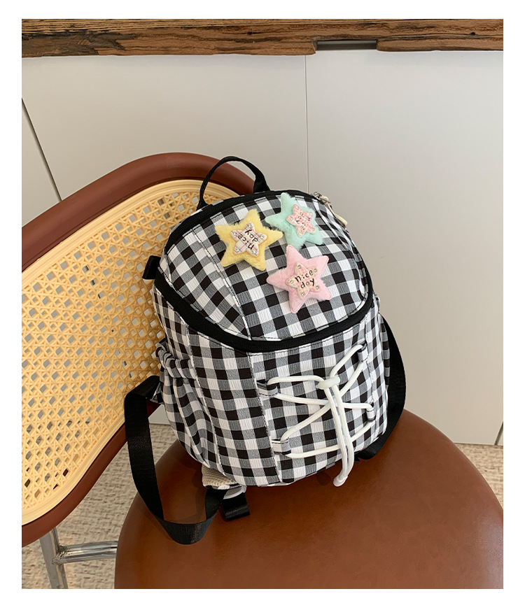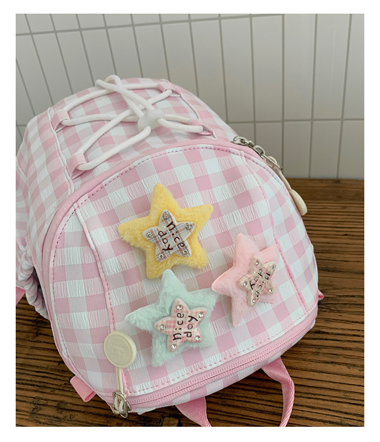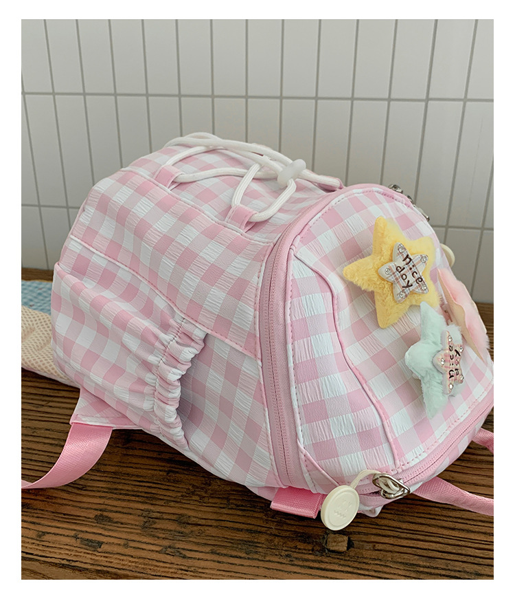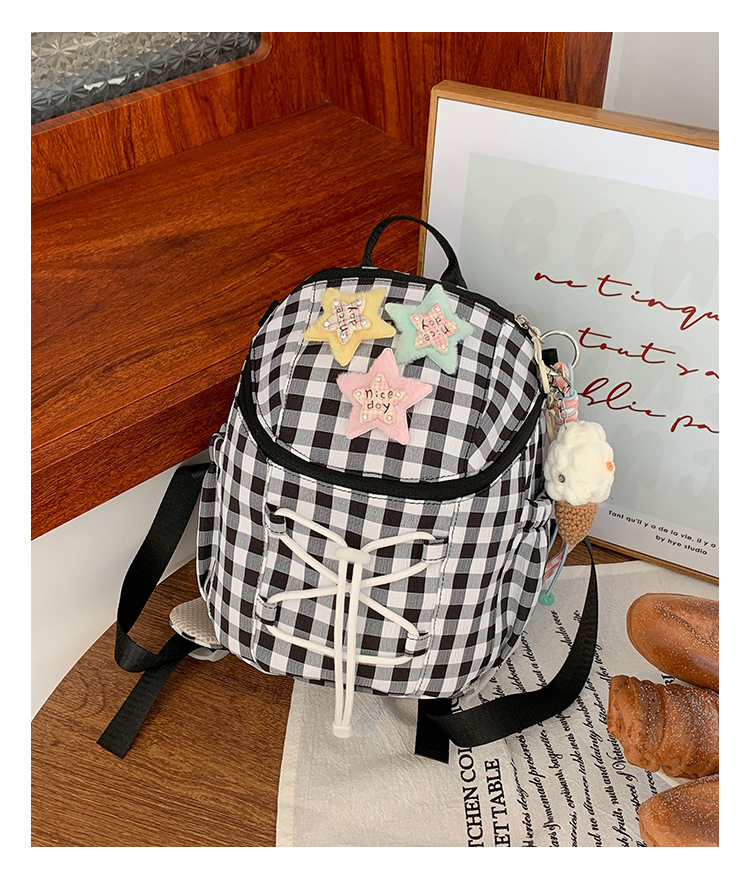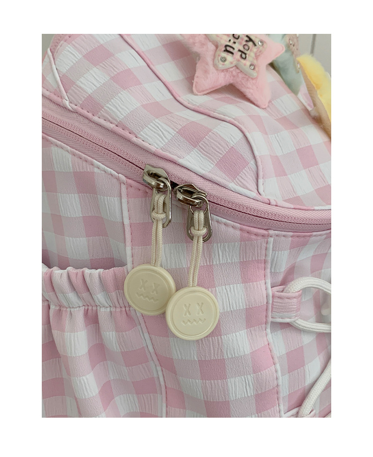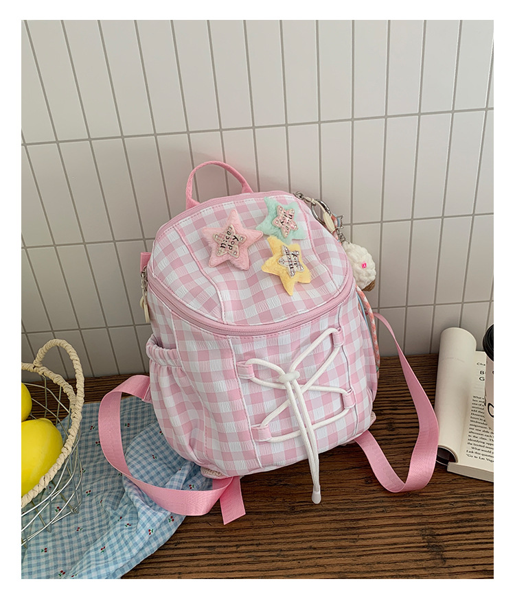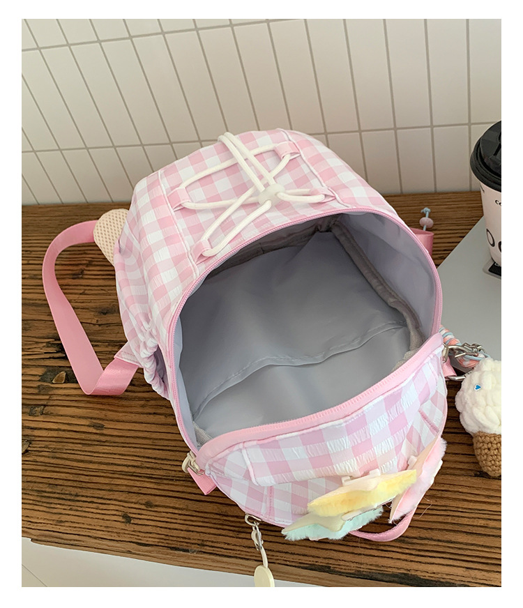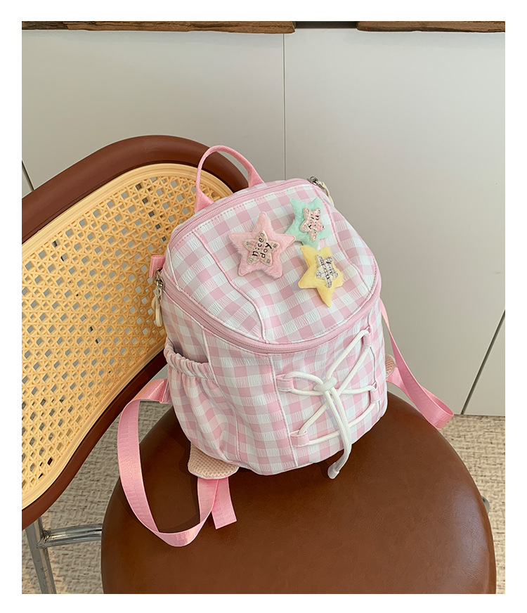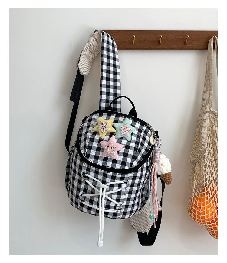 여자 중학생을 위한 새로운 스타일의 신선하고 달콤하고 귀여운 체크 무늬 미니 배낭, 가벼운 여행 배낭스토어 가기