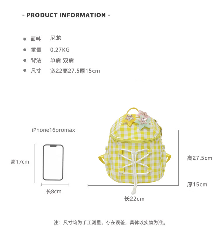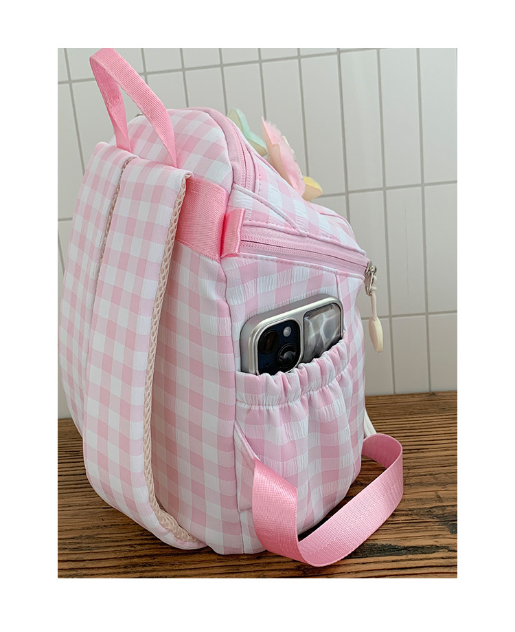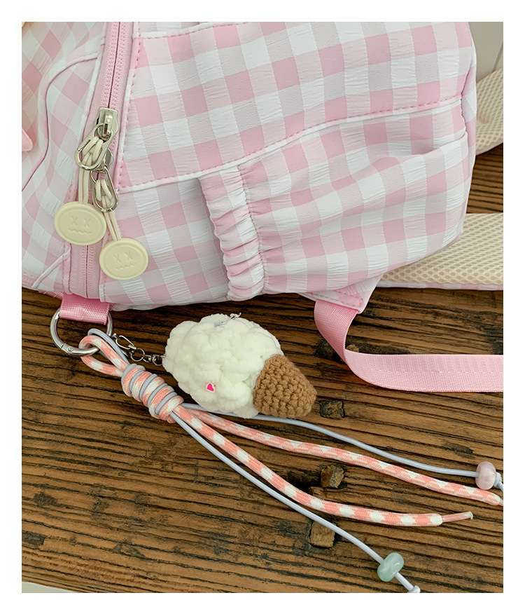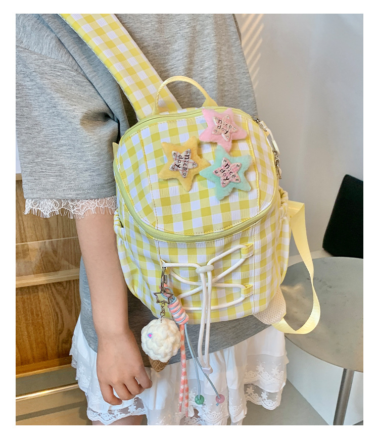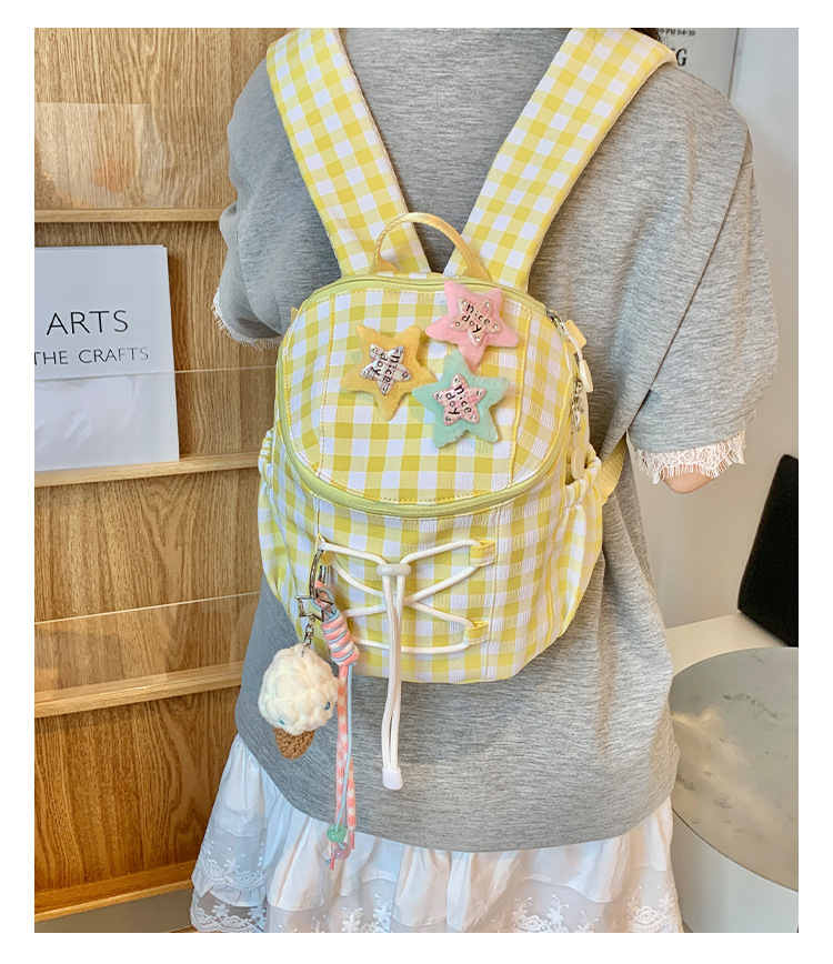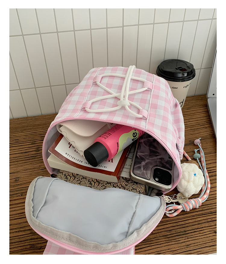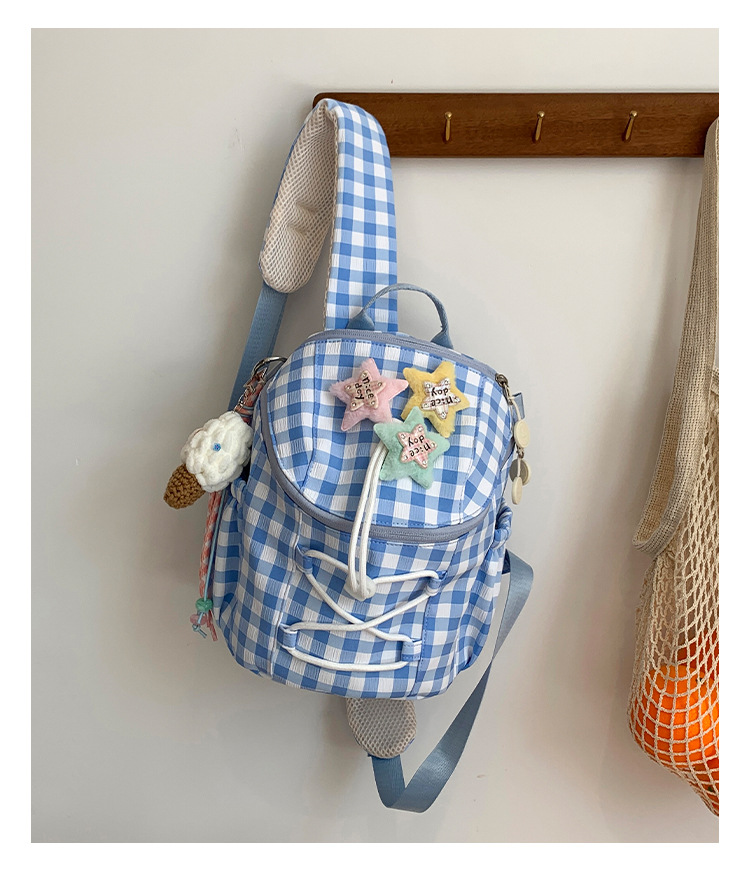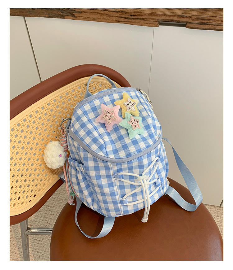 여자 중학생을 위한 새로운 스타일의 신선하고 달콤하고 귀여운 체크 무늬 미니 배낭, 가벼운 여행 배낭스토어 가기
