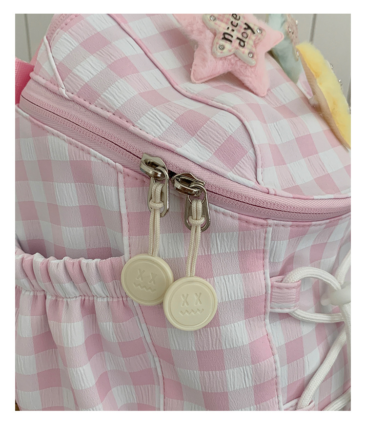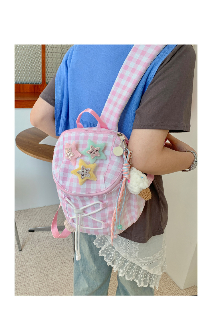 여자 중학생을 위한 새로운 스타일의 신선하고 달콤하고 귀여운 체크 무늬 미니 배낭, 가벼운 여행 배낭