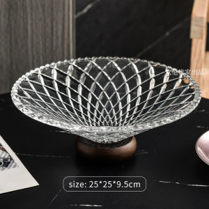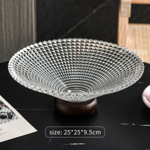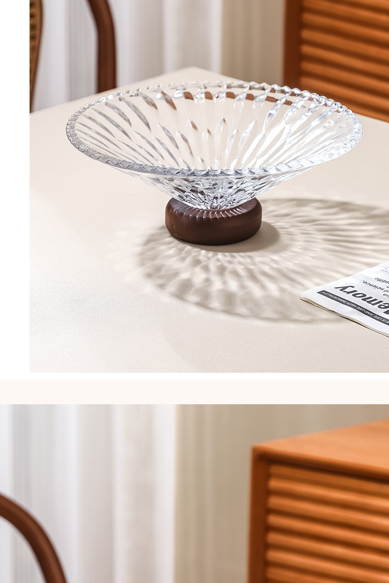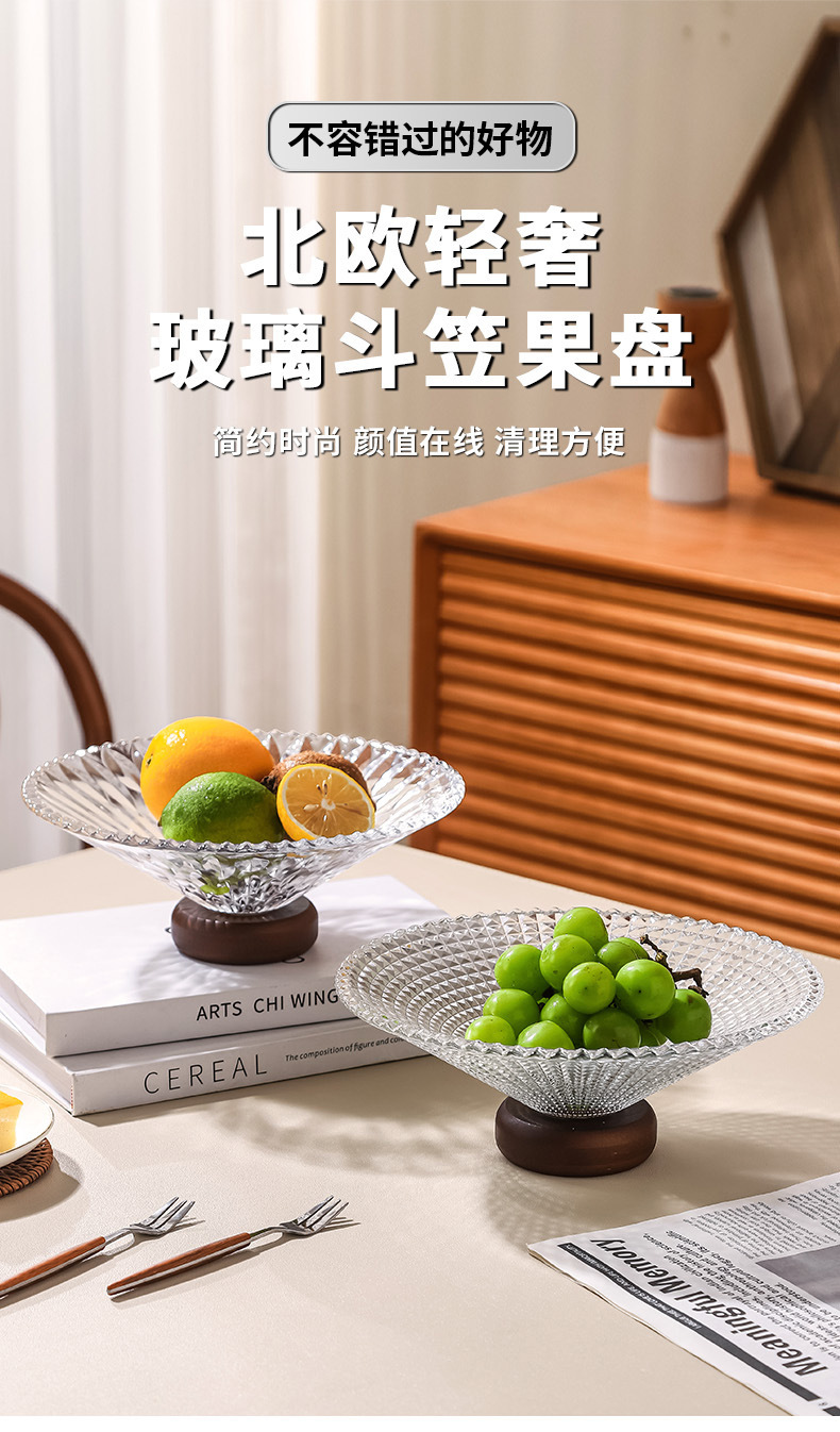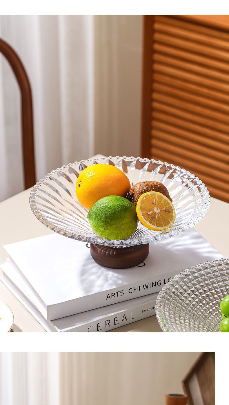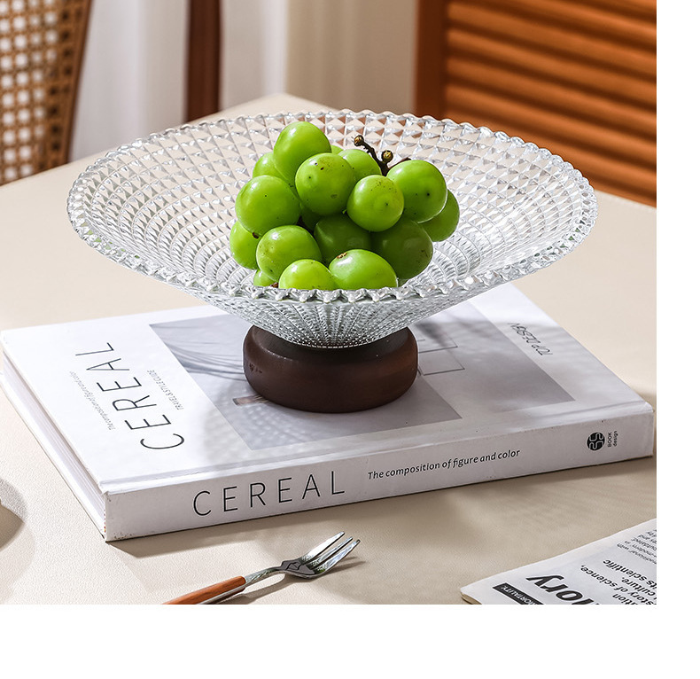 단단한 나무 베이스 과일 접시 거실 홈 하이 엔드 유리 과일 접시 프론트 데스크 캔디 스낵 디스플레이 접시 높은 발판