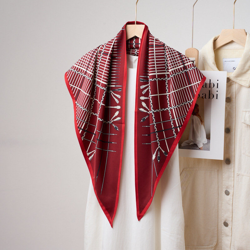 새로운 복고풍 빨간색 패션 프린트 삼각형 스카프 허리띠, 엉덩이 커튼 벨트, 자외선 차단 숄, 고급 실크 스카프스토어 가기