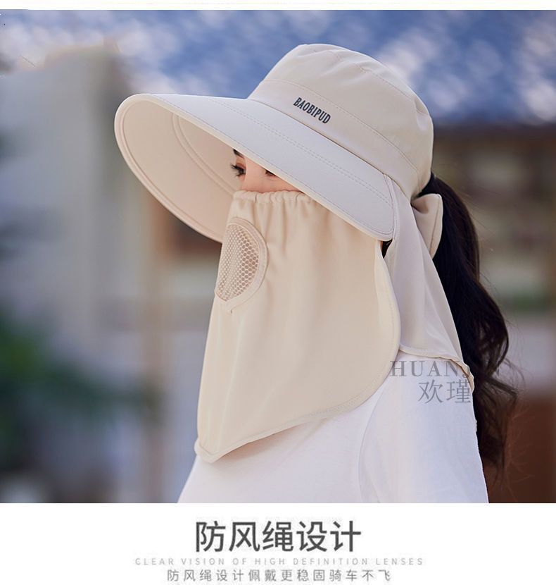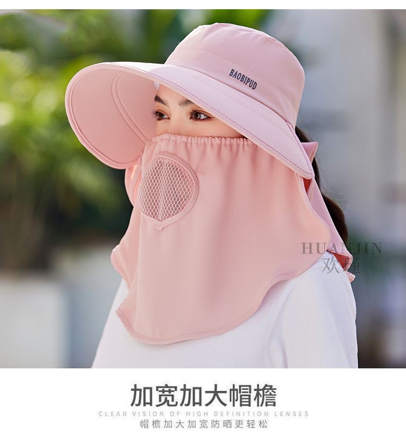 여름철 얼굴 전체를 덮는 여성용 자외선 차단 모자, 자외선 차단 모자, 작업용 차 따기 마스크, 일체형 마스크, 태양 모자