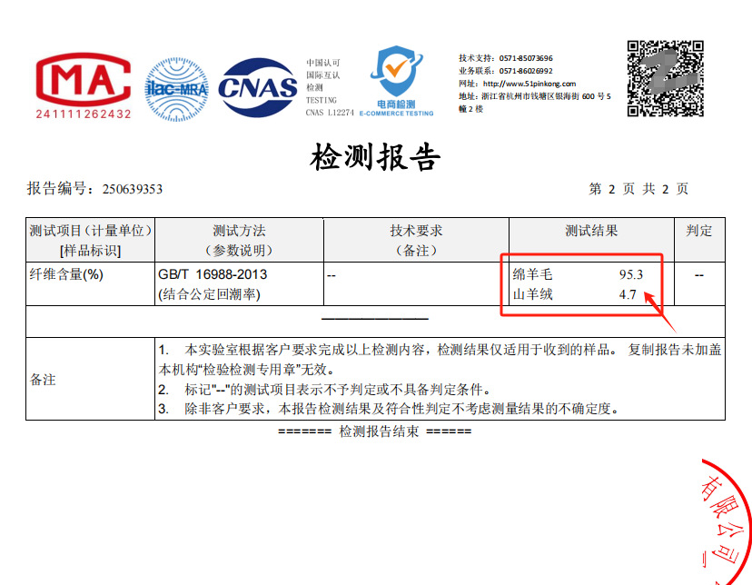 面料材质:95.3%绵羊毛 4.7山羊绒